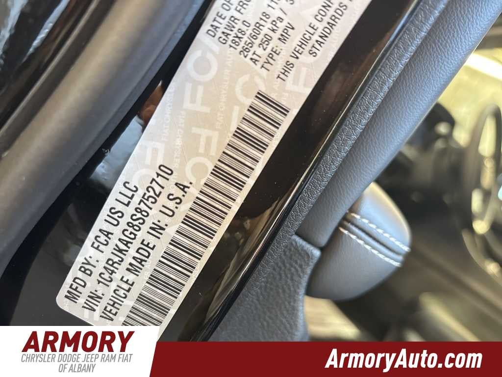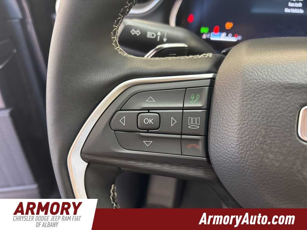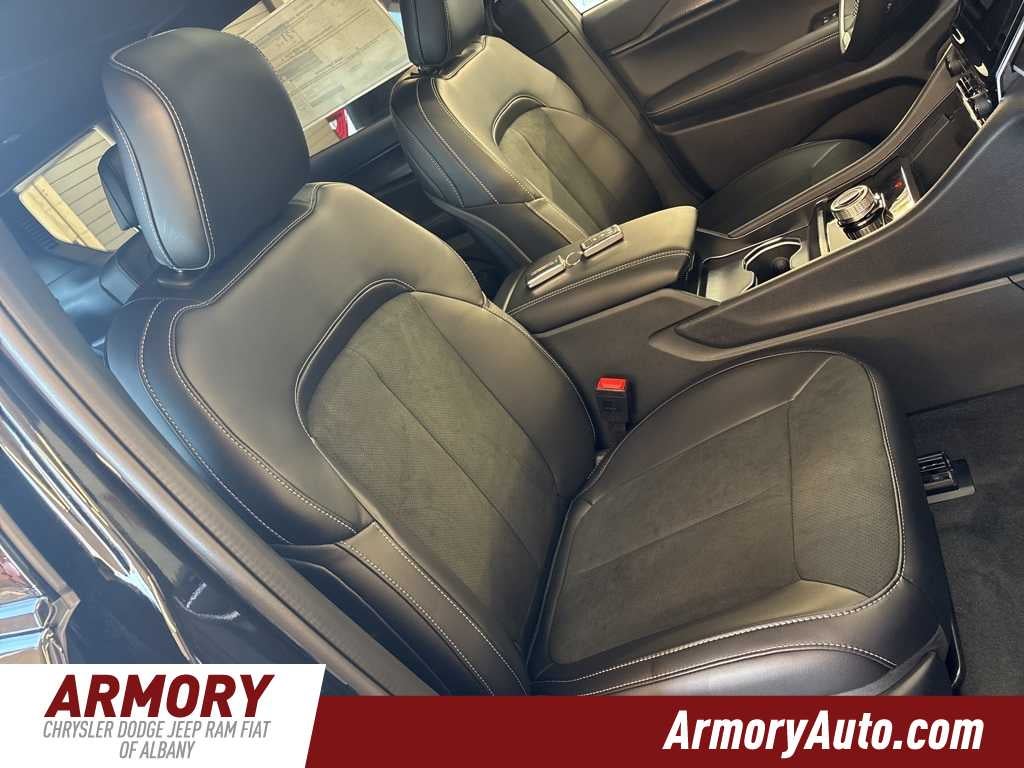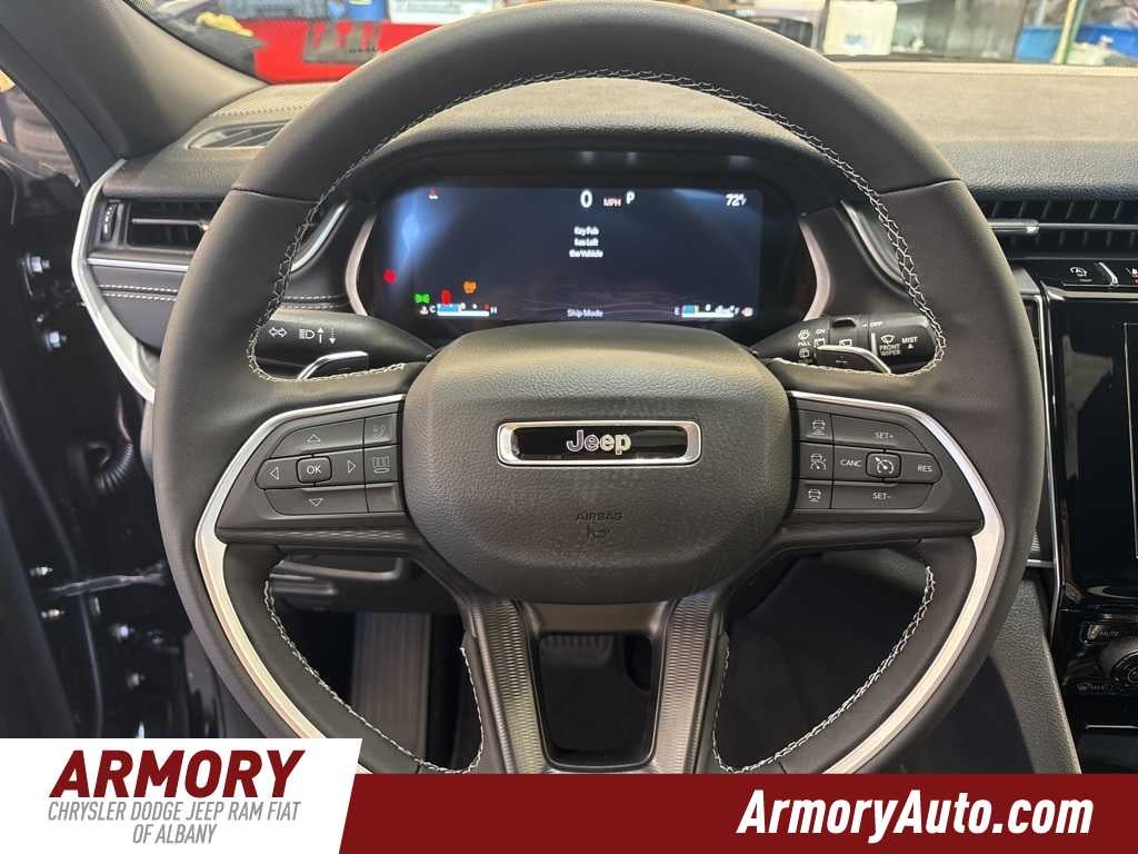 Grand Cherokee L Altitude X is nicely equipped with Quick Order Package 23M Altitude X (115V Auxiliary Power Outlet, 3rd Row Charge-Only USB Ports, Altitude X, Black Headliner, Capri Leatherette/Suede Seats, Delete Laredo Badge, Gloss Black Exterior Accents, Heated Front Seats, Heated Steering Wheel, Power Liftgate, Power Sunroof, Rain Sensitive Windshield Wipers, Remote Start System, Selectable Tire Fill Alert, Wheels: 18 x 8.0 Fully Painted Aluminum 1, and Wireless Charging Pad), 3.45 Rear Axle Ratio, 3rd row seats: split-bench, 4-Wheel Disc Brakes, 6 Speakers, ABS brakes, Air Conditioning, Alloy wheels, AM/FM radio: SiriusXM, Anti-whiplash front head restraints, Automatic temperature control, Brake assist, Bumpers: body-color, Cloth Seats, Compass, Delay-off headlights, Driver door bin, Driver vanity mirror, Dual front impact airbags, Dual front side impact airbags, Electronic Stability Control, Emergency communication system, Four wheel independent suspension, Front anti-roll bar, Front Bucket Seats, Front Center Armrest w/Storage, Front dual zone A/C, Front License Plate Bracket, Front reading lights, Fully automatic headlights, Heated door mirrors, Illuminated entry, Knee airbag, Low tire pressure warning, Manual Fold Seatbacks, Model Year Tracking, Normal Duty Suspension, Occupant sensing airbag, Outside temperature display, Overhead airbag, Overhead console, Panic alarm, ParkView Rear Back-Up Camera, Passenger door bin, Passenger vanity mirror, Power door mirrors, Power driver seat, Power steering, Power windows, Radio data system, Radio: Uconnect 5 with 8.4 Display, Rear air conditioning, Rear anti-roll bar, Rear reading lights, Rear window defroster, Rear window wiper, Reclining 3rd row seat, Remote keyless entry, Security system, Speed control, Speed-Sensitive Wipers, Split folding rear seat, Spoiler, Steering wheel mounted audio controls, Tachometer, Telescoping steering wheel, Tilt steering wheel, Traction control, Trip computer, Variably intermittent wipers, Voltmeter, and Wheels: 18 x 8.0 Fully Painted Aluminum.