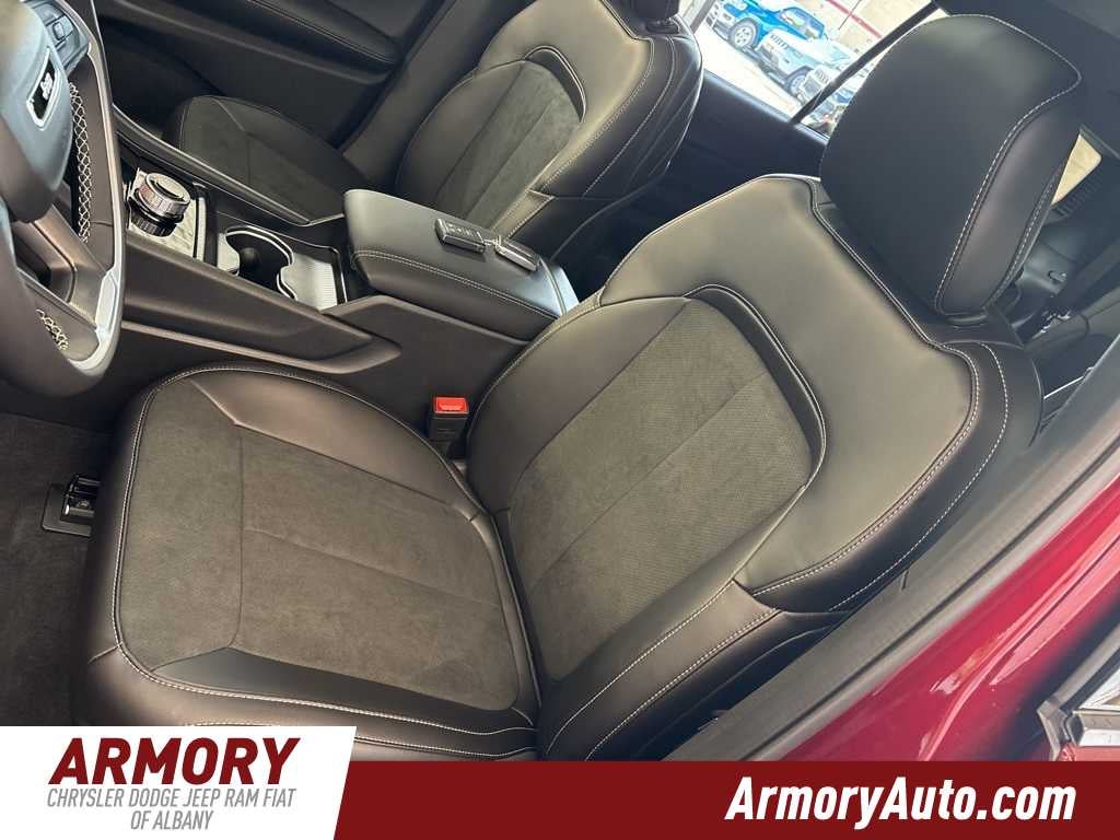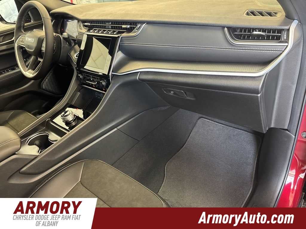 Grand Cherokee L Altitude X is nicely equipped with Quick Order Package 23M Altitude X (115V Auxiliary Power Outlet, 3rd Row Charge-Only USB Ports, Altitude X, Black Headliner, Capri Leatherette/Suede Seats, Delete Laredo Badge, Gloss Black Exterior Accents, Heated Front Seats, Heated Steering Wheel, Power Liftgate, Power Sunroof, Rain Sensitive Windshield Wipers, Remote Start System, Selectable Tire Fill Alert, Wheels: 18 x 8.0 Fully Painted Aluminum 1, and Wireless Charging Pad), 3.45 Rear Axle Ratio, 3rd row seats: split-bench, 4-Wheel Disc Brakes, 6 Speakers, ABS brakes, Air Conditioning, Alloy wheels, AM/FM radio: SiriusXM, Anti-whiplash front head restraints, Automatic temperature control, Brake assist, Bumpers: body-color, Cloth Seats, Compass, Delay-off headlights, Driver door bin, Driver vanity mirror, Dual front impact airbags, Dual front side impact airbags, Electronic Stability Control, Emergency communication system, Four wheel independent suspension, Front anti-roll bar, Front Bucket Seats, Front Center Armrest w/Storage, Front dual zone A/C, Front License Plate Bracket, Front reading lights, Fully automatic headlights, Heated door mirrors, Illuminated entry, Knee airbag, Low tire pressure warning, Manual Fold Seatbacks, Model Year Tracking, Normal Duty Suspension, Occupant sensing airbag, Outside temperature display, Overhead airbag, Overhead console, Panic alarm, ParkView Rear Back-Up Camera, Passenger door bin, Passenger vanity mirror, Power door mirrors, Power driver seat, Power steering, Power windows, Radio data system, Radio: Uconnect 5 with 8.4 Display, Rear air conditioning, Rear anti-roll bar, Rear reading lights, Rear window defroster, Rear window wiper, Reclining 3rd row seat, Remote keyless entry, Security system, Speed control, Speed-Sensitive Wipers, Split folding rear seat, Spoiler, Steering wheel mounted audio controls, Tachometer, Telescoping steering wheel, Tilt steering wheel, Traction control, Trip computer, Variably intermittent wipers, Voltmeter, and Wheels: 18 x 8.0 Fully Painted Aluminum.