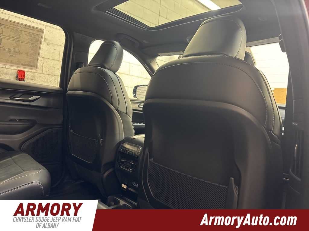 Grand Cherokee L Altitude X is nicely equipped with Quick Order Package 23M Altitude X (115V Auxiliary Power Outlet, 3rd Row Charge-Only USB Ports, Altitude X, Black Headliner, Capri Leatherette/Suede Seats, Delete Laredo Badge, Gloss Black Exterior Accents, Heated Front Seats, Heated Steering Wheel, Power Liftgate, Power Sunroof, Rain Sensitive Windshield Wipers, Remote Start System, Selectable Tire Fill Alert, Wheels: 18 x 8.0 Fully Painted Aluminum 1, and Wireless Charging Pad), 3.45 Rear Axle Ratio, 3rd row seats: split-bench, 4-Wheel Disc Brakes, 6 Speakers, ABS brakes, Air Conditioning, Alloy wheels, AM/FM radio: SiriusXM, Anti-whiplash front head restraints, Automatic temperature control, Brake assist, Bumpers: body-color, Cloth Seats, Compass, Delay-off headlights, Driver door bin, Driver vanity mirror, Dual front impact airbags, Dual front side impact airbags, Electronic Stability Control, Emergency communication system, Four wheel independent suspension, Front anti-roll bar, Front Bucket Seats, Front Center Armrest w/Storage, Front dual zone A/C, Front License Plate Bracket, Front reading lights, Fully automatic headlights, Heated door mirrors, Illuminated entry, Knee airbag, Low tire pressure warning, Manual Fold Seatbacks, Model Year Tracking, Normal Duty Suspension, Occupant sensing airbag, Outside temperature display, Overhead airbag, Overhead console, Panic alarm, ParkView Rear Back-Up Camera, Passenger door bin, Passenger vanity mirror, Power door mirrors, Power driver seat, Power steering, Power windows, Radio data system, Radio: Uconnect 5 with 8.4 Display, Rear air conditioning, Rear anti-roll bar, Rear reading lights, Rear window defroster, Rear window wiper, Reclining 3rd row seat, Remote keyless entry, Security system, Speed control, Speed-Sensitive Wipers, Split folding rear seat, Spoiler, Steering wheel mounted audio controls, Tachometer, Telescoping steering wheel, Tilt steering wheel, Traction control, Trip computer, Variably intermittent wipers, Voltmeter, and Wheels: 18 x 8.0 Fully Painted Aluminum.