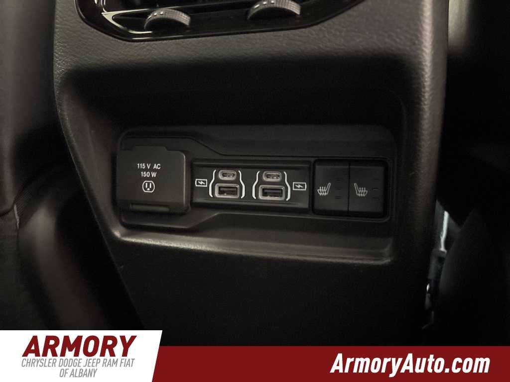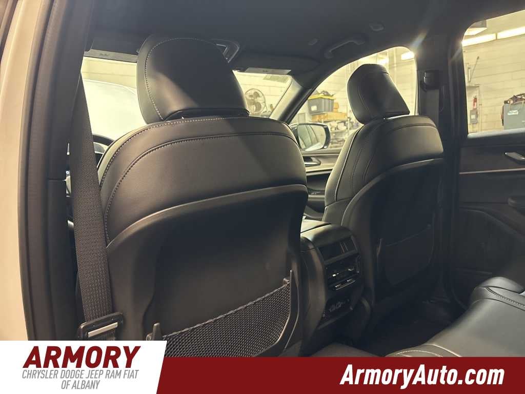Grand Cherokee Limited is nicely equipped with Quick Order Package 23E, 4-Wheel Disc Brakes, 6 Speakers, ABS brakes, Active Noise Control System, Air Conditioning, Alloy wheels, AM/FM radio: SiriusXM with 360L, Anti-whiplash front head restraints, Audio memory, Auto High-beam Headlights, Automatic temperature control, Brake assist, Bumpers: body-color, Capri Leatherette Seats, Compass, Delay-off headlights, Driver door bin, Driver vanity mirror, Dual front impact airbags, Dual front side impact airbags, Electronic Stability Control, Emergency communication system, Four wheel independent suspension, Front anti-roll bar, Front Bucket Seats, Front Center Armrest w/Storage, Front dual zone A/C, Front fog lights, Front License Plate Bracket, Front reading lights, Fully automatic headlights, Garage door transmitter, Heated door mirrors, Heated front seats, Heated rear seats, Heated steering wheel, Illuminated entry, Knee airbag, Low tire pressure warning, Memory seat, Model Year Tracking, Navigation System, Normal Duty Suspension, Occupant sensing airbag, Outside temperature display, Overhead airbag, Overhead console, Panic alarm, ParkView Rear Back-Up Camera, Passenger door bin, Passenger vanity mirror, Power door mirrors, Power driver seat, Power Liftgate, Power passenger seat, Power steering, Power windows, Radio data system, Radio: Uconnect 5 Nav with 10.1 Display, Rear anti-roll bar, Rear reading lights, Rear window defroster, Rear window wiper, Remote keyless entry, Security system, Speed control, Speed-Sensitive Wipers, Split folding rear seat, Spoiler, Steering wheel mounted audio controls, Tachometer, Telescoping steering wheel, Tilt steering wheel, Traction control, Trip computer, Turn signal indicator mirrors, Variably intermittent wipers, Voltmeter, and Wheels: 18 x 8 Polished/Painted Aluminum.