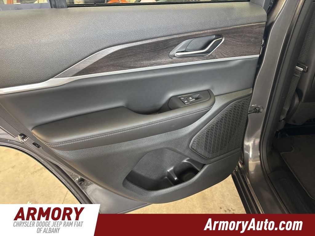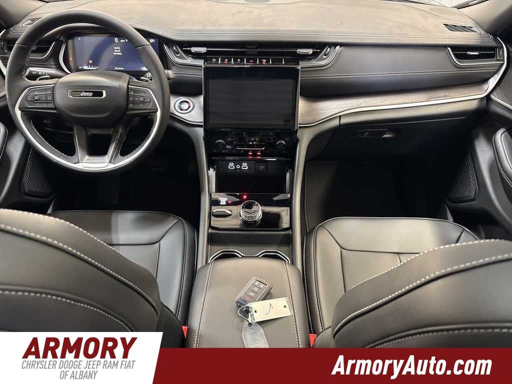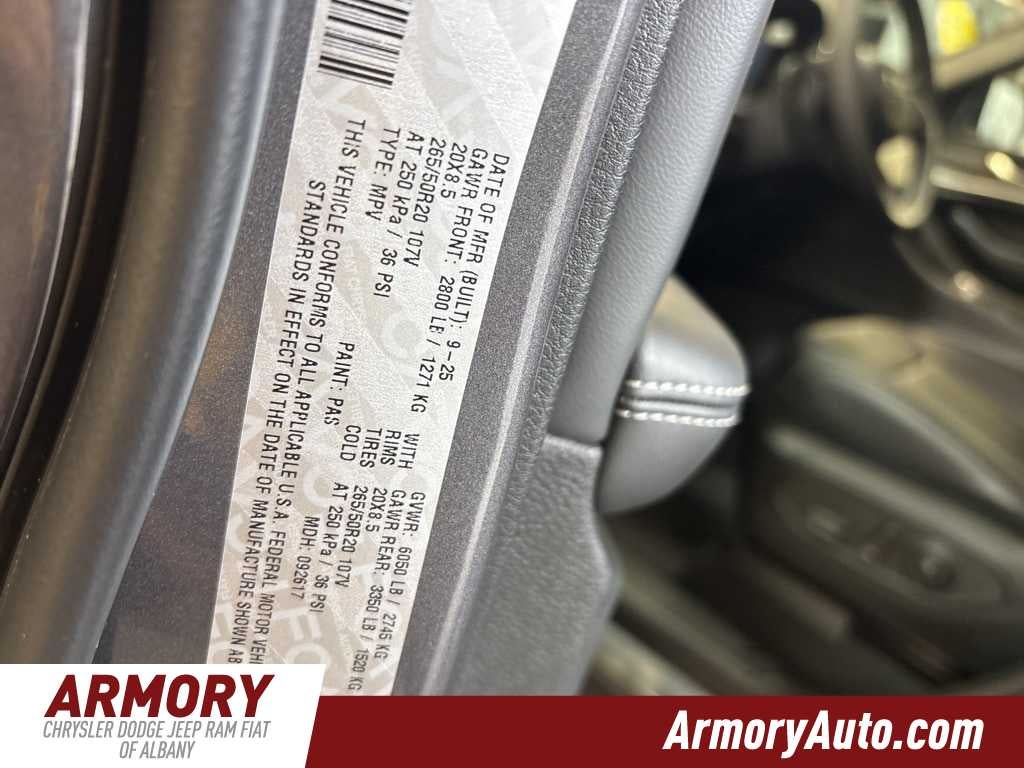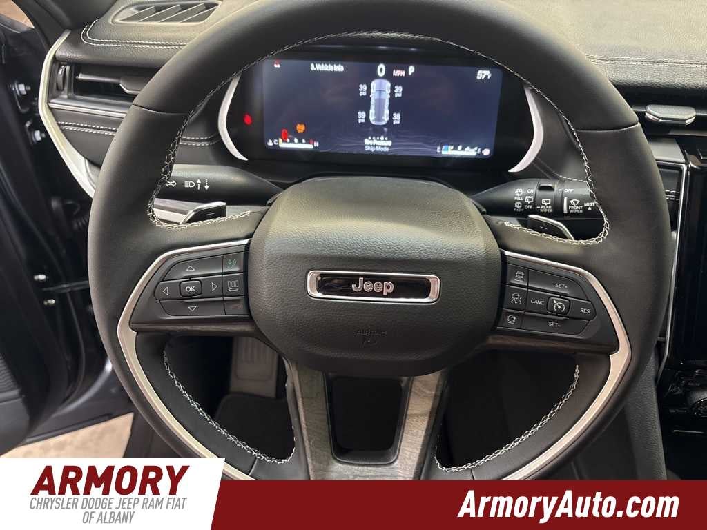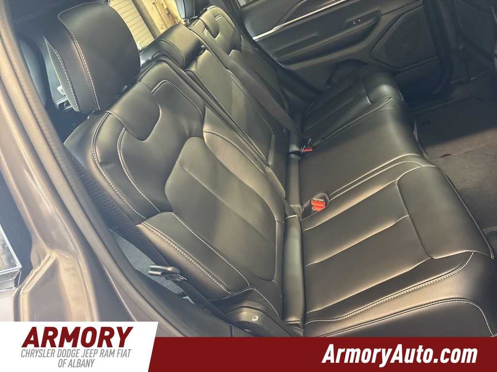 Grand Cherokee Limited is nicely equipped with Black Appearance Package (Gloss Black Exterior Accents and Wheels: 20 x 8.5 Gloss Black Painted Aluminum), Quick Order Package 23E, 4-Wheel Disc Brakes, 6 Speakers, ABS brakes, Active Noise Control System, Air Conditioning, Alloy wheels, AM/FM radio: SiriusXM with 360L, Anti-whiplash front head restraints, Audio memory, Auto High-beam Headlights, Automatic temperature control, Brake assist, Bumpers: body-color, Capri Leatherette Seats, Compass, Delay-off headlights, Driver door bin, Driver vanity mirror, Dual front impact airbags, Dual front side impact airbags, Dual-Pane Panoramic Sunroof, Electronic Stability Control, Emergency communication system, Four wheel independent suspension, Front anti-roll bar, Front Bucket Seats, Front Center Armrest w/Storage, Front dual zone A/C, Front fog lights, Front License Plate Bracket, Front reading lights, Fully automatic headlights, Garage door transmitter, Heated door mirrors, Heated front seats, Heated rear seats, Heated steering wheel, Illuminated entry, Knee airbag, Low tire pressure warning, Memory seat, Model Year Tracking, Navigation System, Normal Duty Suspension, Occupant sensing airbag, Outside temperature display, Overhead airbag, Overhead console, Panic alarm, ParkView Rear Back-Up Camera, Passenger door bin, Passenger vanity mirror, Power door mirrors, Power driver seat, Power Liftgate, Power passenger seat, Power steering, Power windows, Radio data system, Radio: Uconnect 5 Nav with 10.1 Display, Rear anti-roll bar, Rear reading lights, Rear window defroster, Rear window wiper, Remote keyless entry, Security system, Speed control, Speed-Sensitive Wipers, Split folding rear seat, Spoiler, Steering wheel mounted audio controls, Tachometer, Telescoping steering wheel, Tilt steering wheel, Traction control, Trip computer, Turn signal indicator mirrors, Variably intermittent wipers, Voltmeter, and Wheels: 18 x 8 Polished/Painted Aluminum.