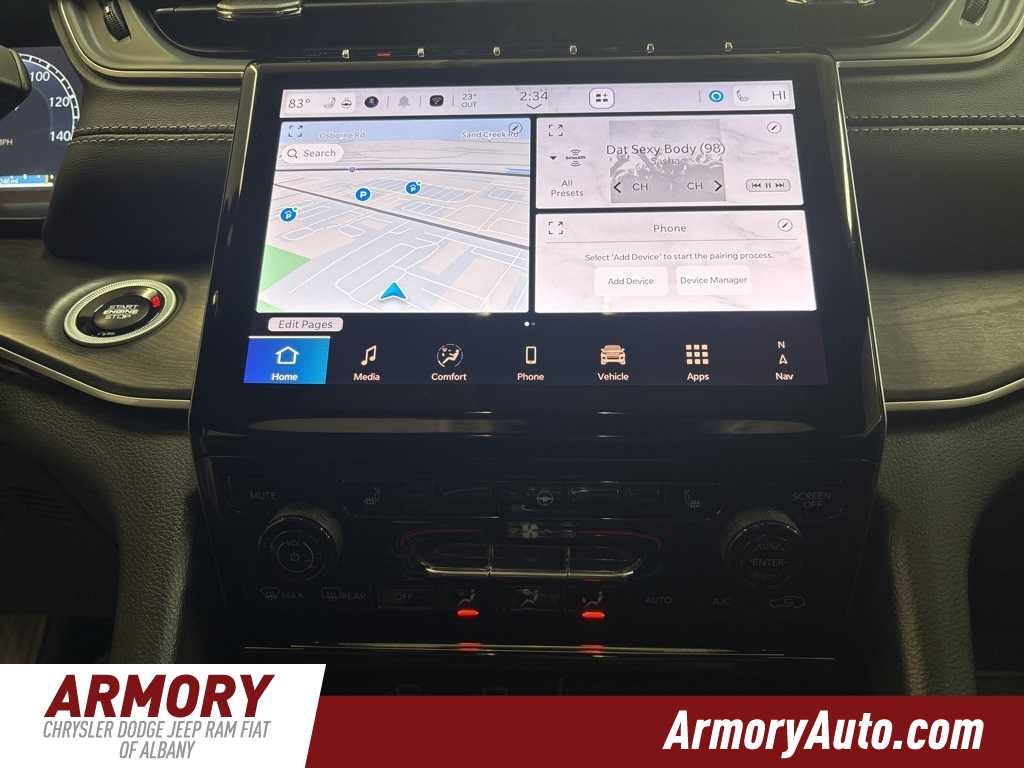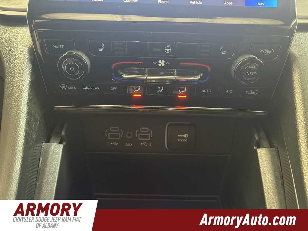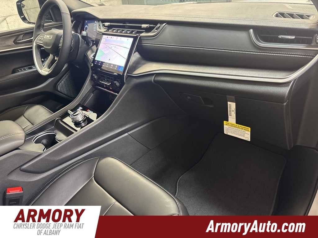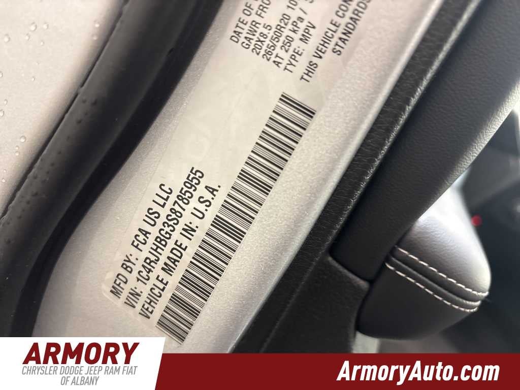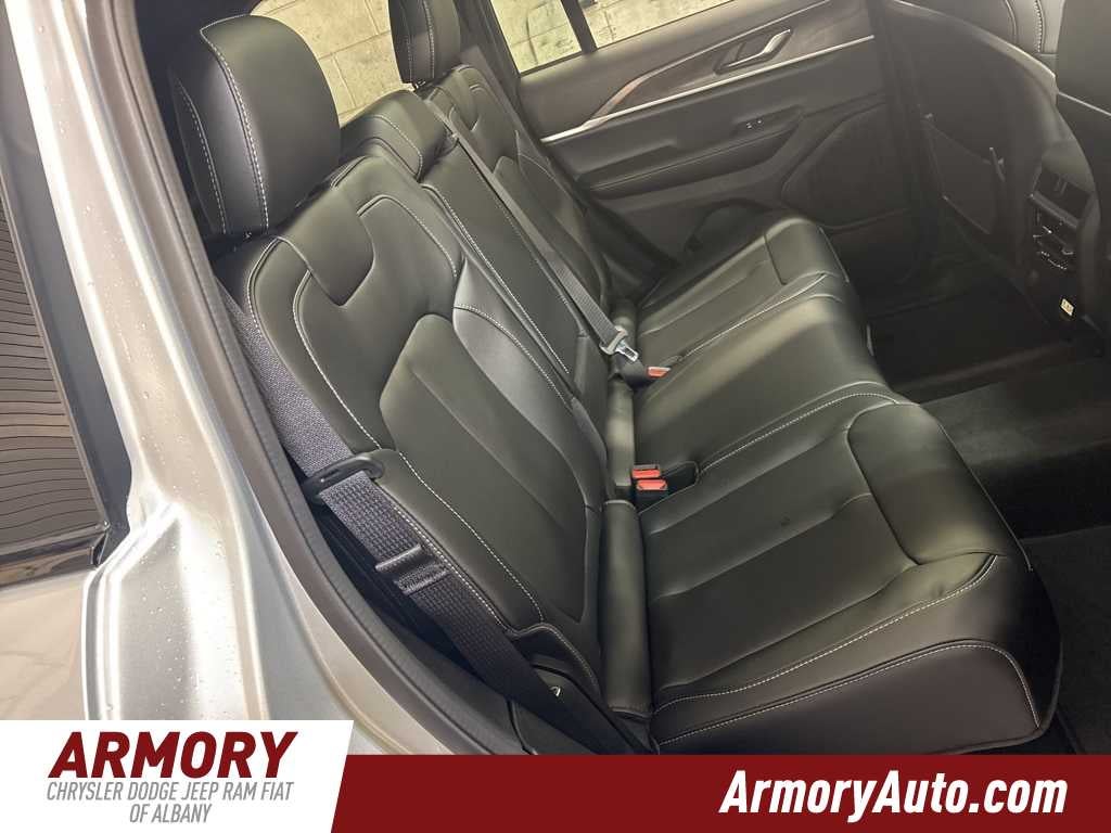 Grand Cherokee Limited is nicely equipped with Blackout Model (Black Painted Roof, Delete Limited Badge, Dual-Pane Panoramic Sunroof, Gloss Black Exterior Accents, and Wheels: 20 x 8.5 Black Painted Aluminum), Quick Order Package 22E, 4-Wheel Disc Brakes, 6 Speakers, ABS brakes, Active Noise Control System, Air Conditioning, Alloy wheels, AM/FM radio: SiriusXM with 360L, Anti-whiplash front head restraints, Audio memory, Auto High-beam Headlights, Automatic temperature control, Brake assist, Bumpers: body-color, Capri Leatherette Seats, Compass, Delay-off headlights, Driver door bin, Driver vanity mirror, Dual front impact airbags, Dual front side impact airbags, Electronic Stability Control, Emergency communication system, Four wheel independent suspension, Front anti-roll bar, Front Bucket Seats, Front Center Armrest w/Storage, Front dual zone A/C, Front fog lights, Front License Plate Bracket, Front reading lights, Fully automatic headlights, Garage door transmitter, Heated door mirrors, Heated front seats, Heated rear seats, Heated steering wheel, Illuminated entry, Knee airbag, Low tire pressure warning, Memory seat, Model Year Tracking, Navigation System, Normal Duty Suspension, Occupant sensing airbag, Outside temperature display, Overhead airbag, Overhead console, Panic alarm, ParkView Rear Back-Up Camera, Passenger door bin, Passenger vanity mirror, Power door mirrors, Power driver seat, Power Liftgate, Power passenger seat, Power steering, Power windows, Radio data system, Radio: Uconnect 5 Nav with 10.1 Display, Rear anti-roll bar, Rear reading lights, Rear window defroster, Rear window wiper, Remote keyless entry, Security system, Speed control, Speed-Sensitive Wipers, Split folding rear seat, Spoiler, Steering wheel mounted audio controls, Tachometer, Telescoping steering wheel, Tilt steering wheel, Traction control, Trip computer, Turn signal indicator mirrors, Variably intermittent wipers, Voltmeter, and Wheels: 18 x 8 Polished/Painted Aluminum.
