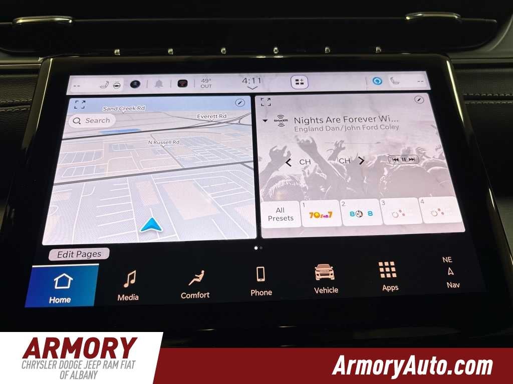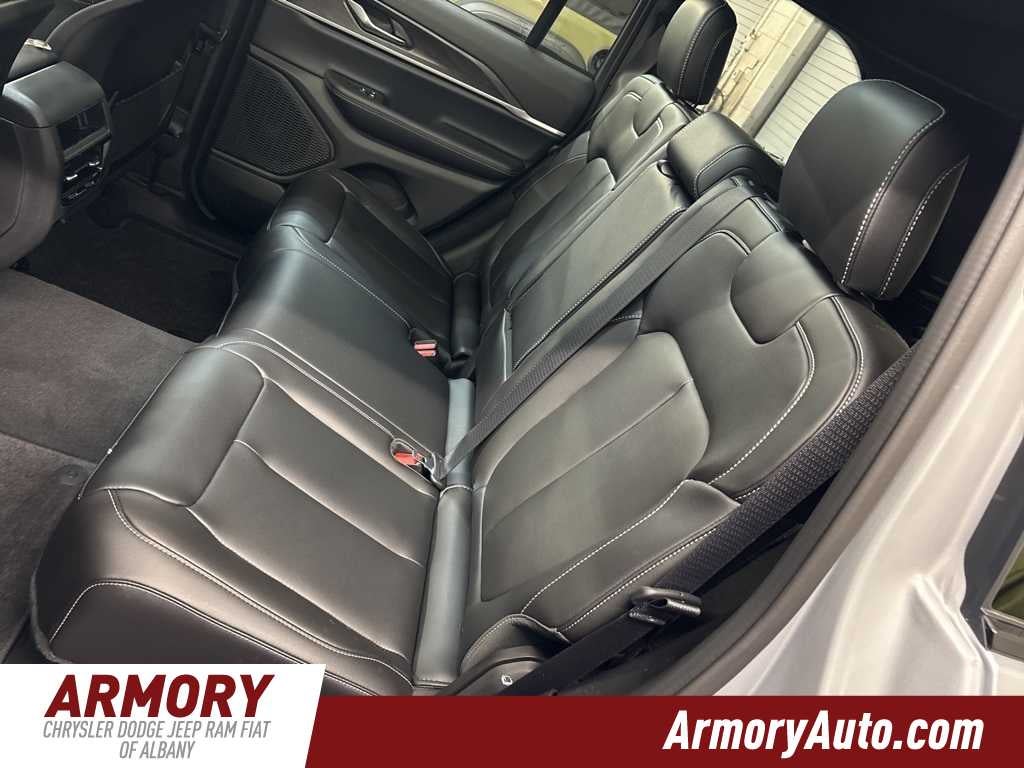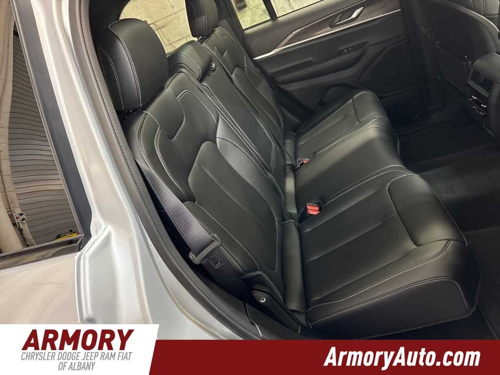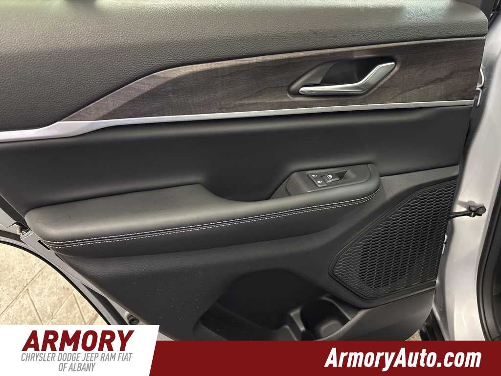 Grand Cherokee Limited is nicely equipped with Black Appearance Package (Gloss Black Exterior Accents and Wheels: 20 x 8.5 Gloss Black Painted Aluminum), Quick Order Package 23E, 4-Wheel Disc Brakes, 6 Speakers, ABS brakes, Active Noise Control System, Air Conditioning, Alloy wheels, AM/FM radio: SiriusXM with 360L, Anti-whiplash front head restraints, Audio memory, Auto High-beam Headlights, Automatic temperature control, Brake assist, Bumpers: body-color, Capri Leatherette Seats, Compass, Delay-off headlights, Driver door bin, Driver vanity mirror, Dual front impact airbags, Dual front side impact airbags, Dual-Pane Panoramic Sunroof, Electronic Stability Control, Emergency communication system, Four wheel independent suspension, Front anti-roll bar, Front Bucket Seats, Front Center Armrest w/Storage, Front dual zone A/C, Front fog lights, Front License Plate Bracket, Front reading lights, Fully automatic headlights, Garage door transmitter, Heated door mirrors, Heated front seats, Heated rear seats, Heated steering wheel, Illuminated entry, Knee airbag, Low tire pressure warning, Memory seat, Model Year Tracking, Navigation System, Normal Duty Suspension, Occupant sensing airbag, Outside temperature display, Overhead airbag, Overhead console, Panic alarm, ParkView Rear Back-Up Camera, Passenger door bin, Passenger vanity mirror, Power door mirrors, Power driver seat, Power Liftgate, Power passenger seat, Power steering, Power windows, Radio data system, Radio: Uconnect 5 Nav with 10.1 Display, Rear anti-roll bar, Rear reading lights, Rear window defroster, Rear window wiper, Remote keyless entry, Security system, Speed control, Speed-Sensitive Wipers, Split folding rear seat, Spoiler, Steering wheel mounted audio controls, Tachometer, Telescoping steering wheel, Tilt steering wheel, Traction control, Trip computer, Turn signal indicator mirrors, Variably intermittent wipers, Voltmeter, and Wheels: 18 x 8 Polished/Painted Aluminum.