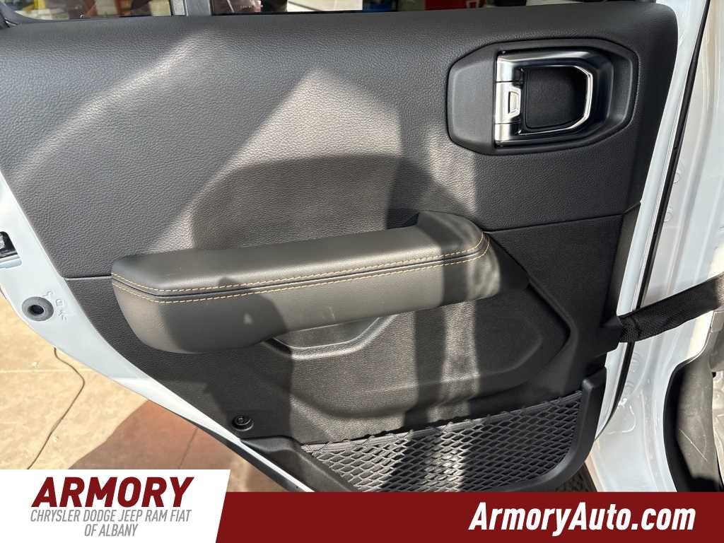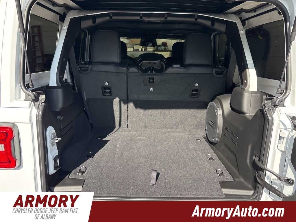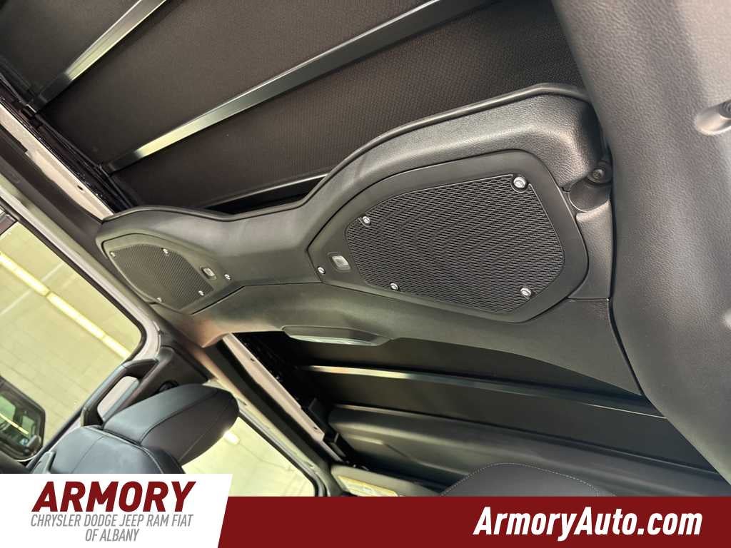 Wrangler Sahara is nicely equipped with Quick Order Package 22G Sahara, Sahara Popular Equipment Group (#1 Seat Foam Cushion, 12.3 Touchscreen Display, 4G LTE Wi-Fi Hot Spot, Alpine Premium Audio System, Apple CarPlay, Auto High Beam Headlamp Control, Auto-Dimming Rear-View Mirror, Blind Spot & Cross Path Detection, Connected Travel & Traffic Services, Connectivity - US/Canada, Disassociated Touchscreen Display, For More Info, Call 800-643-2112, Google Android Auto, GPS Navigation, Hard Seat Back, HD Radio, Integrated Center Stack Radio, Integrated Off-Road Camera, Integrated Voice Command w/Bluetooth®, Leather Wrapped Park Brake Handle, Leather Wrapped Shift Knob, McKinley Trimmed Seats, ParkSense Rear Park Assist System, Power 4-Way Driver Lumbar Adjust, Power 4-Way Passenger Lumbar Adjust, Power Adjust 8-Way Driver Seat, Power Adjust 8-Way Front Passenger Seat, Radio: Uconnect 5 Nav w/12.3 Display, Side Steps, SiriusXM Radio Service, SiriusXM w/360L, and Universal Garage Door Opener), 110 MPH Vehicle Max Speed Calibration, 3.45 Overall Top Gear Ratio, 4-Wheel Disc Brakes, 8 Speakers, ABS brakes, Air Conditioning, Alloy wheels, AM/FM radio: SiriusXM, Apple CarPlay/Android Auto, Automatic temperature control, Aux Battery, Brake assist, Cloth Low-Back Bucket Seats, Compass, Delay-off headlights, Driver door bin, Driver vanity mirror, Dual front impact airbags, Dual front side impact airbags, Electronic Stability Control, Emergency communication system: Jeep Connect, Front anti-roll bar, Front Bucket Seats, Front Center Armrest w/Storage, Front dual zone A/C, Front fog lights, Front License Plate Bracket (DISC), Front reading lights, Fully automatic headlights, Heated door mirrors, Heated front seats, Heated steering wheel, Heavy Duty Suspension w/Gas Shocks, Illuminated entry, Integrated roll-over protection, Jeep Trail Rated Kit, Low tire pressure warning, MOPAR All-Weather Floor Mats, Non-Lock Fuel Cap w/o Discriminator, Occupant sensing airbag, Outside temperature display, Overhead airbag, Panic alarm, ParkView Rear Back-Up Camera, Passenger door bin, Passenger vanity mirror, Power door mirrors, Power steering, Power Top Quarter Window Storage Bag, Power windows, Radio data system, Radio: Uconnect 5 w/12.3 Display, Rear anti-roll bar, Rear reading lights, Rear Window Defroster, Rear Window Wiper/Washer, Remote keyless entry, Removable Rear Quarter Windows, Security system, Sky 1-Touch Power Top, Speed control, Split folding rear seat, Steering wheel mounted audio controls, Stop-Start Dual Battery System, Tachometer, Telescoping steering wheel, Tilt steering wheel, Traction control, Trip computer, Variably intermittent wipers, Voltmeter, and Wheels: 18 x 7.5 Machine/Painted Gray.