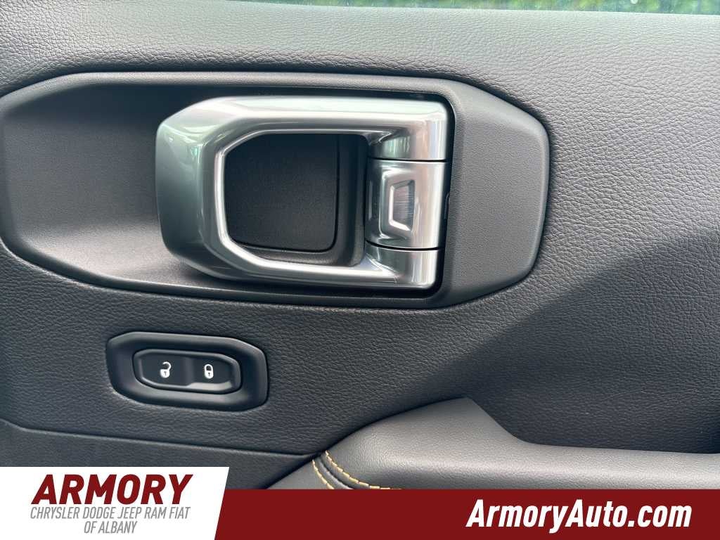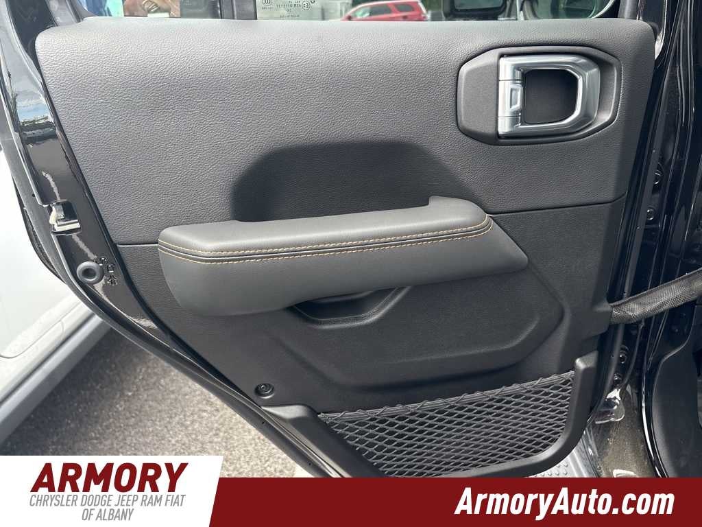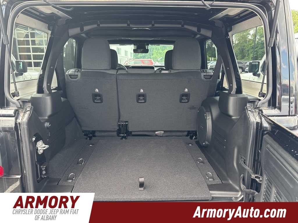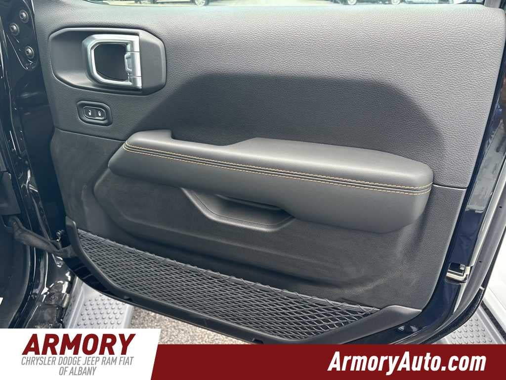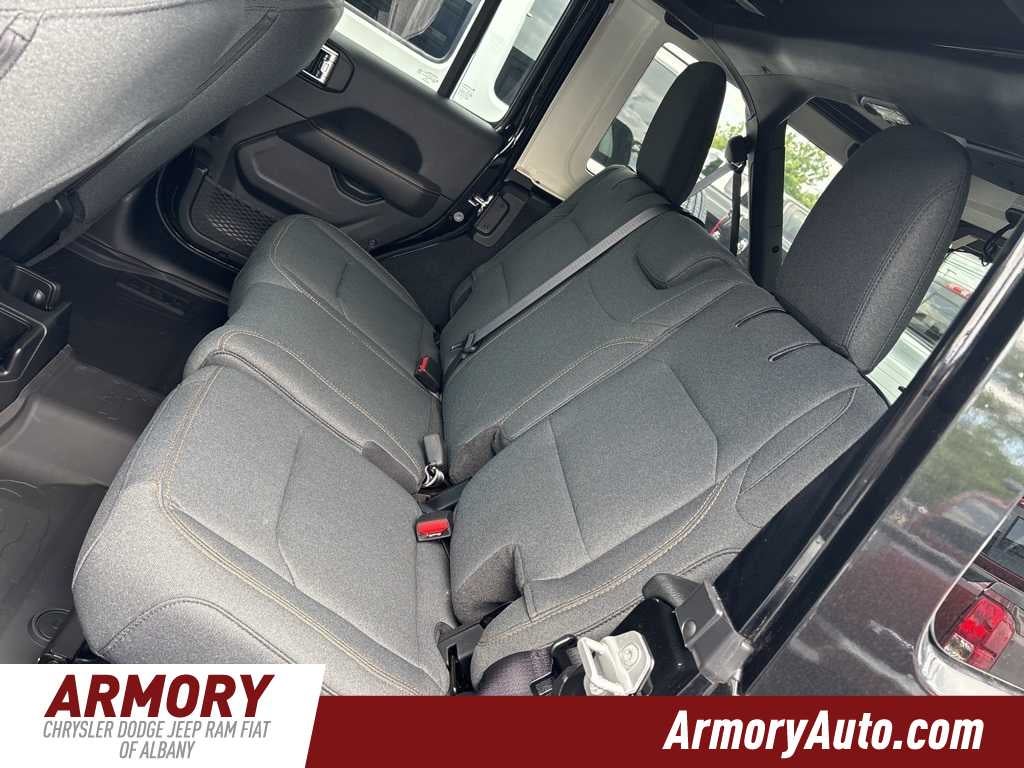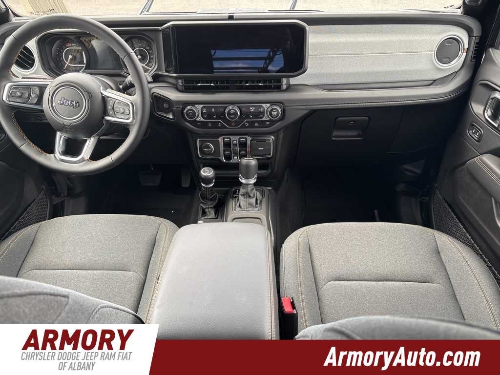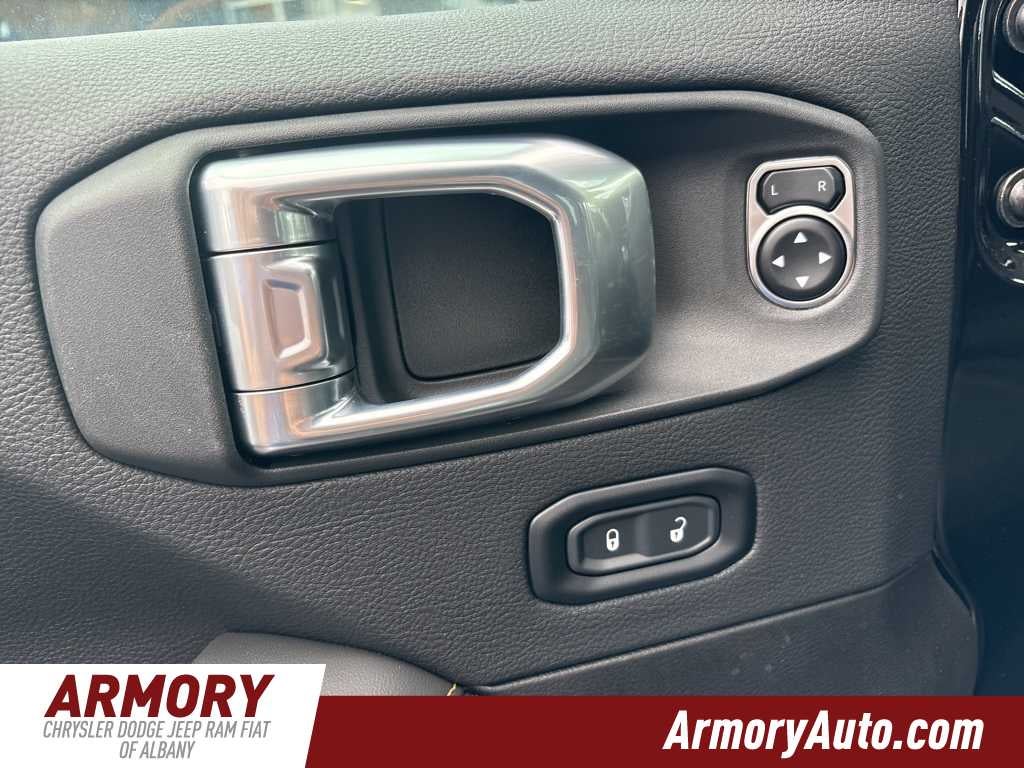 Wrangler Sahara is nicely equipped with Quick Order Package 22G Sahara, Safety Group (Auto High Beam Headlamp Control, Blind Spot & Cross Path Detection, and ParkSense Rear Park Assist System), Technology Group (12.3 Touchscreen Display, 4G LTE Wi-Fi Hot Spot, Apple CarPlay, Auto-Dimming Rear-View Mirror, Connected Travel & Traffic Services, Connectivity - US/Canada, Google Android Auto, GPS Navigation, HD Radio, Integrated Off-Road Camera, Integrated Voice Command w/Bluetooth®, Radio: Uconnect 5 Nav w/12.3 Display, SiriusXM Radio Service, SiriusXM w/360L, and Universal Garage Door Opener), 110 MPH Vehicle Max Speed Calibration, 3.45 Overall Top Gear Ratio, 4-Wheel Disc Brakes, 8 Speakers, ABS brakes, Air Conditioning, Alloy wheels, Alpine Premium Audio System, AM/FM radio: SiriusXM, Apple CarPlay/Android Auto, Automatic temperature control, Aux Battery, Brake assist, Cloth Low-Back Bucket Seats, Compass, Delay-off headlights, Driver door bin, Driver vanity mirror, Dual front impact airbags, Dual front side impact airbags, Electronic Stability Control, Emergency communication system: Jeep Connect, Front anti-roll bar, Front Bucket Seats, Front Center Armrest w/Storage, Front dual zone A/C, Front fog lights, Front License Plate Bracket (DISC), Front reading lights, Fully automatic headlights, Heated door mirrors, Heated front seats, Heated steering wheel, Heavy Duty Suspension w/Gas Shocks, Illuminated entry, Integrated Center Stack Radio, Integrated roll-over protection, Jeep Trail Rated Kit, Low tire pressure warning, MOPAR All-Weather Floor Mats, Non-Lock Fuel Cap w/o Discriminator, Occupant sensing airbag, Outside temperature display, Overhead airbag, Panic alarm, ParkView Rear Back-Up Camera, Passenger door bin, Passenger vanity mirror, Power door mirrors, Power steering, Power Top Quarter Window Storage Bag, Power windows, Radio data system, Radio: Uconnect 5 w/12.3 Display, Rear anti-roll bar, Rear reading lights, Rear Window Defroster, Rear Window Wiper/Washer, Remote keyless entry, Removable Rear Quarter Windows, Security system, Side Steps, Sky 1-Touch Power Top, Speed control, Split folding rear seat, Steering wheel mounted audio controls, Stop-Start Dual Battery System, Tachometer, Telescoping steering wheel, Tilt steering wheel, Traction control, Trip computer, Variably intermittent wipers, Voltmeter, and Wheels: 18 x 7.5 Machine/Painted Gray.