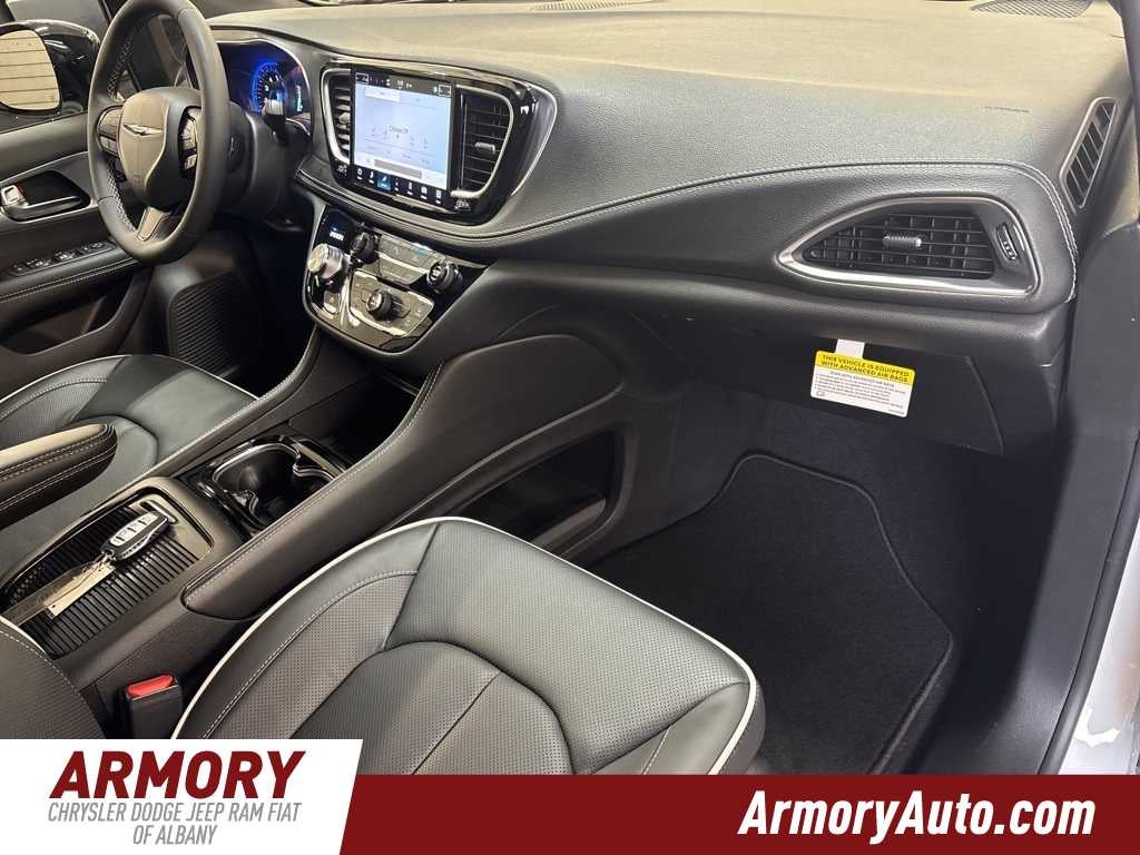 Pacifica Limited is nicely equipped with Quick Order Package 27P, S Appearance Package (Anodized Ink Badging, Black Day Light Opening Moldings, Black Stow N Place Roof Rack, Gloss Black Exterior Mirrors, Premium Rear Fascia Black, S Badge, and Wheels: 20 x 7.5 S-Model Aluminum Design 1), 13 Speakers, 18 x 7.5 Painted Aluminum Wheels, 3.25 Axle Ratio, 3rd row seats: split-bench, 4-Wheel Disc Brakes, ABS brakes, Air Conditioning, Alloy wheels, AM/FM radio: SiriusXM 360L, Apple CarPlay/Android Auto, Audio memory, Auto-dimming Rear-View mirror, Automatic temperature control, Black Seats, Brake assist, Bumpers: body-color, Compass, Delay-off headlights, Driver door bin, Driver vanity mirror, Drivers Seat Mounted Armrest, Dual front impact airbags, Dual front side impact airbags, Electronic Stability Control, Emergency communication system: Chrysler Connect, Four wheel independent suspension, Front anti-roll bar, Front Bucket Seats, Front dual zone A/C, Front fog lights, Front reading lights, Fully automatic headlights, Garage door transmitter, Heated door mirrors, Heated front seats, Heated rear seats, Heated steering wheel, Illuminated entry, Integrated Active Noise Cancellation, Knee airbag, Low tire pressure warning, Memory seat, MyFlexCare Service Plan, Nappa Leather Bucket Seats, Navigation System, Occupant sensing airbag, Outside temperature display, Overhead airbag, Overhead console, Panic alarm, ParkView Rear Back-Up Camera, Passenger door bin, Passenger seat mounted armrest, Passenger vanity mirror, Power door mirrors, Power driver seat, Power Liftgate, Power moonroof, Power passenger seat, Power steering, Power windows, Radio data system, Rain sensing wipers, Rear air conditioning, Rear reading lights, Rear window defroster, Rear window wiper, Reclining 3rd row seat, Remote keyless entry, Roof rack, Security system, Speed control, Split folding rear seat, Spoiler, Steering wheel mounted audio controls, Tachometer, Telescoping steering wheel, Tilt steering wheel, Touring Suspension, Traction control, Trip computer, Turn signal indicator mirrors, Variably intermittent wipers, Ventilated front seats, and Voltmeter.