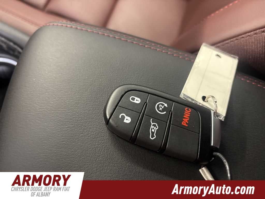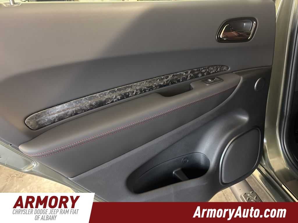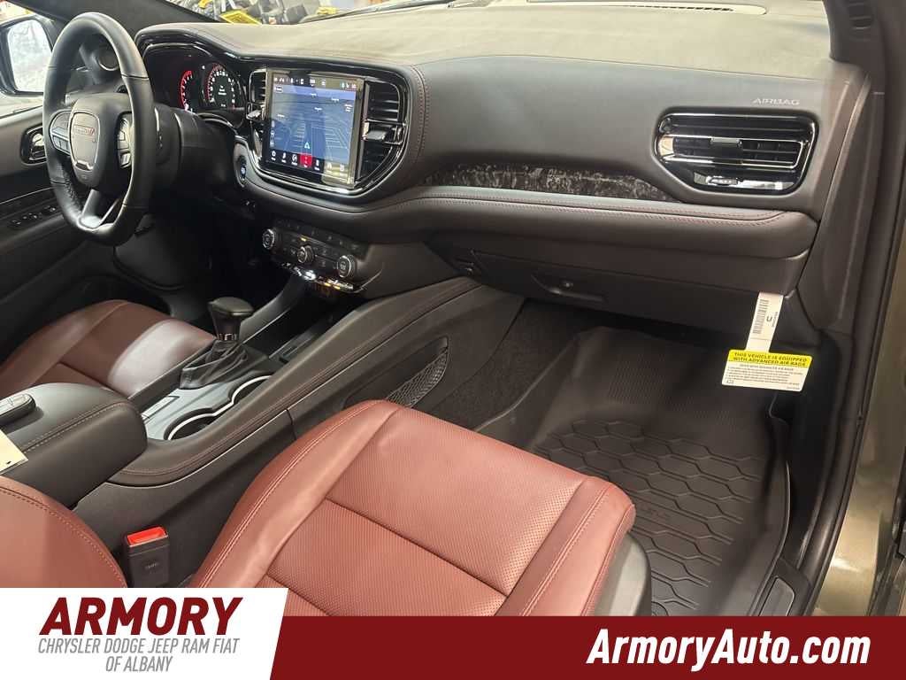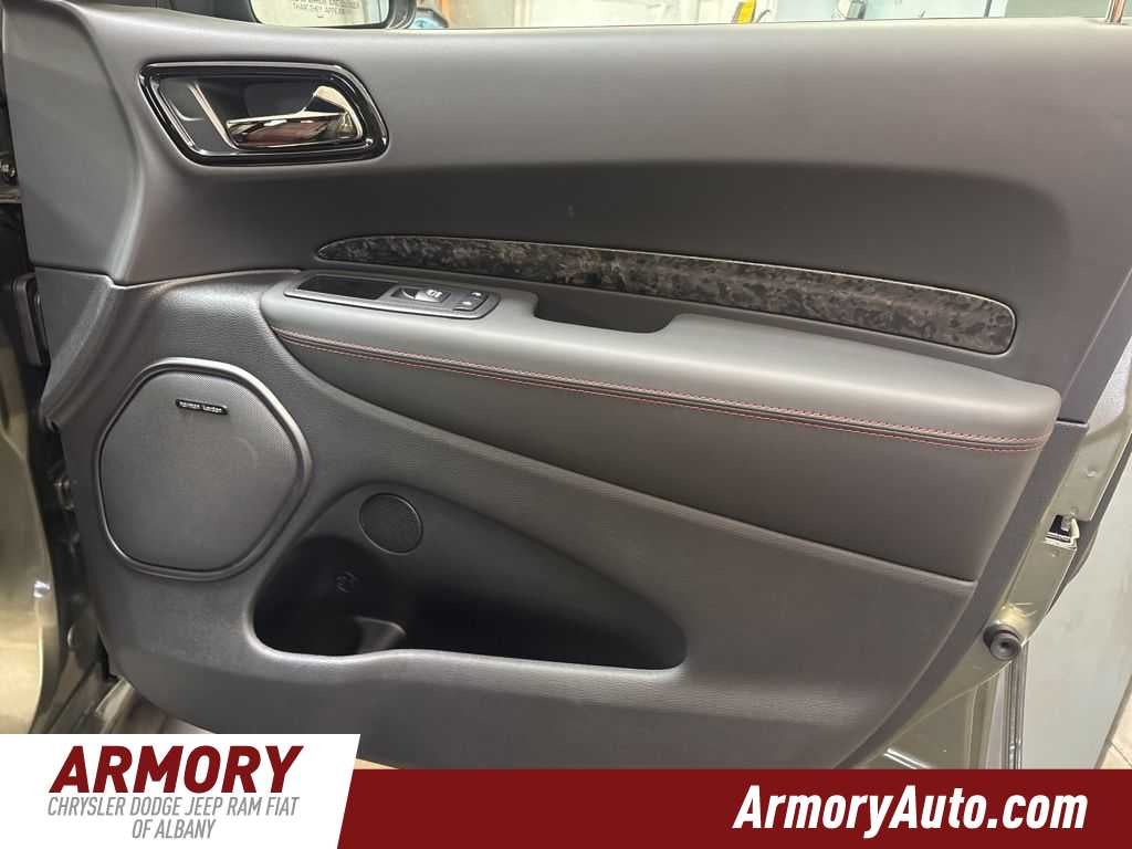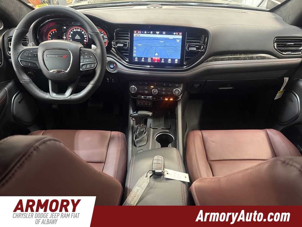 Durango GT Premium HEMI V8 is nicely equipped with MOPAR All Weather Package (Cargo Net, MOPAR Front and Rear Door Entry Guards, and MOPAR Slush Mats), Quick Order Package 22U GT Premium (115V Auxiliary Power Outlet, 19 Harman/Kardon Amplified Speakers with Subwoofer, 7 and 4 Pin Wiring Harness, 825 Watt Amplifier, Adaptive Cruise Control with Stop, Advanced Brake Assist, Auto High Beam Headlamp Control, Auto-Dimming Exterior Driver Mirror, Black Roof Rails, Blind Spot with Trailer Detection, Bright Cargo Area Scuff Pads, Class IV Receiver Hitch, Dual Remote USB Port - Charge Only, Exterior Mirrors with Heating Element, Exterior Mirrors with Memory, Exterior Mirrors with Supplemental Signals, Floor Console with Leather Armrest, Forged Carbon Fiber Interior Accents, Full Speed Forward Collision Warning Plus, Gloss Black Exterior Mirrors, Heated Second Row Seats, Integrated Roof Rail Crossbars, Lane Departure Warning Plus, Leather Trimmed Bucket Seats, Leather Wrapped Door Panels, LED Auxiliary Low Beam and Turn Signal, Power 6x9 Multi-Function Foldaway Mirrors, Power 8-Way Driver Memory 8-Way Passenger Seats, Power Driver/Passenger 4-Way Lumbar Adjust, Power Sunroof, Power Tilt and Telescopic Steering Column, Premium Instrument Panel, Radio/Driver Seat/Mirrors Memory, Red Accent Stitching, Suede Headliner, Trailer Brake Control, and Ventilated Front Seats), 2nd Row Fold/Tumble Captain Chairs, 2nd Row Mini Console with Cupholders, 2nd Row Seat Mounted Inboard Armrests, 3.09 Rear Axle Ratio, 3rd Row Floor Mat and Mini Console, 3rd row seats: split-bench, 4-Wheel Disc Brakes, 6-Passenger Seating, 9 Speakers, ABS brakes, Air Conditioning, Alloy wheels, AM/FM radio: SiriusXM w/360L, Apple CarPlay/Android Auto, Auto-dimming Rear-View mirror, Auto-leveling suspension, Automatic temperature control, Brake assist, Bumpers: body-color, Cloth Bucket Seats with Shift Insert, Compass, Delay-off headlights, Driver door bin, Driver vanity mirror, Dual front impact airbags, Dual front side impact airbags, Electronic Stability Control, Emergency communication system: Dodge Connect, Four wheel independent suspension, Front anti-roll bar, Front Bucket Seats, Front Center Armrest w/Storage, Front dual zone A/C, Front License Plate Bracket, Front reading lights, Fully automatic headlights, Garage door transmitter, Heated door mirrors, Heated front seats, Heated steering wheel, Illuminated entry, Knee airbag, Leather steering wheel, Low tire pressure warning, Mopar Black Tubular Side Steps, MyFlexCare Service Plan, Navigation System, Occupant sensing airbag, Outside temperature display, Overhead airbag, Overhead console, Panic alarm, ParkView Rear Back-Up Camera, Passenger door bin, Passenger vanity mirror, Power door mirrors, Power driver seat, Power Liftgate, Power steering, Power windows, Radio data system, Radio: Uconnect 5 Nav with 10.1 Display, Rain sensing wipers, Rear air conditioning, Rear anti-roll bar, Rear Load Leveling Suspension, Rear reading lights, Rear seat center armrest, Rear window defroster, Rear window wiper, Remote keyless entry, Security system, Speed control, Speed-sensing steering, Speed-Sensitive Wipers, Split folding rear seat, Spoiler, Sport steering wheel, Steering wheel mounted audio controls, Tachometer, Telescoping steering wheel, Tilt steering wheel, Traction control, Trip computer, Variably intermittent wipers, Voltmeter, and Wheels: 20 x 8 Satin Carbon Split 5-Spoke.