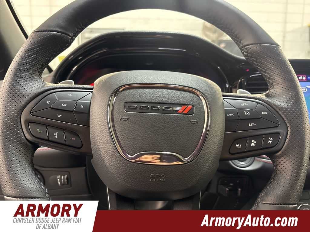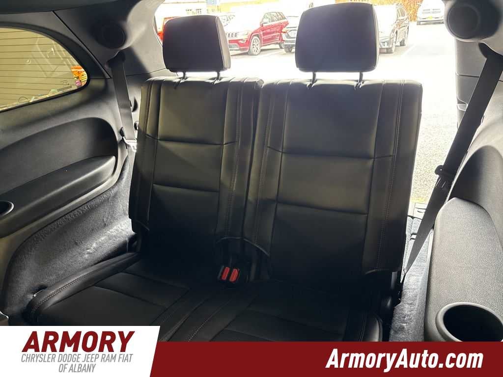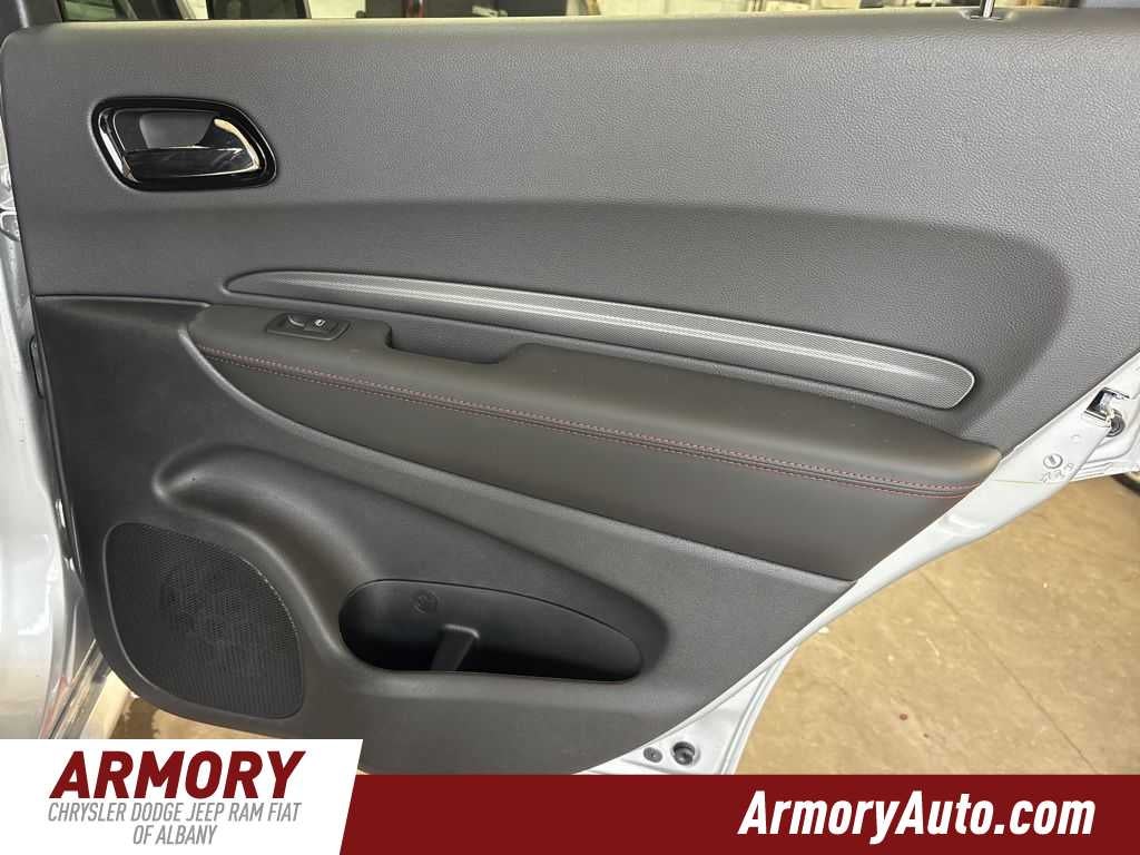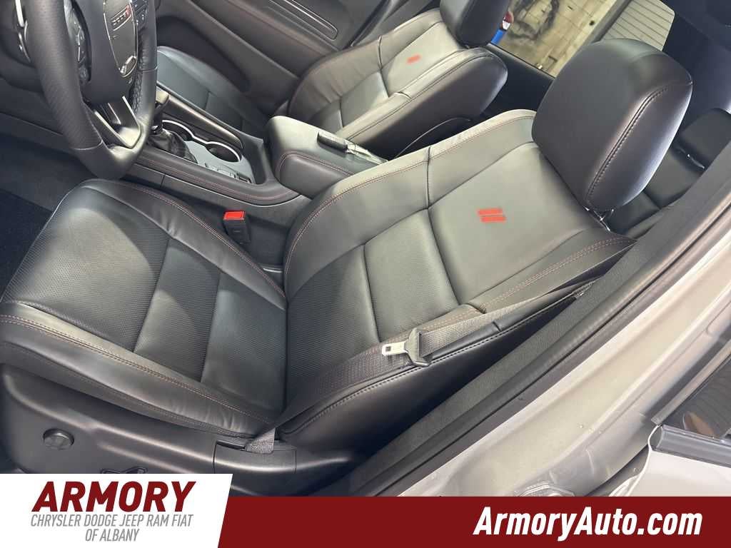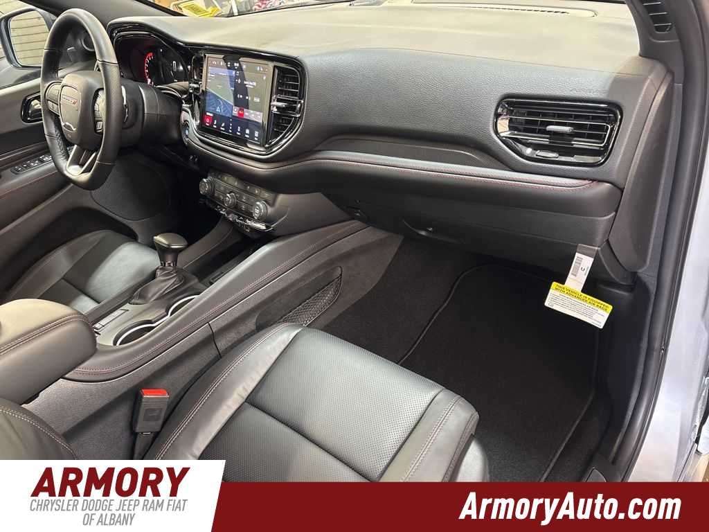 Durango GT Plus HEMI V8 is nicely equipped with Quick Order Package 22T GT Plus (115V Auxiliary Power Outlet, 7 and 4 Pin Wiring Harness, Adaptive Cruise Control with Stop, Auto High Beam Headlamp Control, Auto-Dimming Exterior Driver Mirror, Black Roof Rails, Blind Spot with Trailer Detection, Class IV Receiver Hitch, Dual Remote USB Port - Charge Only, Exterior Mirrors with Heating Element, Exterior Mirrors with Memory, Exterior Mirrors with Supplemental Signals, Floor Console with Leather Armrest, Full Speed Forward Collision Warning Plus, Gloss Black Exterior Mirrors, Heated Second Row Seats, Integrated Roof Rail Crossbars, Leather Trimmed Bucket Seats, Leather Wrapped Door Panels, LED Auxiliary Low Beam and Turn Signal, Power 6x9 Multi-Function Foldaway Mirrors, Power 8-Way Driver Memory 8-Way Passenger Seats, Power Driver/Passenger 4-Way Lumbar Adjust, Power Sunroof, Power Tilt and Telescopic Steering Column, Radio/Driver Seat/Mirrors Memory, Red Accent Stitching, Trailer Brake Control, and Ventilated Front Seats), 3.09 Rear Axle Ratio, 3rd row seats: split-bench, 4-Wheel Disc Brakes, 9 Speakers, ABS brakes, Air Conditioning, Alloy wheels, AM/FM radio: SiriusXM w/360L, Apple CarPlay/Android Auto, Auto-dimming Rear-View mirror, Auto-leveling suspension, Automatic temperature control, Brake assist, Bumpers: body-color, Cloth Bucket Seats with Shift Insert, Compass, Delay-off headlights, Driver door bin, Driver vanity mirror, Dual front impact airbags, Dual front side impact airbags, Electronic Stability Control, Emergency communication system: Dodge Connect, Four wheel independent suspension, Front anti-roll bar, Front Bucket Seats, Front Center Armrest w/Storage, Front dual zone A/C, Front License Plate Bracket, Front reading lights, Fully automatic headlights, Garage door transmitter, Heated door mirrors, Heated front seats, Heated steering wheel, Illuminated entry, Knee airbag, Leather steering wheel, Low tire pressure warning, MyFlexCare Service Plan, Navigation System, Occupant sensing airbag, Outside temperature display, Overhead airbag, Overhead console, Panic alarm, ParkView Rear Back-Up Camera, Passenger door bin, Passenger vanity mirror, Power door mirrors, Power driver seat, Power Liftgate, Power steering, Power windows, Radio data system, Radio: Uconnect 5 Nav with 10.1 Display, Rain sensing wipers, Rear air conditioning, Rear anti-roll bar, Rear Load Leveling Suspension, Rear reading lights, Rear seat center armrest, Rear window defroster, Rear window wiper, Remote keyless entry, Security system, Speed control, Speed-sensing steering, Speed-Sensitive Wipers, Split folding rear seat, Spoiler, Sport steering wheel, Steering wheel mounted audio controls, Tachometer, Telescoping steering wheel, Tilt steering wheel, Traction control, Trip computer, Variably intermittent wipers, Voltmeter, and Wheels: 20 x 8 Satin Carbon Split 5-Spoke.