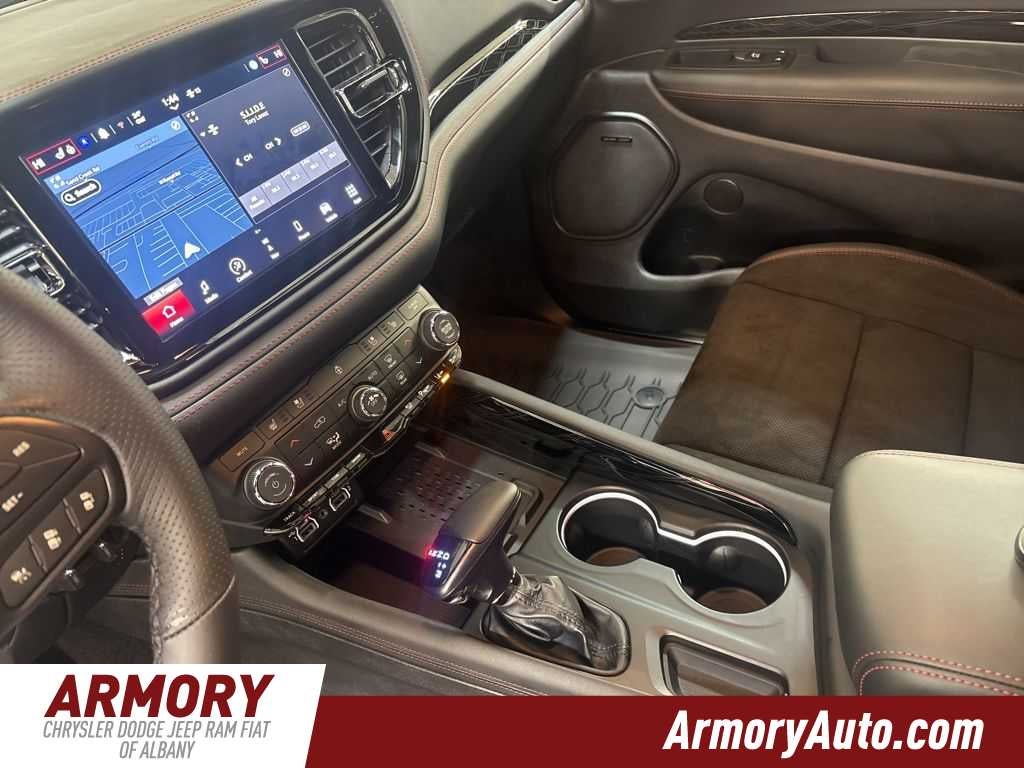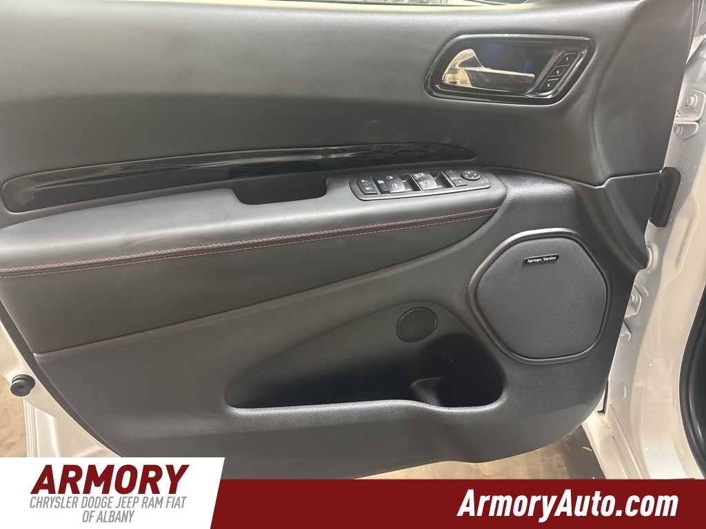Durango GT Premium HEMI V8 is nicely equipped with Blacktop Redline Package (2nd Row Fold/Tumble Captain Chairs, 2nd Row Mini Console with Cupholders, 2nd Row Seat Mounted Inboard Armrests, 6-Passenger Seating, Black Dodge Grille Badge, Black Roof Rails, Blacktop Leather SRT Performance Seats, Crypto Sweep Etch Accents, Floor Console with Leather Armrest, Gloss Black Badges, Gloss Black Exterior Mirrors, Heated Second Row Seats, Integrated Roof Rail Crossbars, Mini Console 3rd Row Floor Mat, Performance Lower Splitter, Power 8-Way Driver Memory 8-Way Passenger Seats, Power Driver/Passenger 4-Way Lumbar Adjust, Premium Door Trim Panel, Premium Instrument Panel, Satin Black Dodge Tail Lamp Badge, SRT Rear Spoiler, and Ventilated Front Seats), MOPAR All Weather Package (Cargo Net, MOPAR Front and Rear Door Entry Guards, and MOPAR Slush Mats), Quick Order Package 22U GT Premium (115V Auxiliary Power Outlet, 19 Harman/Kardon Amplified Speakers with Subwoofer, 7 and 4 Pin Wiring Harness, 825 Watt Amplifier, Adaptive Cruise Control with Stop, Advanced Brake Assist, Auto High Beam Headlamp Control, Auto-Dimming Exterior Driver Mirror, Blind Spot with Trailer Detection, Bright Cargo Area Scuff Pads, Class IV Receiver Hitch, Dual Remote USB Port - Charge Only, Exterior Mirrors with Heating Element, Exterior Mirrors with Memory, Exterior Mirrors with Supplemental Signals, Forged Carbon Fiber Interior Accents, Full Speed Forward Collision Warning Plus, Lane Departure Warning Plus, Leather Trimmed Bucket Seats, Leather Wrapped Door Panels, LED Auxiliary Low Beam and Turn Signal, Power 6x9 Multi-Function Foldaway Mirrors, Power Sunroof, Power Tilt and Telescopic Steering Column, Radio/Driver Seat/Mirrors Memory, Red Accent Stitching, Suede Headliner, and Trailer Brake Control), Tow n Go Package (160 Mph Primary Speedometer, Active Noise Control System, Adaptive Damping, Automatic Headlamp Leveling System, Black Brake Calipers, Body Color Upper and Lower Rear Fascia, Brembo Brakes, Drive Modes - Sport/Track/Tow/Snow, Electronic Limited Slip Differential Rear Axle, High Performance Exhaust, High Performance Suspension, Performance Tuned Steering, Quadra-Trac Active on Demand 4WD, and Run Flat Tires), 3.09 Rear Axle Ratio, 3rd row seats: split-bench, 4-Wheel Disc Brakes, 9 Speakers, ABS brakes, Air Conditioning, Alloy wheels, AM/FM radio: SiriusXM w/360L, Apple CarPlay/Android Auto, Auto-dimming Rear-View mirror, Auto-leveling suspension, Automatic temperature control, Brake assist, Bumpers: body-color, Cloth Bucket Seats with Shift Insert, Compass, Delay-off headlights, Driver door bin, Driver vanity mirror, Dual front impact airbags, Dual front side impact airbags, Electronic Stability Control, Emergency communication system: Dodge Connect, Four wheel independent suspension, Front anti-roll bar, Front Bucket Seats, Front Center Armrest w/Storage, Front dual zone A/C, Front License Plate Bracket, Front reading lights, Fully automatic headlights, Garage door transmitter, Heated door mirrors, Heated front seats, Heated steering wheel, Illuminated entry, Knee airbag, Leather steering wheel, Low tire pressure warning, MyFlexCare Service Plan, Navigation System, Occupant sensing airbag, Outside temperature display, Overhead airbag, Overhead console, Panic alarm, ParkView Rear Back-Up Camera, Passenger door bin, Passenger vanity mirror, Power door mirrors, Power driver seat, Power Liftgate, Power steering, Power windows, Radio data system, Radio: Uconnect 5 Nav with 10.1 Display, Rain sensing wipers, Rear air conditioning, Rear anti-roll bar, Rear Load Leveling Suspension, Rear reading lights, Rear seat center armrest, Rear window defroster, Rear window wiper, Remote keyless entry, Security system, Speed control, Speed-sensing steering, Speed-Sensitive Wipers, Split folding rear seat, Spoiler, Sport steering wheel, St