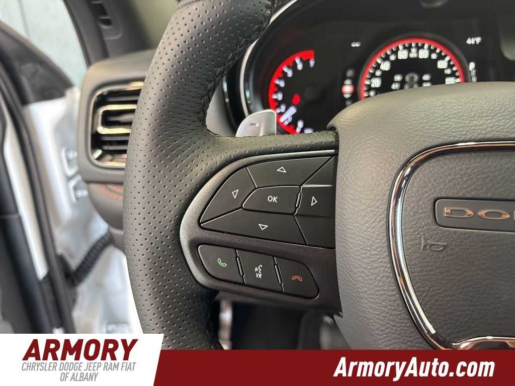 Durango GT is nicely equipped with Blacktop Package (Black Roof Rails, Gloss Black Badges, GT Gloss Black Badging, Integrated Roof Rail Crossbars, Satin Black Dodge Tail Lamp Badge, and Wheels: 20 x 8 Black Noise Aluminum), Quick Order Package 2BD GT, 3.45 Rear Axle Ratio, 3rd row seats: split-bench, 4-Wheel Disc Brakes, 6 Speakers, ABS brakes, Air Conditioning, Alloy wheels, AM/FM radio: SiriusXM w/360L, Apple CarPlay/Android Auto, Auto-dimming Rear-View mirror, Automatic temperature control, Brake assist, Bumpers: body-color, Compass, Delay-off headlights, Driver door bin, Driver vanity mirror, Dual front impact airbags, Dual front side impact airbags, Electronic Stability Control, Emergency communication system: Dodge Connect, Four wheel independent suspension, Front anti-roll bar, Front Bucket Seats, Front Center Armrest w/Storage, Front dual zone A/C, Front License Plate Bracket, Front reading lights, Fully automatic headlights, Garage door transmitter, Gloss Black Exterior Mirrors, Heated door mirrors, Heated front seats, Heated steering wheel, Illuminated entry, Knee airbag, Leather steering wheel, Low tire pressure warning, MyFlexCare Service Plan, Navigation System, Occupant sensing airbag, Outside temperature display, Overhead airbag, Overhead console, Panic alarm, ParkView Rear Back-Up Camera, Passenger door bin, Passenger vanity mirror, Power door mirrors, Power driver seat, Power Liftgate, Power steering, Power windows, Radio data system, Rear air conditioning, Rear anti-roll bar, Rear reading lights, Rear seat center armrest, Rear window defroster, Rear window wiper, Red Accent Stitching, Remote keyless entry, Speed control, Speed-sensing steering, Speed-Sensitive Wipers, Split folding rear seat, Spoiler, Sport steering wheel, Steering wheel mounted audio controls, Tachometer, Telescoping steering wheel, Tilt steering wheel, Traction control, Trip computer, Variably intermittent wipers, Voltmeter, and Wheels: 20 x 8 Fine Silver. Price includes: $1000 - 2026 National Engine Retail Bonus Cash . Exp. 02/02/2026