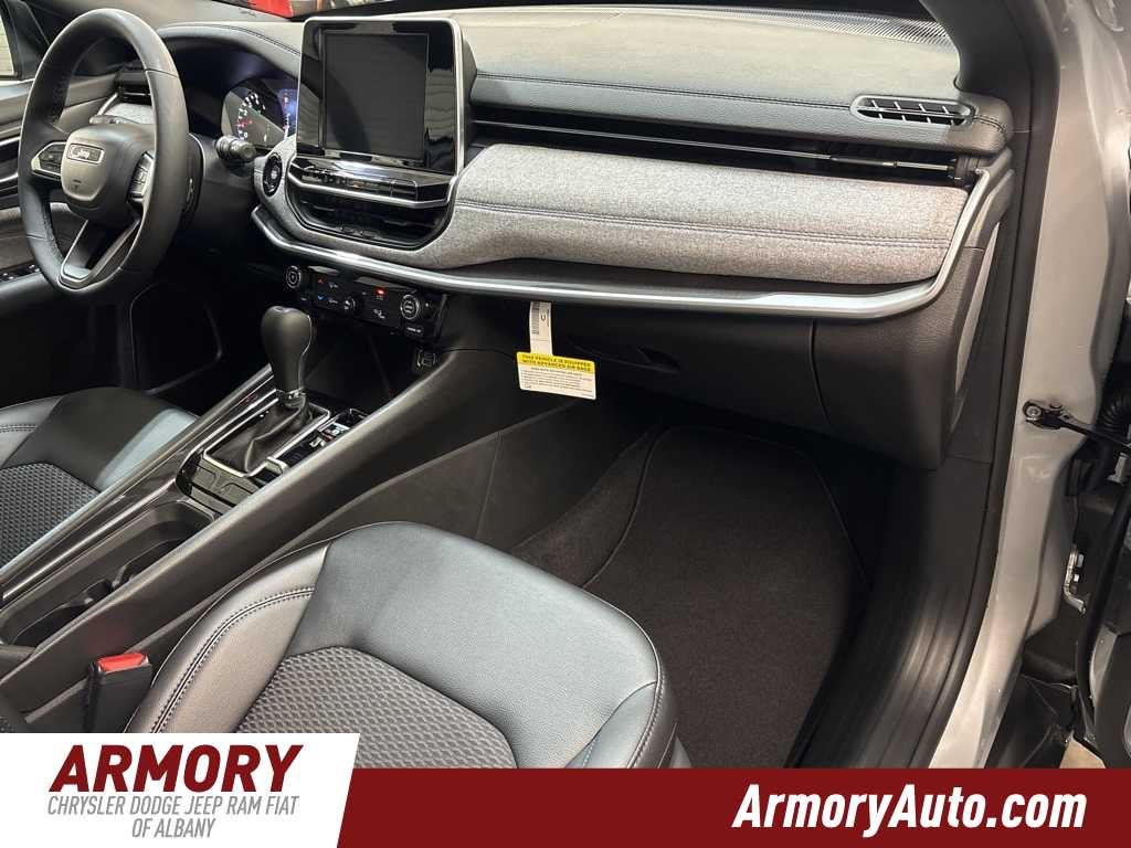 Compass Latitude is nicely equipped with Quick Order Package 29J Latitude, 17 x 7 Aluminum Wheels, 3.73 Final Drive Ratio, 4-Wheel Disc Brakes, 4G LTE Wi-Fi Hot Spot, 6 Speakers, ABS brakes, Air Conditioning, AM/FM radio: SiriusXM, Auto High-beam Headlights, Automatic temperature control, Bluetooth® Handsfree Phone and Audio, Brake assist, Bumpers: body-color, Compass, Delay-off headlights, Driver door bin, Driver vanity mirror, Dual front impact airbags, Dual front side impact airbags, Electronic Stability Control, Emergency communication system: SiriusXM Guardian, Four wheel independent suspension, Front anti-roll bar, Front Bucket Seats, Front Center Armrest w/Storage, Front fog lights, Front License Plate Bracket, Front reading lights, Fully automatic headlights, Global Telematics Box Module, Heated door mirrors, Heated front seats, Heated steering wheel, Illuminated entry, Knee airbag, Leather Shift Knob, Leather steering wheel, Low tire pressure warning, MyFlexCare Service Plan, Occupant sensing airbag, Outside temperature display, Overhead airbag, Overhead console, Panic alarm, ParkView Rear Back-Up Camera, Passenger door bin, Passenger vanity mirror, Power door mirrors, Power steering, Power windows, Premium audio system: UConnect 5, Premium Cloth/Vinyl Bucket Seats, Radio: Uconnect 5 with 8.4 Display, Rear anti-roll bar, Rear seat center armrest, Rear window defroster, Rear window wiper, Remote keyless entry, Security system, SiriusXM Satellite Radio, Speed control, Split folding rear seat, Spoiler, Steering wheel mounted audio controls, Tachometer, Telescoping steering wheel, Tilt steering wheel, Traction control, Trip computer, and Variably intermittent wipers.