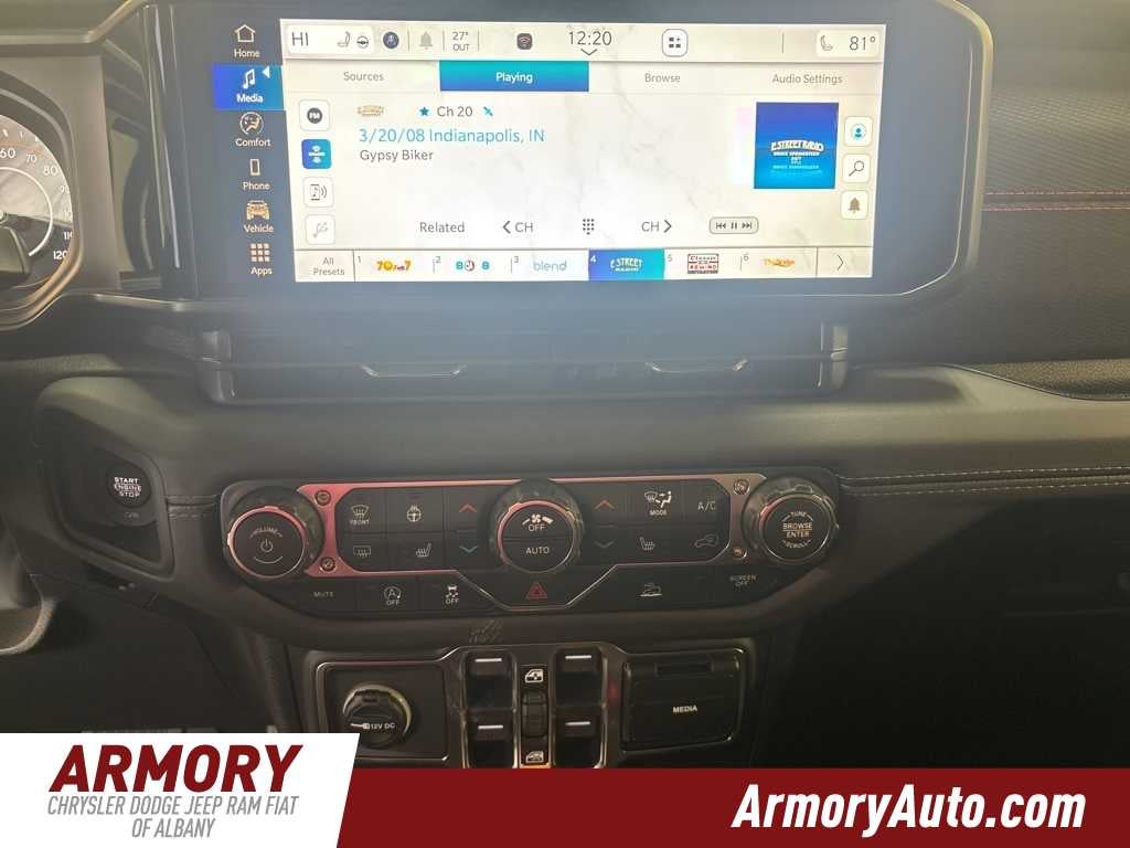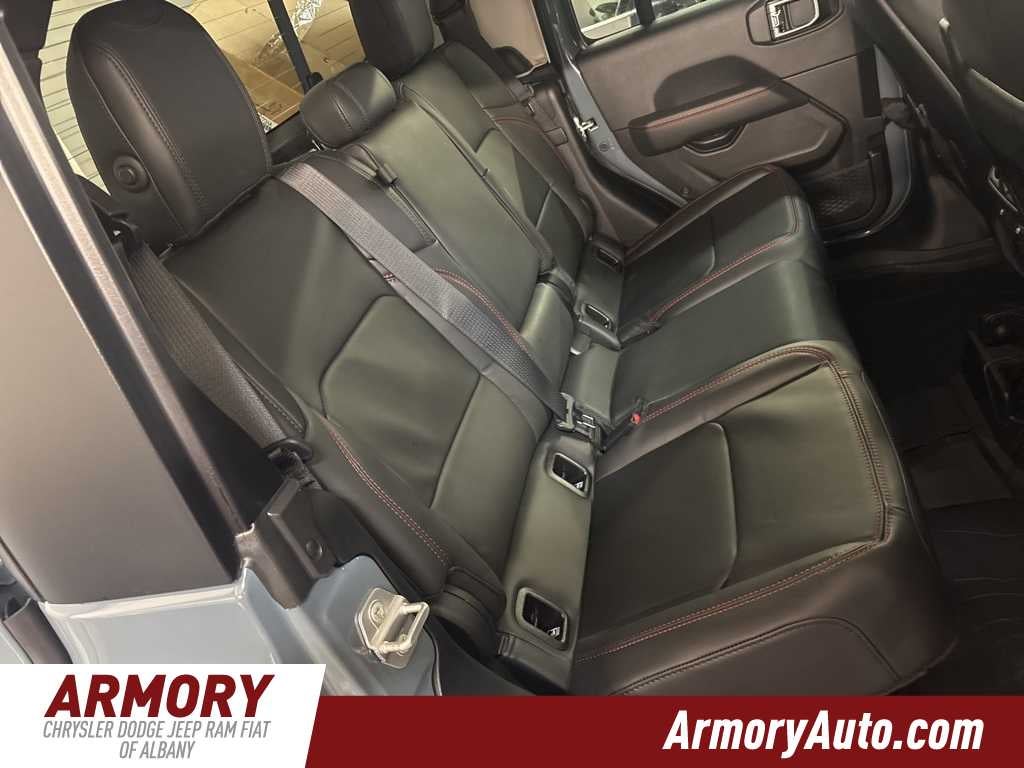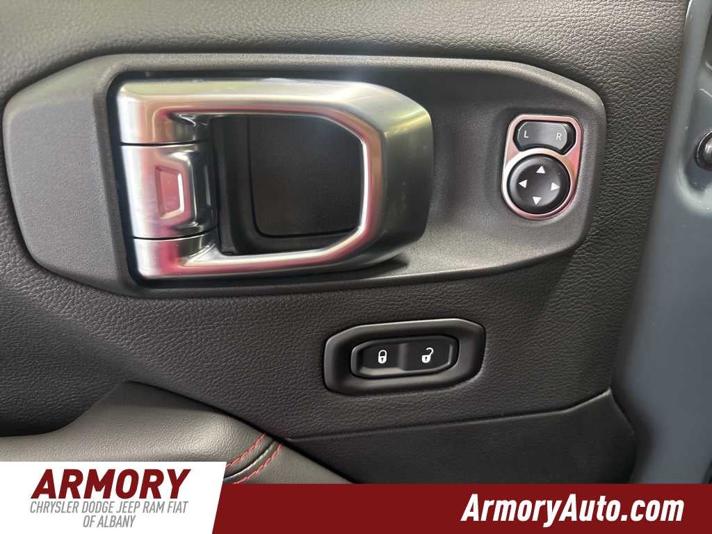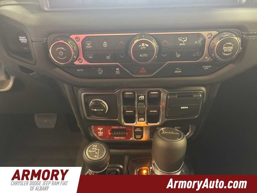 Gladiator Rubicon is nicely equipped with Convenience Group (Heated Front Seats, Heated Steering Wheel, Remote Start System, and Universal Garage Door Opener), Quick Order Package 24R Rubicon, Steel Bumper Group (Steel Front Bumper), Steel Power Dome Hood Package (Power Dome Dual Vented Hood), 110 Mph Vehicle Max Speed Calibration, 12.3 Touchscreen Display, 4-Wheel Disc Brakes, 4.10 Rear Axle Ratio, 4G LTE Wi-Fi Hot Spot, 8 Speakers, ABS brakes, Air Conditioning, Alexa Built-in, Alloy wheels, Alpine Premium Audio System, AM/FM radio: SiriusXM with 360L, Apple CarPlay, Apple CarPlay/Android Auto, Automatic temperature control, Black 3-Piece Hard Top, Body Color Rubicon Highline Flare, Brake assist, Cloth Low-Back Bucket Seats, Compass, Connectivity - US/Canada, Delay-off headlights, Driver door bin, Driver vanity mirror, Dual front impact airbags, Dual front side impact airbags, Electronic Stability Control, Emergency communication system: Jeep Connect, Freedom Panel Storage Bag, Front anti-roll bar, Front Bucket Seats, Front Center Armrest w/Storage, Front dual zone A/C, Front fog lights, Front License Plate Bracket, Front reading lights, Fully automatic headlights, Google Android Auto, Heated door mirrors, Illuminated entry, Integrated roll-over protection, Jeep Trail Rated Kit, Low tire pressure warning, Manufacturers Statement of Origin, MOPAR All-Weather Slush Mats, MOPAR Doors Off Mirror Kit, MOPAR Hard Tri-Fold Tonneau Cover, MOPAR Satin Black Grille with Satin Black Ring, MOPAR Spray in Bedliner, MyFlexCare Service Plan, Occupant sensing airbag, Outside temperature display, Overhead airbag, Panic alarm, Passenger door bin, Passenger vanity mirror, Performance Suspension, Power door mirrors, Power steering, Power windows, Radio data system, Radio: Uconnect 5 with 12.3 Display, Rear anti-roll bar, Rear reading lights, Rear Sliding Window, Rear Window Defroster, Remote keyless entry, Security system, Speed control, Split folding rear seat, Steering wheel mounted audio controls, Tachometer, Telescoping steering wheel, Tilt steering wheel, Traction control, Trip computer, USB Host Flip, Variably intermittent wipers, Voltmeter, Wheels: 17 x 7.5 Machined with Black Pockets, and Wheels: 17 x 7.5 Machined/Painted Black.