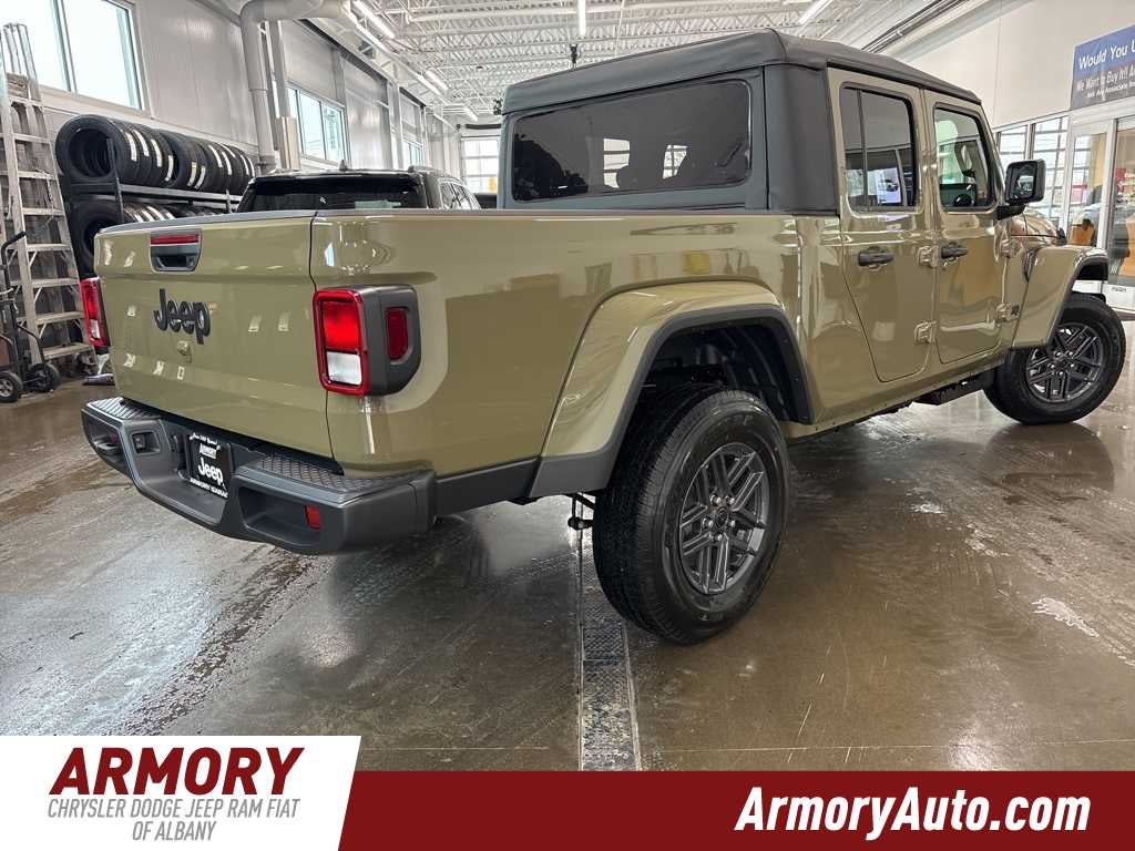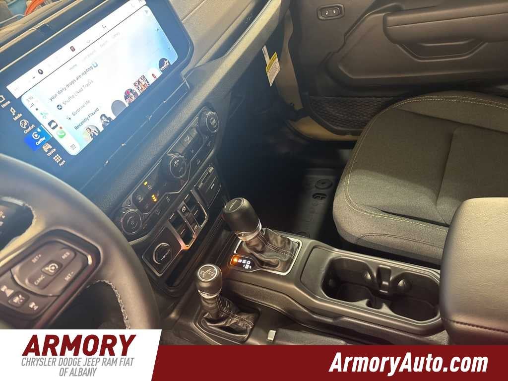 Gladiator Sport S is nicely equipped with Convenience Group (Air Conditioning with Auto Temp Control, Cluster 7.0 TFT Color Display, Corning Gorilla Glass, Daytime Running Lamp System, Emergency/Assistance Call, Front Door Locks 2-Door Passive Entry, Heated Front Seats, Heated Steering Wheel, Remote Start System, and Universal Garage Door Opener), Dark Sky Appearance Package (2-Piece Body Color Fender Flares, Mold in Color Bumper with Gloss Black, and Performance Hood), Quick Order Package 24S Sport S (Advanced Brake Assist, Automatic Headlamps, Deep Tint Sunscreen Windows, Full Speed Forward Collision Warning Plus, Normal Duty Plus Suspension, Power Heated Mirrors, Premium Wrapped Steering Wheel, Security Alarm, Sun Visors with Illuminated Vanity Mirrors, and Wheels: 17 x 7.5 Gray), 110 Mph Vehicle Max Speed Calibration, 12.3 Touchscreen Display, 3.73 Rear Axle Ratio, 4-Wheel Disc Brakes, 4G LTE Wi-Fi Hot Spot, 8 Speakers, ABS brakes, Air Conditioning, Alexa Built-in, AM/FM radio: SiriusXM with 360L, Apple CarPlay, Apple CarPlay/Android Auto, Brake assist, Compass, Connectivity - US/Canada, Delay-off headlights, Driver door bin, Driver vanity mirror, Dual front impact airbags, Dual front side impact airbags, Electronic Stability Control, Front anti-roll bar, Front Bucket Seats, Front Center Armrest w/Storage, Front fog lights, Front License Plate Bracket, Front reading lights, Google Android Auto, Illuminated entry, Integrated roll-over protection, Low tire pressure warning, MOPAR All-Weather Slush Mats, MOPAR Spray in Bedliner, MyFlexCare Service Plan, Normal Duty Suspension, Occupant sensing airbag, Outside temperature display, Overhead airbag, Panic alarm, ParkView Rear Back-Up Camera, Passenger door bin, Passenger vanity mirror, Power steering, Power windows, Radio data system, Radio: Uconnect 5 with 12.3 Display, Rear anti-roll bar, Rear reading lights, Remote keyless entry, Speed control, Split folding rear seat, Steering wheel mounted audio controls, Tachometer, Telescoping steering wheel, Tilt steering wheel, Traction control, Trip computer, USB Host Flip, Variably intermittent wipers, Voltmeter, and Wheels: 17 x 7.5 Black Steel Styled.