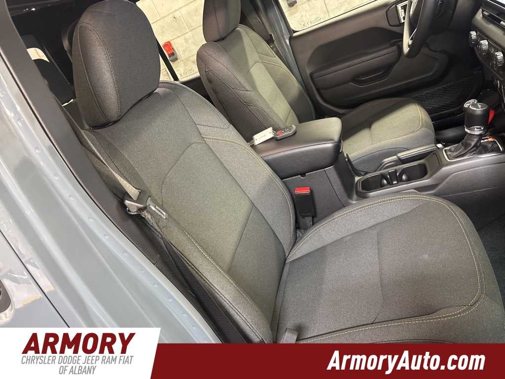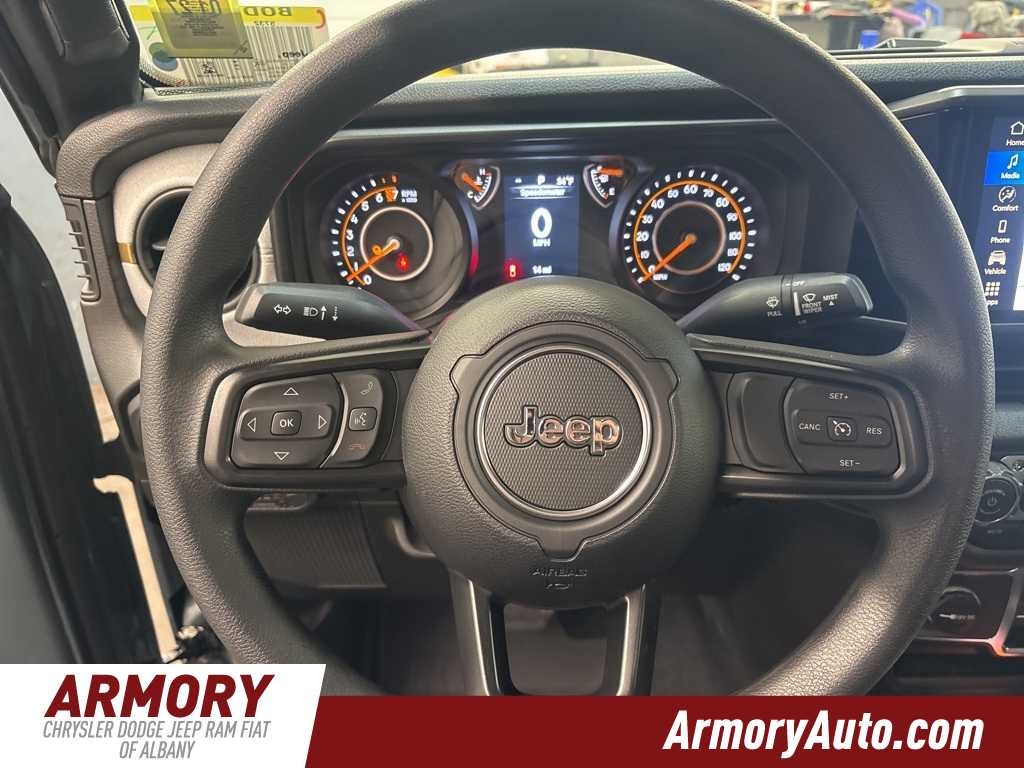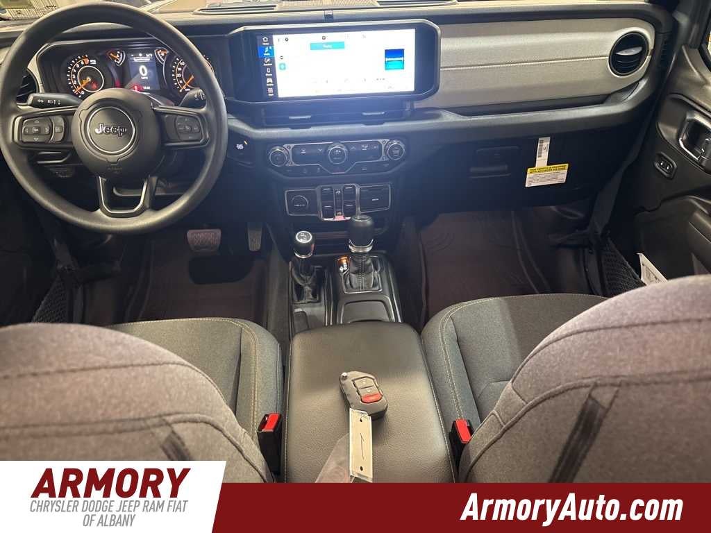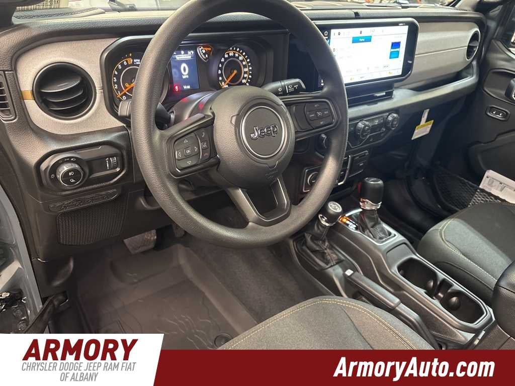 Gladiator Sport is nicely equipped with Quick Order Package 24B Sport, 110 Mph Vehicle Max Speed Calibration, 12.3 Touchscreen Display, 3.73 Rear Axle Ratio, 4-Wheel Disc Brakes, 4G LTE Wi-Fi Hot Spot, 8 Speakers, ABS brakes, Air Conditioning, Alexa Built-in, AM/FM radio: SiriusXM with 360L, Apple CarPlay, Apple CarPlay/Android Auto, Brake assist, Compass, Connectivity - US/Canada, Delay-off headlights, Driver door bin, Driver vanity mirror, Dual front impact airbags, Dual front side impact airbags, Electronic Stability Control, Front anti-roll bar, Front Bucket Seats, Front Center Armrest w/Storage, Front fog lights, Front License Plate Bracket, Front reading lights, Google Android Auto, Illuminated entry, Integrated roll-over protection, Low tire pressure warning, Manufacturers Statement of Origin, MOPAR All-Weather Slush Mats, MOPAR Spray in Bedliner, MyFlexCare Service Plan, Normal Duty Suspension, Occupant sensing airbag, Outside temperature display, Overhead airbag, Panic alarm, ParkView Rear Back-Up Camera, Passenger door bin, Passenger vanity mirror, Power steering, Power windows, Radio data system, Radio: Uconnect 5 with 12.3 Display, Rear anti-roll bar, Rear reading lights, Remote keyless entry, Speed control, Split folding rear seat, Steering wheel mounted audio controls, Tachometer, Telescoping steering wheel, Tilt steering wheel, Traction control, Trip computer, USB Host Flip, Variably intermittent wipers, Voltmeter, and Wheels: 17 x 7.5 Black Steel Styled.
