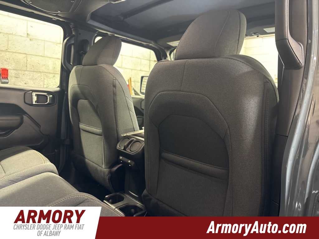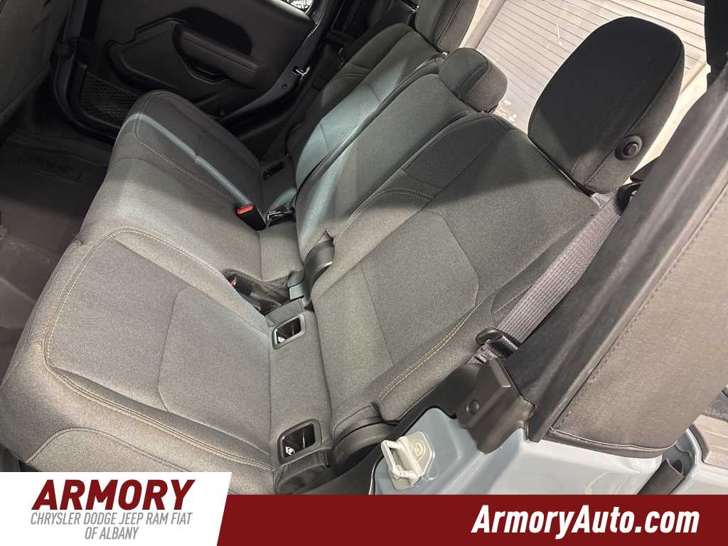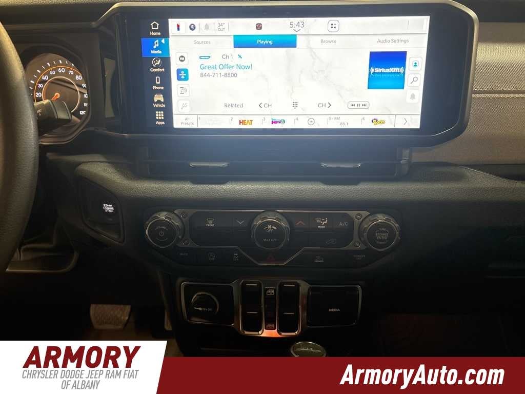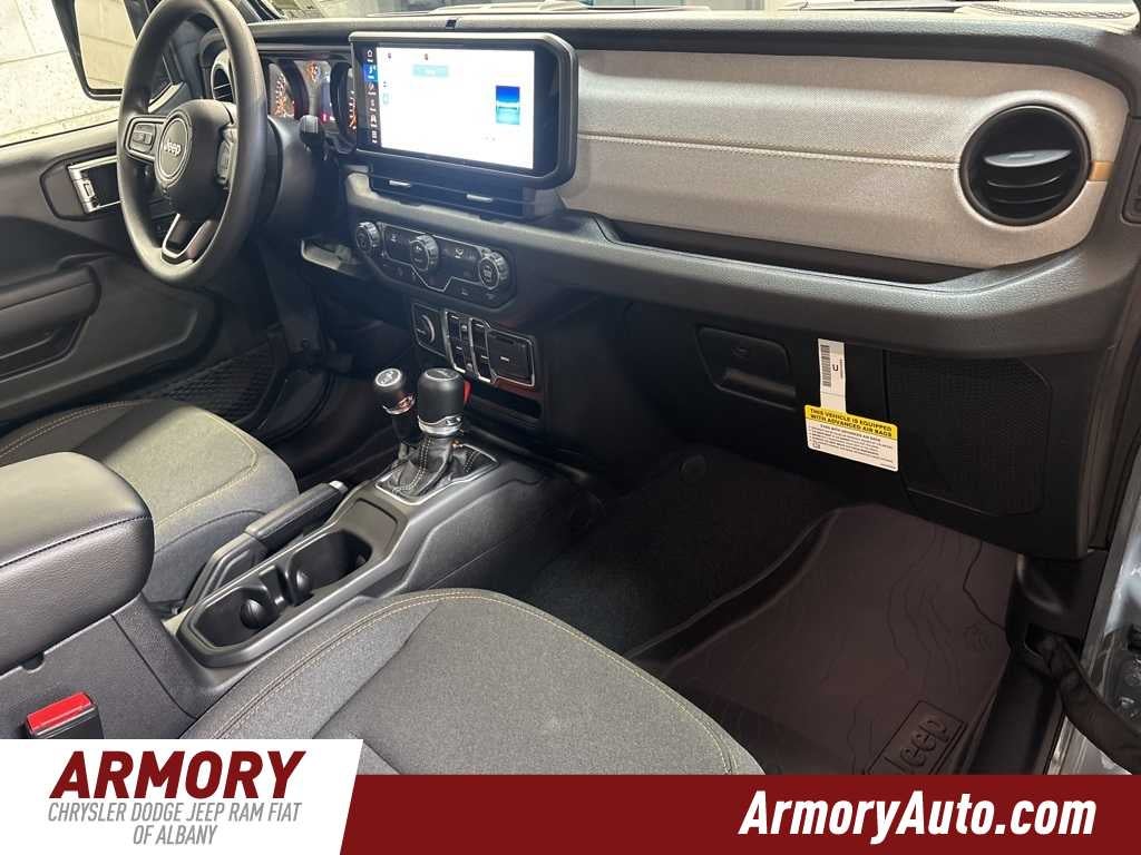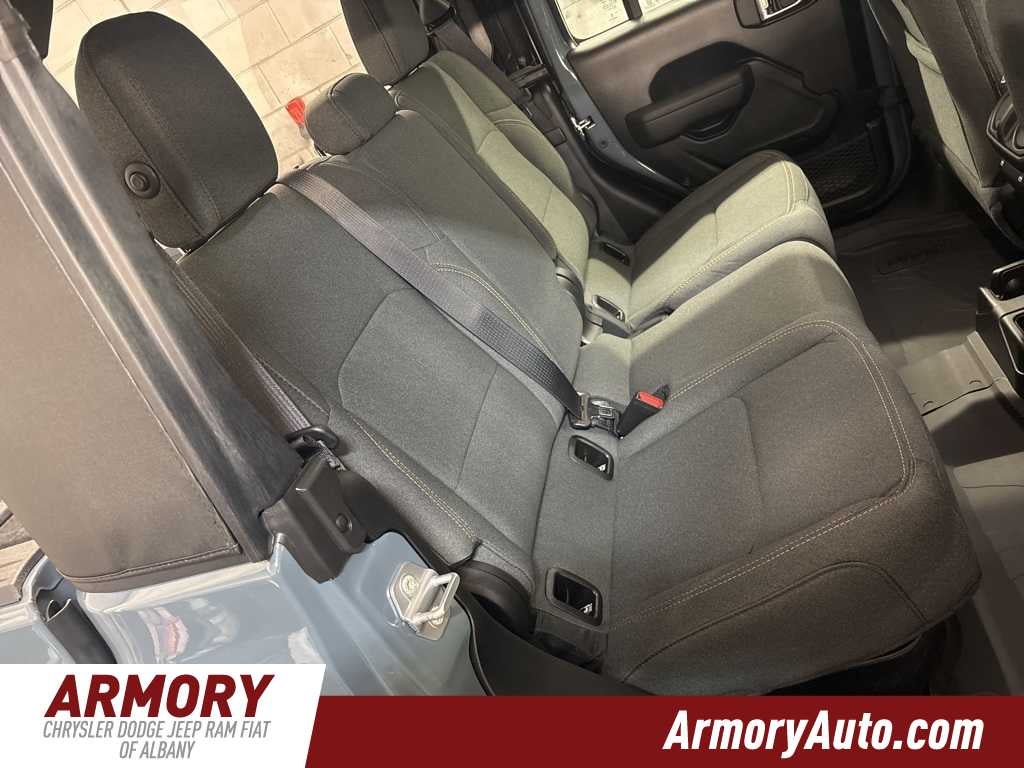 Gladiator Sport is nicely equipped with Quick Order Package 24B Sport, 110 Mph Vehicle Max Speed Calibration, 12.3 Touchscreen Display, 3.73 Rear Axle Ratio, 4-Wheel Disc Brakes, 4G LTE Wi-Fi Hot Spot, 8 Speakers, ABS brakes, Air Conditioning, Alexa Built-in, AM/FM radio: SiriusXM with 360L, Apple CarPlay, Apple CarPlay/Android Auto, Brake assist, Compass, Connectivity - US/Canada, Delay-off headlights, Driver door bin, Driver vanity mirror, Dual front impact airbags, Dual front side impact airbags, Electronic Stability Control, Front anti-roll bar, Front Bucket Seats, Front Center Armrest w/Storage, Front fog lights, Front License Plate Bracket, Front reading lights, Google Android Auto, Illuminated entry, Integrated roll-over protection, Low tire pressure warning, Manufacturers Statement of Origin, MOPAR All-Weather Slush Mats, MOPAR Spray in Bedliner, MyFlexCare Service Plan, Normal Duty Suspension, Occupant sensing airbag, Outside temperature display, Overhead airbag, Panic alarm, ParkView Rear Back-Up Camera, Passenger door bin, Passenger vanity mirror, Power steering, Power windows, Radio data system, Radio: Uconnect 5 with 12.3 Display, Rear anti-roll bar, Rear reading lights, Remote keyless entry, Speed control, Split folding rear seat, Steering wheel mounted audio controls, Tachometer, Telescoping steering wheel, Tilt steering wheel, Traction control, Trip computer, USB Host Flip, Variably intermittent wipers, Voltmeter, and Wheels: 17 x 7.5 Black Steel Styled.