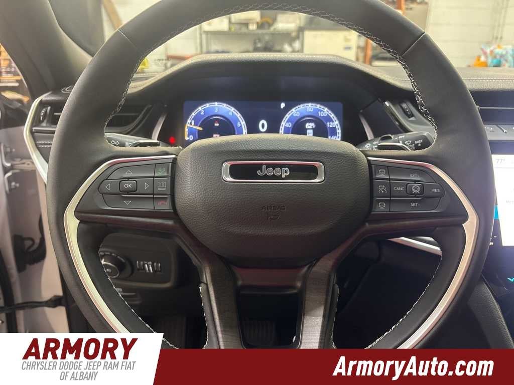 Grand Cherokee Limited is nicely equipped with Luxury Tech Group II (Auto-Dimming Exterior Driver Mirror, Capri Leatherette with Axis II Seats, Integrated Off-Road Camera, Memory Steering Column, ParkSense Front/Rear Park Assist with Stop, Passive Entry - Front/Rear Doors, Liftgate, Power Tilt/Telescope Steering Column, Rain Sensitive Windshield Wipers, Rear Back-Up Camera Washer, Rearview Autodim Digital Display Mirror, Side Distance Warning, Surround View Camera System, and Wireless Charging Pad), Quick Order Package 2CE Limited, 10 Speakers, 3.70 Rear Axle Ratio, 4-Wheel Disc Brakes, 4G LTE Wi-Fi Hot Spot, ABS brakes, Active Noise Control System, Air Conditioning, Alloy wheels, AM/FM radio: SiriusXM with 360L, Anti-whiplash front head restraints, Apple CarPlay, AppLink/Apple CarPlay and Android Auto, Audio memory, Auto High-beam Headlights, Automatic temperature control, Auxiliary Battery, Brake assist, Bumpers: body-color, Capri Leatherette Seats, Compass, Connectivity - US/Canada, Delay-off headlights, Disassociated Touchscreen Display, Driver door bin, Driver vanity mirror, Dual front impact airbags, Dual front side impact airbags, Dual-Pane Panoramic Sunroof, Electronic Stability Control, Emergency communication system, For Details, Visit DriveUconnect.com, Four wheel independent suspension, Front anti-roll bar, Front Bucket Seats, Front Center Armrest w/Storage, Front dual zone A/C, Front fog lights, Front License Plate Bracket, Front reading lights, Fully automatic headlights, Garage door transmitter, Global Telematics Box Module (TBM), Gloss Black Exterior Mirrors, Google Android Auto, GPS Antenna Input, Heated door mirrors, Heated Exterior Mirrors, Heated front seats, Heated rear seats, Heated steering wheel, Illuminated entry, Integrated Center Stack Radio, Integrated Voice Command with Bluetooth®, Knee airbag, Low tire pressure warning, Manual Folding Exterior Mirrors, Memory seat, MyFlexCare Service Plan, Navigation System, Normal Duty Suspension, Occupant sensing airbag, Outside temperature display, Overhead airbag, Overhead console, Panic alarm, ParkView Rear Back-Up Camera, Passenger door bin, Passenger vanity mirror, Power door mirrors, Power driver seat, Power Liftgate, Power passenger seat, Power steering, Power windows, Radio data system, Radio: Uconnect 5 Nav with 12.3 Display, Rear anti-roll bar, Rear reading lights, Rear window defroster, Rear window wiper, Remote keyless entry, Security system, Speed control, Speed-Sensitive Wipers, Split folding rear seat, Spoiler, Steering wheel mounted audio controls, Tachometer, Telescoping steering wheel, Tilt steering wheel, Traction control, Trip computer, Turn signal indicator mirrors, USB Host Flip, Variably intermittent wipers, Voltmeter, Wheels: 18 x 8.0 Polished/Painted Aluminum, and Wheels: 20 x 8.5 Machined/Painted AluminuM.