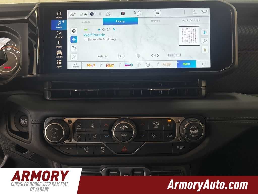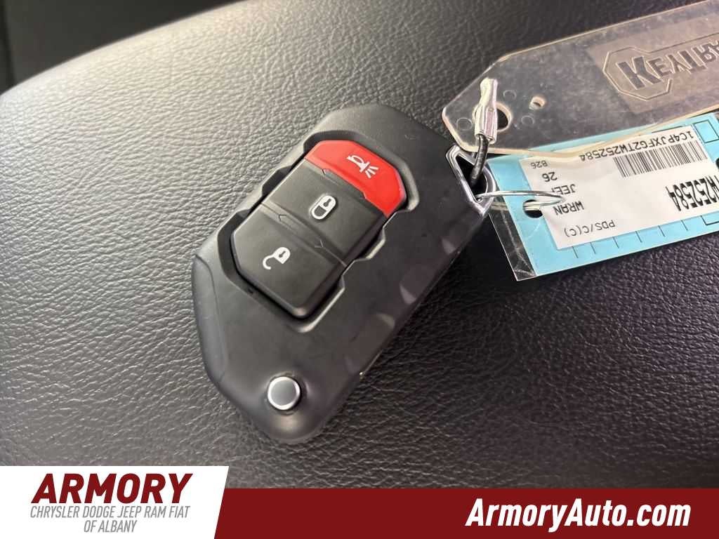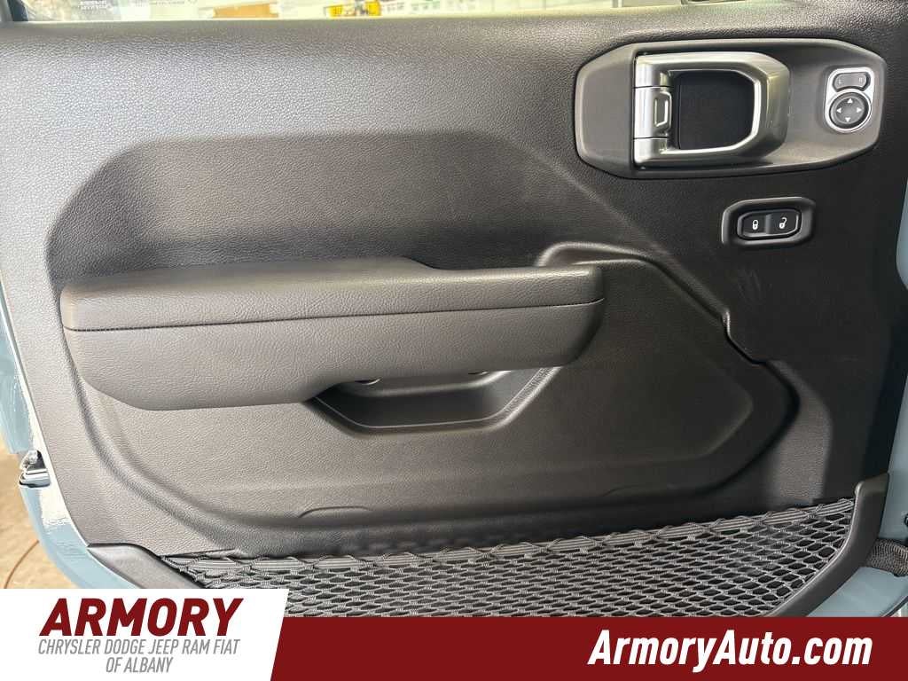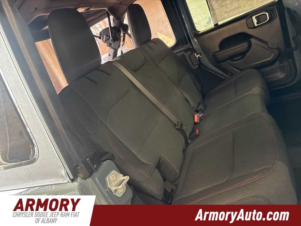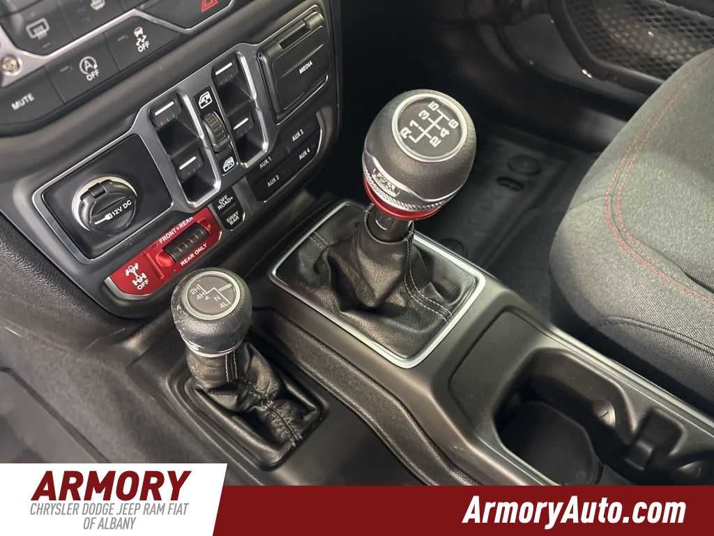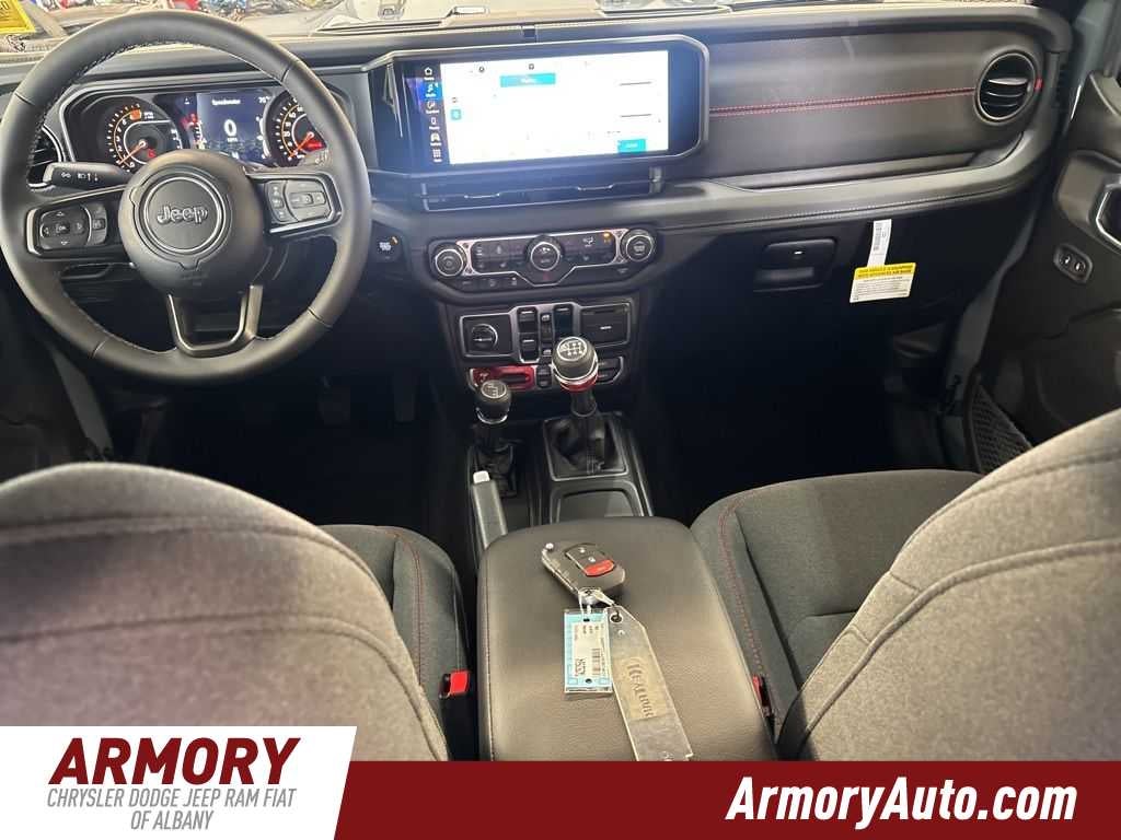 Wrangler Rubicon is nicely equipped with Convenience Group (Heated Front Seats, Heated Steering Wheel, and Universal Garage Door Opener), Quick Order Package 23R Rubicon, Steel Performance Hood Package (Performance Hood), 12.3 Touchscreen Display, 4-Wheel Disc Brakes, 4.10 Rear Axle Ratio, 4G LTE Wi-Fi Hot Spot, 8 Speakers, ABS brakes, Air Conditioning, Alloy wheels, Alpine Premium Audio System, AM/FM radio: SiriusXM with 360L, Apple CarPlay, Apple CarPlay/Android Auto, Automatic temperature control, Aux Battery, Auxiliary Switches, Brake assist, Class II Receiver Hitch, Cloth Low-Back Bucket Seats, Compass, Connectivity - US/Canada, Delay-off headlights, Driver door bin, Driver vanity mirror, Dual front impact airbags, Dual front side impact airbags, Electronic Stability Control, Emergency communication system: Jeep Connect, For More Info, Call 800-643-2112, Front anti-roll bar, Front Bucket Seats, Front Center Armrest w/Storage, Front dual zone A/C, Front fog lights, Front License Plate Bracket, Front reading lights, Fully automatic headlights, Google Android Auto, Heated door mirrors, Illuminated entry, Integrated Center Stack Radio, Integrated roll-over protection, Jeep Trail Rated Kit, Low tire pressure warning, MOPAR All-Weather Floor Mats, Myflexcare Service Plan, Non-Lock Fuel Cap Without Discriminator, Occupant sensing airbag, Outside temperature display, Overhead airbag, Panic alarm, ParkView Rear Back-Up Camera, Passenger door bin, Passenger vanity mirror, Performance Suspension, Power door mirrors, Power steering, Power windows, Radio data system, Radio: Uconnect 5 with 12.3 Display, Rear anti-roll bar, Rear reading lights, Remote keyless entry, Security system, SiriusXM Radio Service, SiriusXM with 360L, Speed control, Split folding rear seat, Steering wheel mounted audio controls, Stop-Start Dual Battery System, Tachometer, Telescoping steering wheel, Tilt steering wheel, Traction control, Trip computer, Variably intermittent wipers, Voltmeter, and Wheels: 17 x 7.5 Machined/Painted Black.
