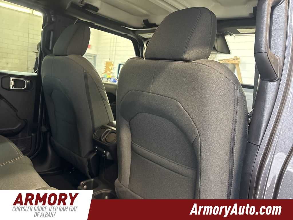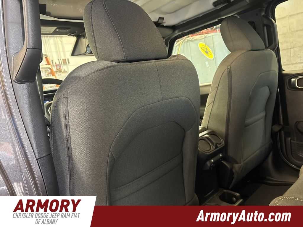 Wrangler Sport S is nicely equipped with Convenience Group (2-Door Passive Entry, Front Door Locks, Air Conditioning with Auto Temp Control, Air Filtering, Cluster 7.0 TFT Color Display, Emergency/Assistance Call, Heated Front Seats, Heated Steering Wheel, and Universal Garage Door Opener), LED Headlamp and Fog Lamp Group (Front LED Fog Lamps and LED Premium Reflector Headlamps), Quick Order Package 24S Sport S (Advanced Brake Assist, Automatic Headlamps, Corning Gorilla Glass, Deep Tint Sunscreen Windows, Enhanced Adaptive Cruise Control, Full Speed Forward Collision Warning Plus, Power Heated Mirrors, Premium Wrapped Steering Wheel, Security Alarm, Sun Visors with Illuminated Vanity Mirrors, and Wheels: 17 x 7.5 Gray), 12.3 Touchscreen Display, 3.45 Overall Top Gear Ratio, 4-Wheel Disc Brakes, 4G LTE Wi-Fi Hot Spot, 8 Speakers, ABS brakes, Air Conditioning, AM/FM radio: SiriusXM with 360L, Apple CarPlay, Apple CarPlay/Android Auto, Aux Battery, Black 3-Piece Hard Top, Brake assist, Compass, Connectivity - US/Canada, Delay-off headlights, Driver door bin, Driver vanity mirror, Dual front impact airbags, Dual front side impact airbags, Electronic Stability Control, For More Info, Call 800-643-2112, Freedom Panel Storage Bag, Front anti-roll bar, Front Bucket Seats, Front Center Armrest w/Storage, Front fog lights, Front reading lights, Google Android Auto, Illuminated entry, Integrated Center Stack Radio, Integrated roll-over protection, Low tire pressure warning, Manufacture Statement of Origin, Myflexcare Service Plan, No Soft Top, Non-Lock Fuel Cap Without Discriminator, Normal Duty Suspension, Occupant sensing airbag, Outside temperature display, Overhead airbag, Panic alarm, ParkView Rear Back-Up Camera, Passenger door bin, Passenger vanity mirror, Power steering, Power windows, Radio data system, Radio: Uconnect 5 with 12.3 Display, Rear anti-roll bar, Rear reading lights, Rear Window Defroster, Rear Window Wiper/Washer, Remote keyless entry, SiriusXM Radio Service, SiriusXM with 360L, Speed control, Split folding rear seat, Steering wheel mounted audio controls, Stop-Start Dual Battery System, Tachometer, Telescoping steering wheel, Tilt steering wheel, Traction control, Trip computer, Variably intermittent wipers, and Wheels: 17 x 7.5 Black Steel Styled.