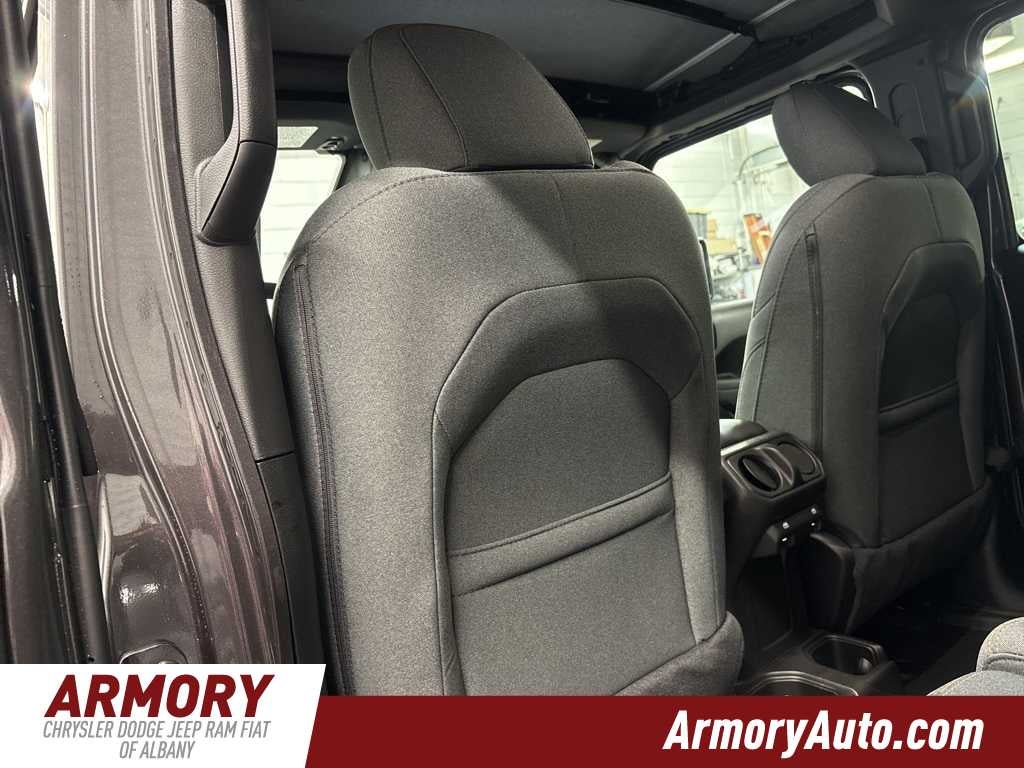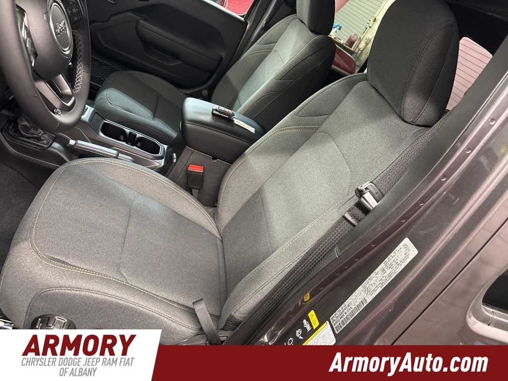 Wrangler Sport S is nicely equipped with Quick Order Package 24S Sport S (Advanced Brake Assist, Automatic Headlamps, Corning Gorilla Glass, Deep Tint Sunscreen Windows, Enhanced Adaptive Cruise Control, Full Speed Forward Collision Warning Plus, Power Heated Mirrors, Premium Wrapped Steering Wheel, Security Alarm, Sun Visors with Illuminated Vanity Mirrors, and Wheels: 17 x 7.5 Gray), 12.3 Touchscreen Display, 3.45 Overall Top Gear Ratio, 4-Wheel Disc Brakes, 4G LTE Wi-Fi Hot Spot, 8 Speakers, ABS brakes, Air Conditioning, AM/FM radio: SiriusXM with 360L, Apple CarPlay, Apple CarPlay/Android Auto, Aux Battery, Brake assist, Compass, Connectivity - US/Canada, Delay-off headlights, Driver door bin, Driver vanity mirror, Dual front impact airbags, Dual front side impact airbags, Electronic Stability Control, For More Info, Call 800-643-2112, Front anti-roll bar, Front Bucket Seats, Front Center Armrest w/Storage, Front fog lights, Front reading lights, Google Android Auto, Illuminated entry, Integrated Center Stack Radio, Integrated roll-over protection, Jeep Trail Rated Kit, Low tire pressure warning, MOPAR All-Weather Floor Mats, Myflexcare Service Plan, Non-Lock Fuel Cap Without Discriminator, Normal Duty Suspension, Occupant sensing airbag, Outside temperature display, Overhead airbag, Panic alarm, ParkView Rear Back-Up Camera, Passenger door bin, Passenger vanity mirror, Power steering, Power windows, Radio data system, Radio: Uconnect 5 with 12.3 Display, Rear anti-roll bar, Rear reading lights, Remote keyless entry, SiriusXM Radio Service, SiriusXM with 360L, Speed control, Split folding rear seat, Steering wheel mounted audio controls, Stop-Start Dual Battery System, Tachometer, Telescoping steering wheel, Tilt steering wheel, Traction control, Trip computer, Variably intermittent wipers, and Wheels: 17 x 7.5 Black Steel Styled.