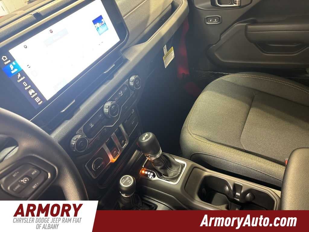 Wrangler Sport is nicely equipped with Quick Order Package 22B Sport, 12.3 Touchscreen Display, 3.45 Overall Top Gear Ratio, 4-Wheel Disc Brakes, 4G LTE Wi-Fi Hot Spot, 8 Speakers, ABS brakes, Air Conditioning, AM/FM radio: SiriusXM with 360L, Apple CarPlay, Apple CarPlay/Android Auto, Aux Battery, Brake assist, Cloth Low-Back Bucket Seats, Compass, Connectivity - US/Canada, Delay-off headlights, Driver door bin, Driver vanity mirror, Dual front impact airbags, Dual front side impact airbags, Electronic Stability Control, For More Info, Call 800-643-2112, Front anti-roll bar, Front Bucket Seats, Front Center Armrest w/Storage, Front fog lights, Front reading lights, Google Android Auto, Illuminated entry, Integrated Center Stack Radio, Integrated roll-over protection, Jeep Trail Rated Kit, Low tire pressure warning, MOPAR All-Weather Floor Mats, Myflexcare Service Plan, Non-Lock Fuel Cap Without Discriminator, Normal Duty Suspension, Occupant sensing airbag, Outside temperature display, Overhead airbag, Panic alarm, ParkView Rear Back-Up Camera, Passenger door bin, Passenger vanity mirror, Power steering, Power windows, Radio data system, Radio: Uconnect 5 with 12.3 Display, Rear anti-roll bar, Rear reading lights, Remote keyless entry, SiriusXM Radio Service, SiriusXM with 360L, Speed control, Steering wheel mounted audio controls, Stop-Start Dual Battery System, Tachometer, Telescoping steering wheel, Tilt steering wheel, Traction control, Trip computer, Variably intermittent wipers, and Wheels: 17 x 7.5 Black Steel Styled.