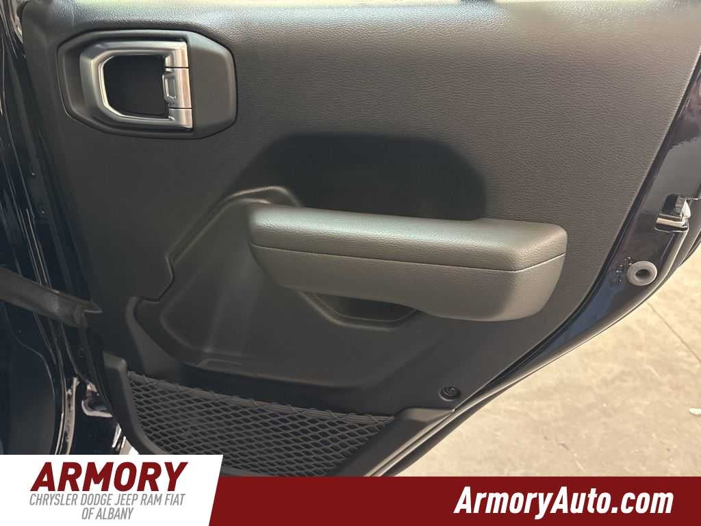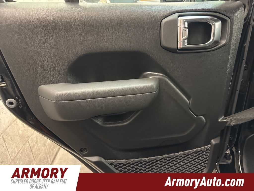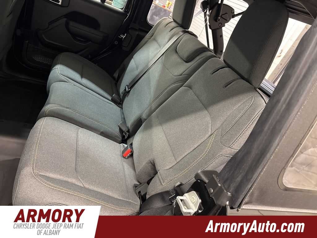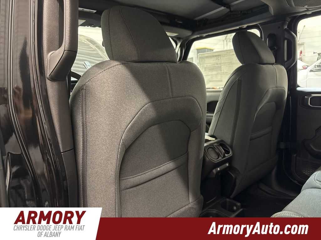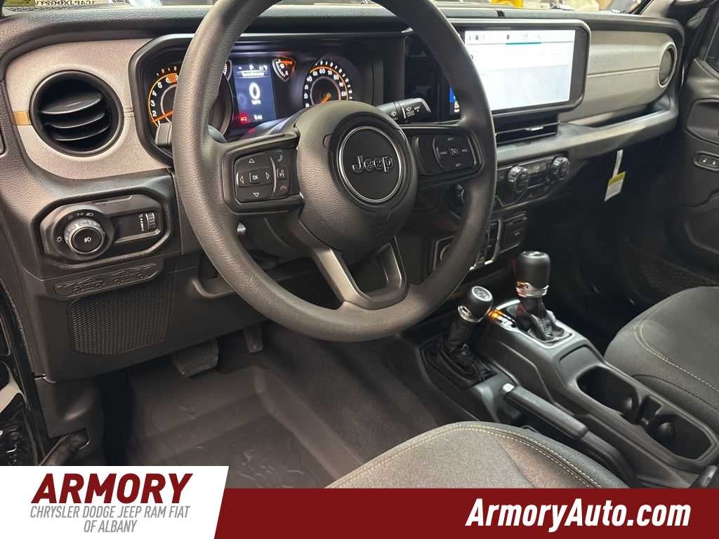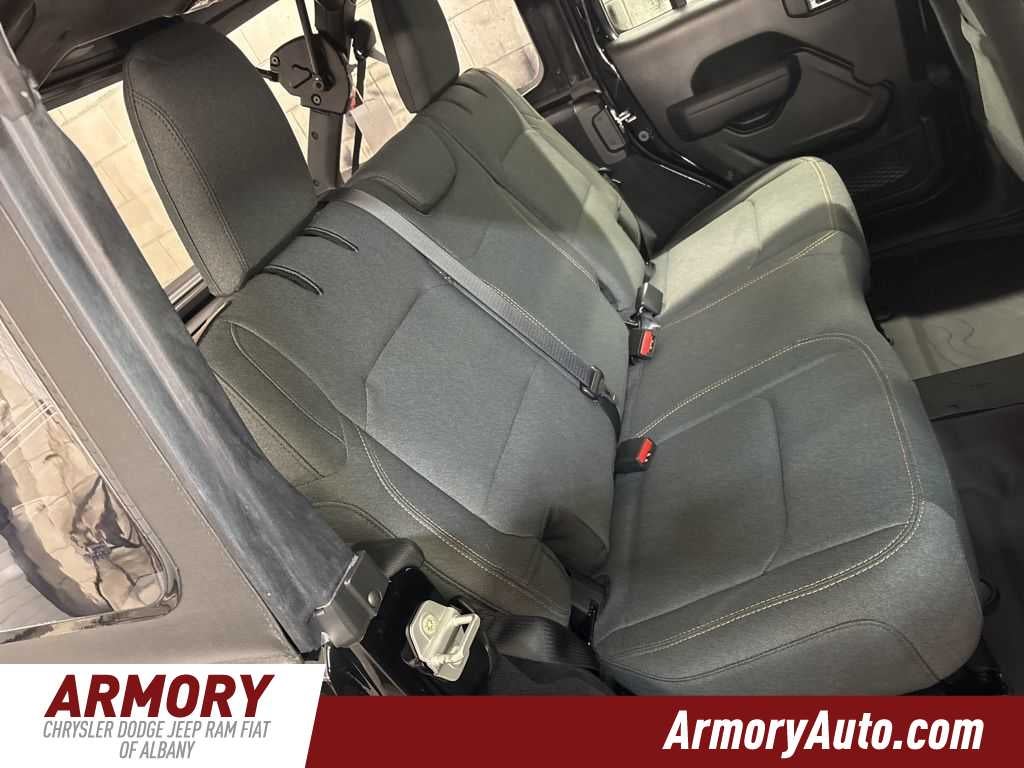 Wrangler Sport is nicely equipped with Quick Order Package 24B Sport, 12.3 Touchscreen Display, 3.45 Overall Top Gear Ratio, 4-Wheel Disc Brakes, 4G LTE Wi-Fi Hot Spot, 8 Speakers, ABS brakes, Air Conditioning, AM/FM radio: SiriusXM with 360L, Apple CarPlay, Apple CarPlay/Android Auto, Aux Battery, Brake assist, Compass, Connectivity - US/Canada, Delay-off headlights, Driver door bin, Driver vanity mirror, Dual front impact airbags, Dual front side impact airbags, Electronic Stability Control, For More Info, Call 800-643-2112, Front anti-roll bar, Front Bucket Seats, Front Center Armrest w/Storage, Front fog lights, Front reading lights, Google Android Auto, Illuminated entry, Integrated Center Stack Radio, Integrated roll-over protection, Jeep Trail Rated Kit, Low tire pressure warning, Manufacture Statement of Origin, MOPAR All-Weather Floor Mats, Myflexcare Service Plan, Non-Lock Fuel Cap Without Discriminator, Normal Duty Suspension, Occupant sensing airbag, Outside temperature display, Overhead airbag, Panic alarm, ParkView Rear Back-Up Camera, Passenger door bin, Passenger vanity mirror, Power steering, Power windows, Radio data system, Radio: Uconnect 5 with 12.3 Display, Rear anti-roll bar, Rear reading lights, Remote keyless entry, SiriusXM Radio Service, SiriusXM with 360L, Speed control, Split folding rear seat, Steering wheel mounted audio controls, Stop-Start Dual Battery System, Tachometer, Telescoping steering wheel, Tilt steering wheel, Traction control, Trip computer, Variably intermittent wipers, and Wheels: 17 x 7.5 Black Steel Styled.