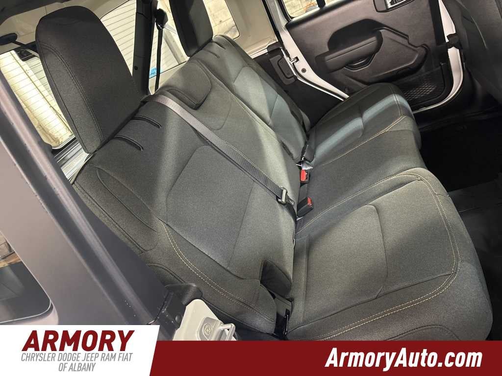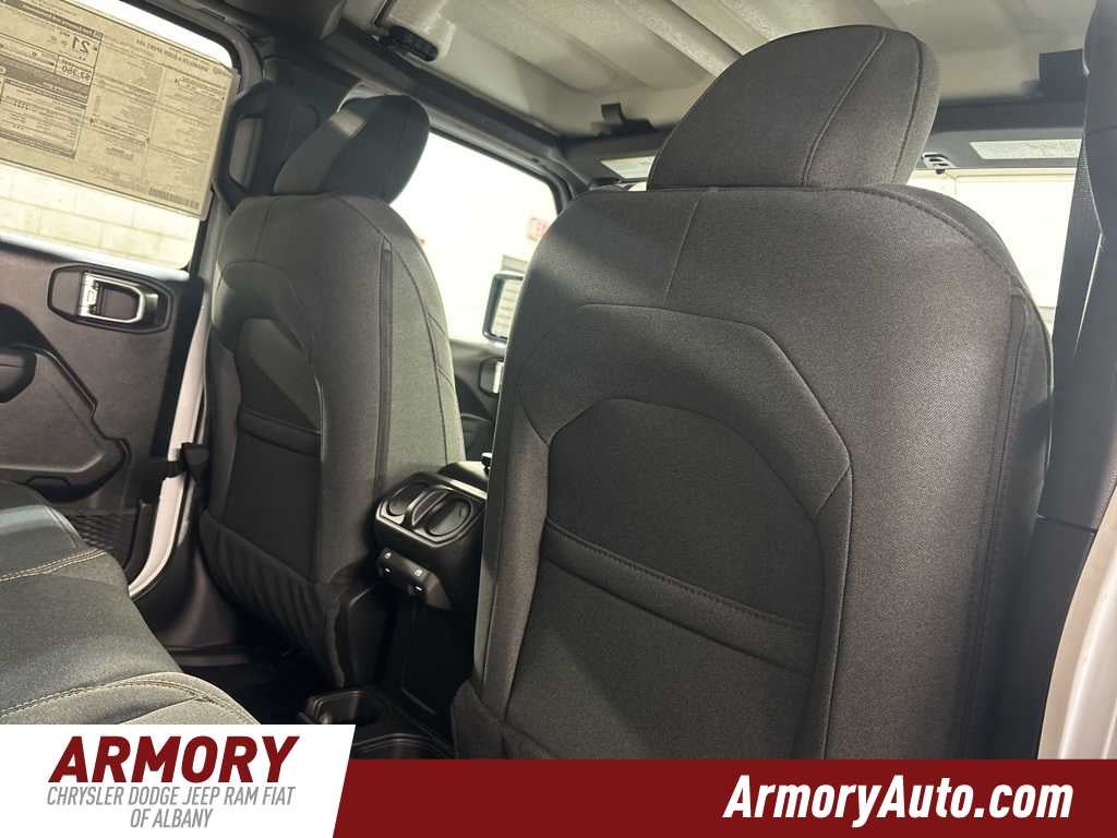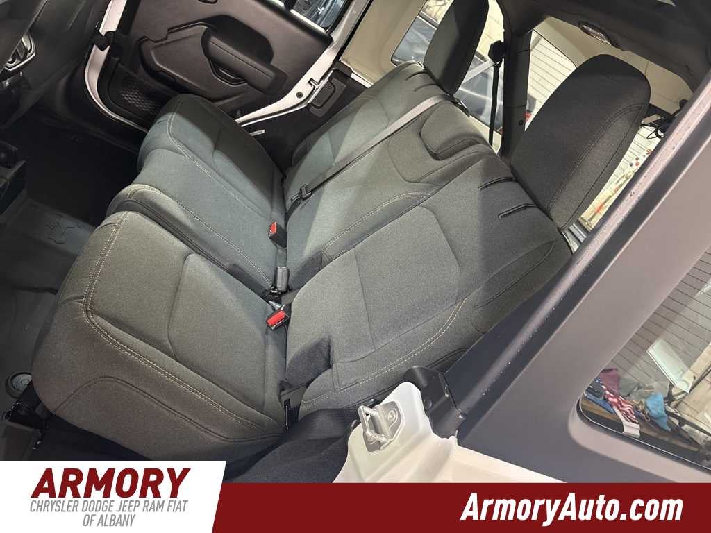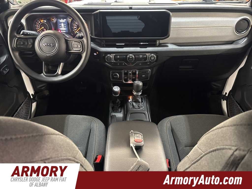Wrangler Sport is nicely equipped with Quick Order Package 22B Sport, 12.3 Touchscreen Display, 3.45 Overall Top Gear Ratio, 4-Wheel Disc Brakes, 4G LTE Wi-Fi Hot Spot, 8 Speakers, ABS brakes, Air Conditioning, AM/FM radio: SiriusXM with 360L, Apple CarPlay, Apple CarPlay/Android Auto, Aux Battery, Black 3-Piece Hard Top, Brake assist, Compass, Connectivity - US/Canada, Delay-off headlights, Driver door bin, Driver vanity mirror, Dual front impact airbags, Dual front side impact airbags, Electronic Stability Control, For More Info, Call 800-643-2112, Freedom Panel Storage Bag, Front anti-roll bar, Front Bucket Seats, Front Center Armrest w/Storage, Front fog lights, Front reading lights, Google Android Auto, Illuminated entry, Integrated Center Stack Radio, Integrated roll-over protection, Jeep Trail Rated Kit, Low tire pressure warning, Manufacture Statement of Origin, MOPAR All-Weather Floor Mats, Mopar Black Fuel Filler Door, Mopar Black Tubular Side Steps, MOPAR Doors Off Mirror Kit, MOPAR Lower Body Side Graphic, MOPAR Satin Black Grille with Satin Black Ring, Myflexcare Service Plan, No Soft Top, Non-Lock Fuel Cap Without Discriminator, Normal Duty Suspension, Occupant sensing airbag, Outside temperature display, Overhead airbag, Panic alarm, ParkView Rear Back-Up Camera, Passenger door bin, Passenger vanity mirror, Power steering, Power windows, Radio data system, Radio: Uconnect 5 with 12.3 Display, Rear anti-roll bar, Rear reading lights, Rear Window Defroster, Rear Window Wiper/Washer, Remote keyless entry, SiriusXM Radio Service, SiriusXM with 360L, Speed control, Split folding rear seat, Steering wheel mounted audio controls, Stop-Start Dual Battery System, Tachometer, Telescoping steering wheel, Tilt steering wheel, Traction control, Trip computer, Variably intermittent wipers, and Wheels: 17 x 7.5 Black Steel Styled.