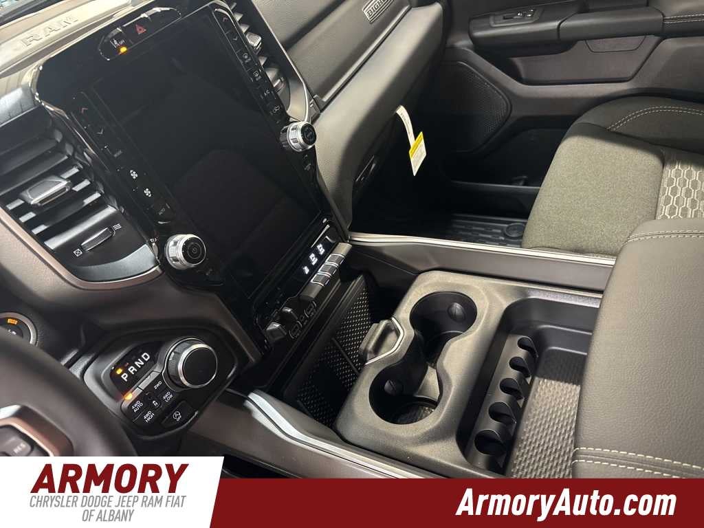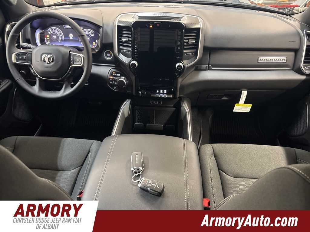 1500 Big Horn/Lone Star is nicely equipped with Bed Utility Group (Exterior 115V AC Outlet, MOPAR 4 Adjustable Cargo Tie-Down Hooks, MOPAR Spray in Bedliner, and Pick-Up Box Lighting), Big Horn Level 2 Equipment Group (115V Auxiliary Power Outlet, 115V Auxiliary Rear Power Outlet, 12 Touchscreen Display, 2nd Row in Floor Storage Bins, 3 Rear Seat Head Restraints, 4 Way Front Headrests, 400W Inverter, 4G LTE Wi-Fi Hot Spot, 9 Amplified Speakers with Subwoofer, Air Conditioning ATC with Dual Zone Control, Apple CarPlay, Auto Power-Folding Mirrors, Auto-Dimming Exterior Driver Mirror, Auto-Dimming Rear-View Mirror, Black Exterior Mirrors, Black Premium Power Mirrors, Body Color Fender Flares, Bucket Seats, Center Console Parts Module, Cluster 7.0 TFT Color Display, Configurable Drive Mode, Connected Travel and Traffic Services, Connectivity - US/Canada, Convex Wide-Angle Exterior Mirror Insert, Deluxe Cloth Bucket Seats, Disassociated Touchscreen Display, Exterior Mirrors Courtesy Lamps, Exterior Mirrors with Heating Element, Exterior Mirrors with Supplemental Signals, Front Seat Back Map Pockets, Full Length Floor Console, Global Telematics Box Module, Glove Box Lamp, Google Android Auto, GPS Antenna Input, GPS Navigation, HD Radio, Heated Front Seats, Heated Steering Wheel, Integrated Center Stack Radio, Integrated Voice Command with Bluetooth®, Leather Wrapped Steering Wheel, LED Dome Lamp with on/Off Switch, LED Footwell Lighting, Manual Adjust 4-Way Front Passenger Seat, Media Hub with 2 Charge Only USBs, Overhead LED Lamps, Power 2-Way Driver Lumbar Adjust, Power Adjust 8-Way Driver Seat, Power Adjustable Pedals, Premium Overhead Console, Radio: Uconnect 5 Navigation with 12.0 Display, Rear 60/40 Folding Seat, Rear Center Armrest, Rear Power Sliding Window, Rear Window Defroster, Remote Tailgate Release, Security Alarm, SiriusXM Radio Service, SiriusXM with 360L, Steering Wheel Mounted Audio Controls, Sun Visors with Illuminated Vanity Mirrors, Universal Garage Door Opener, and USB Host Flip), Night Edition (Accent Color Door Handles, Accent Color Premium Power Mirrors, Accent Color Tailgate Handle, Anti-Spin Differential Rear Axle, Black Exterior Truck Badging, Black Headlamp Bezels, Black Interior Accents, Black Painted Exterior Mirrors Caps, Black Tail Lamp Bezels, Body Color Front Bumper, Body Color Rear Bumper with Step Pads, Dual Exhaust with Black Tips, Grille Black Surround Black Mesh, RAM Grille Badge - Black, and Wheels: 20 x 9.0 Aluminum Painted Clad), Quick Order Package 27Z Big Horn, 33 Gallon Fuel Tank, 4-Wheel Disc Brakes, 48V Belt Starter Generator, 6 Speakers, ABS brakes, Air Conditioning, Alloy wheels, AM/FM radio, Apple CarPlay/Android Auto, Auto High-beam Headlights, Brake assist, Bumpers: chrome, Cloth Bucket Seats, Cluster 12 TFT Color Display, Compass, Delay-off headlights, Driver door bin, Dual front impact airbags, Dual front side impact airbags, Electronic Stability Control, Front anti-roll bar, Front Bucket Seats, Front Center Armrest w/Storage, Front fog lights, Front License Plate Bracket, Front reading lights, Front wheel independent suspension, Fully automatic headlights, Heated door mirrors, Illuminated entry, Low tire pressure warning, Manual Adjust 4-Way Driver Seat, Manual Folding Exterior Mirrors, Manufacturers Statement of Origin, Mopar Black Tubular Side Steps, MOPAR Front and Rear Rubber Floor Mats, MyFlexCare Service Plan, Occupant sensing airbag, Outside temperature display, Overhead airbag, Overhead console, Panic alarm, ParkView Rear Back-Up Camera, Passenger door bin, Passenger vanity mirror, Power door mirrors, Power steering, Power windows, Radio data system, Radio: Uconnect 5 W with 8.4 Display, RAM Grille Badge - Chrome, Rear anti-roll bar, Rear step bumper, Rear Wheelhouse Liners, Remote keyless entry, Speed control, Supplier Part Tracking