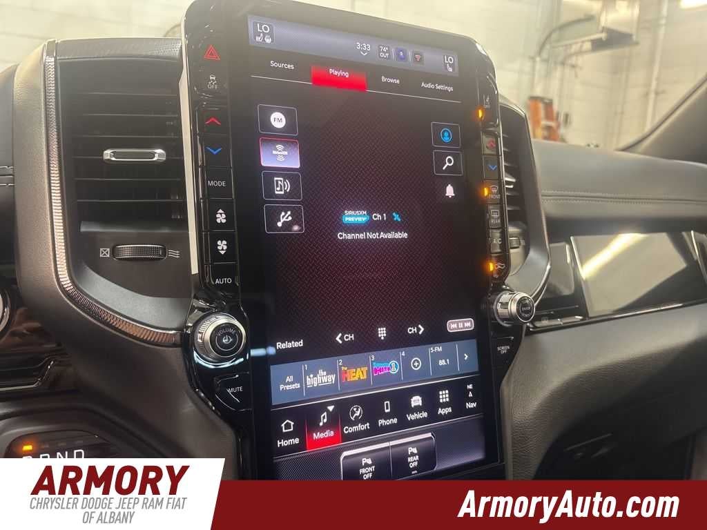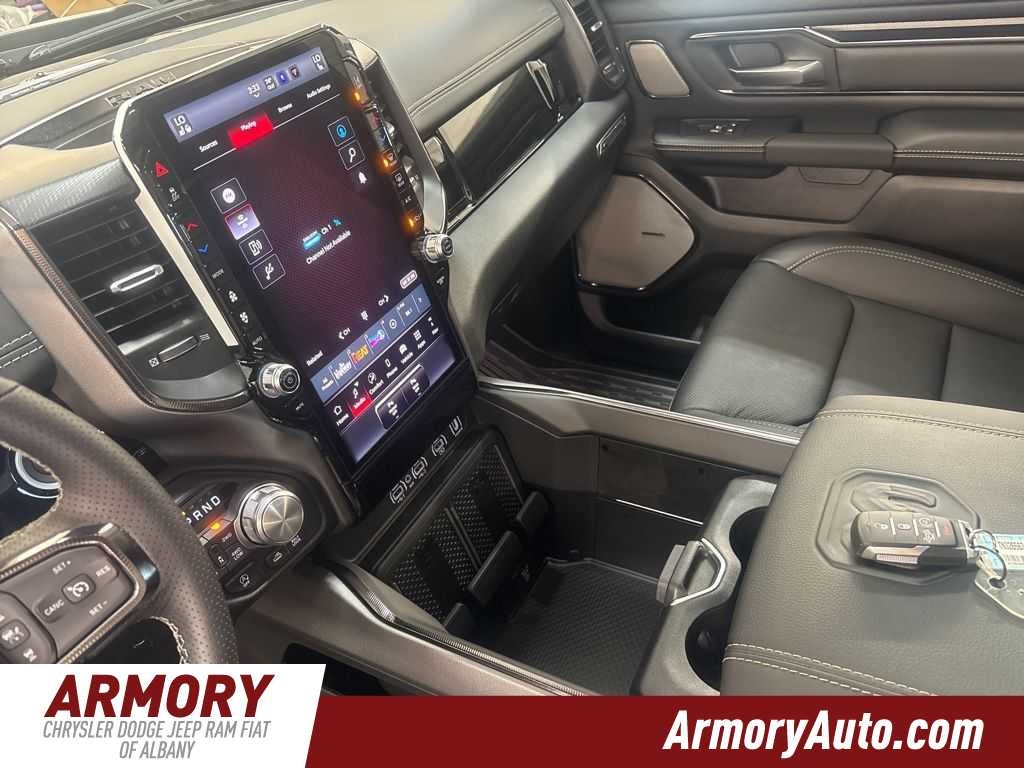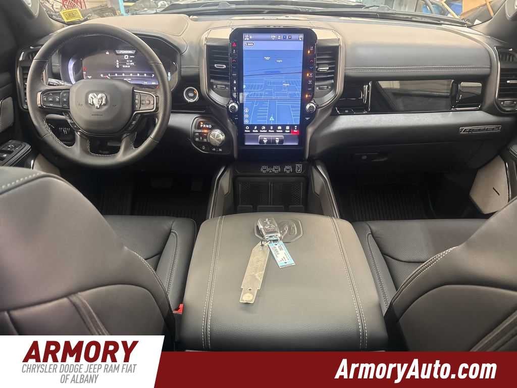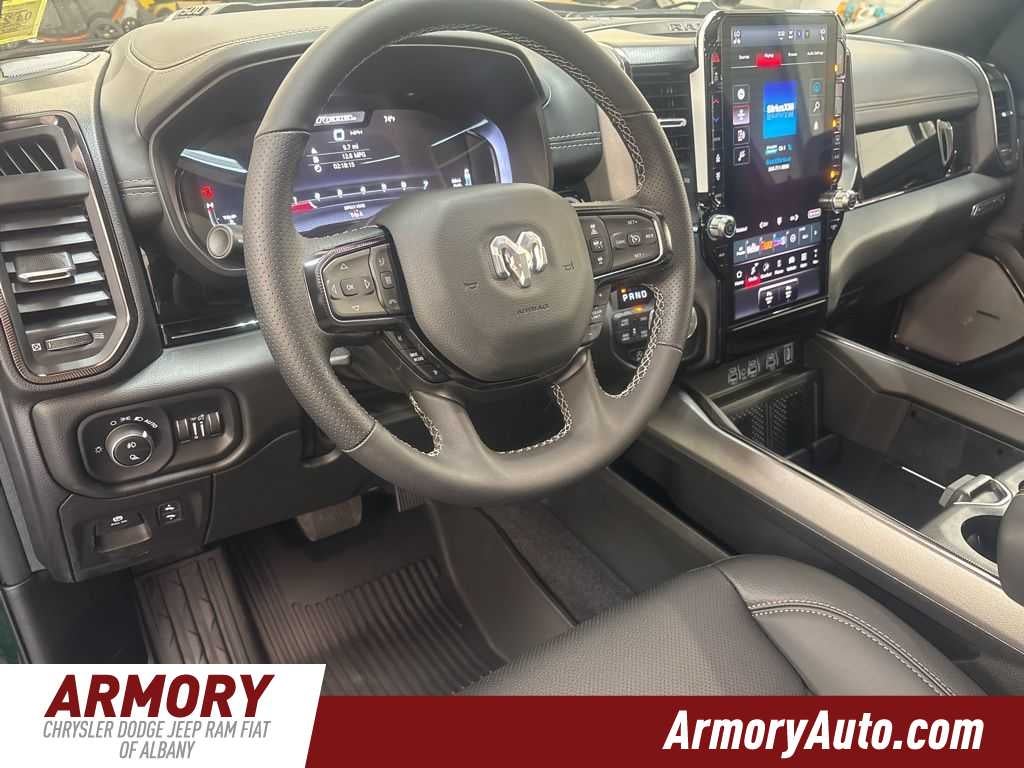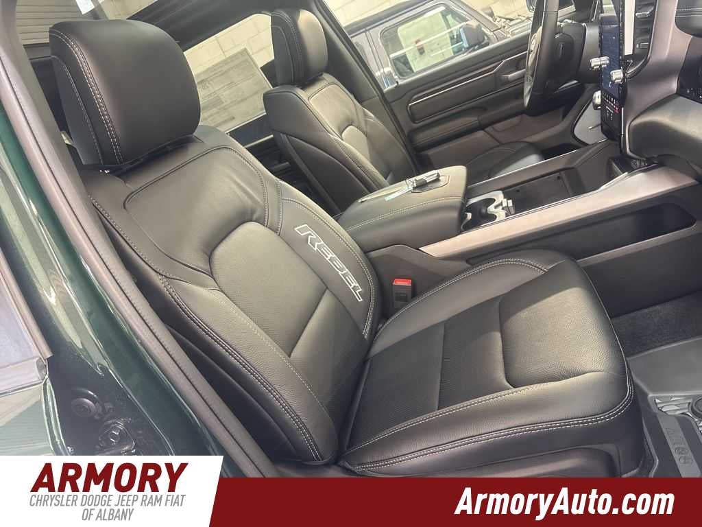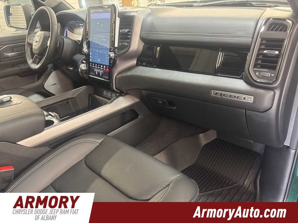 1500 Rebel is nicely equipped with Quick Order Package 21W Rebel, Rebel Level 2 Equipment Group (115V Auxiliary Rear Power Outlet, 14.4 Touchscreen Display, 2-Door Passive Entry, Front Door Locks, 4G LTE Wi-Fi Hot Spot, Accent Color Door Handles, Accent Color Premium Power Mirrors, Accent Color Tailgate Handle, Apple CarPlay, Auto Power-Folding Mirrors, Auto-Dimming Exterior Driver Mirror, Black Painted Exterior Mirrors Caps, Connected Travel and Traffic Services, Connectivity - US/Canada, Convex Wide-Angle Exterior Mirror Insert, Disassociated Touchscreen Display, Driver Seat Memory, Dual Wireless Charging Pad, Exterior Mirrors Approach Lamps, Exterior Mirrors Courtesy Lamps, Exterior Mirrors with Heating Element, Exterior Mirrors with Memory, Exterior Mirrors with Supplemental Signals, Front Passenger Interactive Display, Global Telematics Box Module, Google Android Auto, GPS Antenna Input, GPS Navigation, Harman/Kardon 19 Speaker Premium Sound, HD Radio, Heated Second Row Seats, Integrated Center Stack Radio, Integrated Voice Command with Bluetooth®, Media Hub with 2 Charge Only USBs, Off-Road Information Pages, Power 2-Way Passenger Lumbar Adjust, Power Adjust 8-Way Front Passenger Seat, Power Adjustable Pedals with Memory, Power Tailgate, Proximity Approach/Departure Lamps, Radio: Uconnect 5 Nav with 14.4 Display, Radio/Driver Seat/Mirrors/Pedals Memory, Rain Sensitive Windshield Wipers, Rear Window Defroster, Security Alarm, SiriusXM Radio Service, SiriusXM with 360L, Smartphone as a Key Capable, and USB Host Flip), Technology Group (12-Way/1-Way Trailer Connector, Heads-Up Display, and LED CHMSL Lamp), 10 Speakers, 3.92 Rear Axle Ratio, 4 Way Front Headrests, 4-Wheel Disc Brakes, ABS brakes, Active Noise Control System, Air Conditioning, Alloy wheels, AM/FM radio: SiriusXM with 360L, Apple CarPlay/Android Auto, Auto High-beam Headlights, Auto-dimming Rear-View mirror, Automatic temperature control, Black Exterior Mirrors, Brake assist, Bucket Seats, Cloth/Vinyl Bucket Seats, Compass, Delay-off headlights, Dome Dual LED Reading Lamp, Driver door bin, Driver vanity mirror, Dual front impact airbags, Dual front side impact airbags, Dual-Pane Panoramic Sunroof, Electronic Stability Control, Front anti-roll bar, Front Bucket Seats, Front Center Armrest w/Storage, Front dual zone A/C, Front fog lights, Front License Plate Bracket, Front reading lights, Front Seat Back Map Pockets, Front wheel independent suspension, Full Length Upgraded Floor Console, Fully automatic headlights, Garage door transmitter, Heated door mirrors, Heated Front Seats, Heated front seats, Heated Steering Wheel, Heated steering wheel, Illuminated entry, Leather steering wheel, Low tire pressure warning, Manual Folding Exterior Mirrors, Manufacturers Statement of Origin, Mopar Black Tubular Side Steps, MyFlexCare Service Plan, Navigation System, Occupant sensing airbag, Outside temperature display, Overhead airbag, Overhead console, Panic alarm, ParkView Rear Back-Up Camera, Passenger door bin, Passenger vanity mirror, Power 2-Way Driver Lumbar Adjust, Power Adjust 8-Way Driver Seat, Power door mirrors, Power driver seat, Power steering, Power windows, Radio data system, Radio: Uconnect 5 Navigation with 12.0 Display, Rear 60/40 Folding Seat, Rear anti-roll bar, Rear seat center armrest, Rear step bumper, Remote keyless entry, Speed control, Split folding rear seat, Steering wheel mounted audio controls, Tachometer, Telescoping steering wheel, Tilt steering wheel, Traction control, Trip computer, Variably intermittent wipers, Voltmeter, and Wheels: 18 x 8.0 Painted Mid-Gloss Black. Price includes: $3500 - 2026 National Retail Bonus Cash . Exp. 04/30/2026