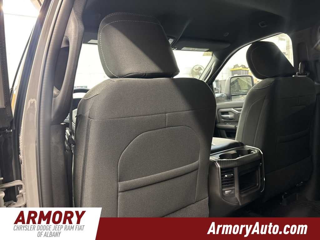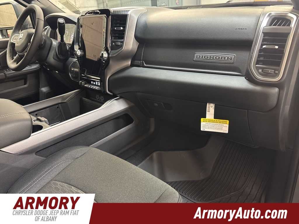 2500 Big Horn is nicely equipped with Big Horn Level 1 Plus Equipment Group (12 Touchscreen Display, 2 Way Rear Headrest Seat, 2nd Row in Floor Storage Bins, 4 Way Front Headrests, 40/20/40 Split Bench Seat, 4G LTE Wi-Fi Hot Spot, 9 Alpine Speakers with Subwoofer, Air Conditioning ATC with Dual Zone Control, Alexa Built-in, Anti-Spin Differential Rear Axle, Apple CarPlay, Auto Power-Folding Mirrors, Auto-Dimming Rear-View Mirror, Black Exterior Mirrors, Connected Travel and Traffic Services, Connectivity - US/Canada, Disassociated Touchscreen Display, Dual Glove Boxes, Emergency Vehicle Alert System (EVAS), Exterior Mirrors Courtesy Lamps, Exterior Mirrors with Heating Element, Exterior Mirrors with Supplemental Signals, Foam Bottle Insert (door Trim Panel), Folding Flat Load Floor Storage, Footwell Courtesy Lamp, For Details, Visit DriveUconnect.com, For More Info, Call 800-643-2112, Forward and Reverse Utility Lights, Front Armrest with Cupholders, Front Center Seat Cushion Storage, Front Seat Back Map Pockets, Global Telematics Box Module, Glove Box Lamp, Google Android Auto, GPS Antenna Input, GPS Navigation, HD Radio, Integrated Voice Command with Bluetooth®, LED Bed Lighting, Locking Lower Glove Box, Luxury Steering Wheel, Manual Adjust 4-Way Front Passenger Seat, Mirror Running Lights, MOPAR Deployable Bed Step, MOPAR Spray in Bedliner, Off-Road Info Pages, Power 2-Way Driver Lumbar Adjust, Power Adjust 8-Way Driver Seat, Power Adjust Mirrors, Power Heated Folding Telescopic Mirrors, Power Telescoping Mirrors, Power-Adjustable Convex Aux Mirrors, Premium Cloth 40/20/40 Bench Seat, Radio: Uconnect 5 Navigation with 12.0 Display, Rear 60/40 Folding Seat, Rear Dome with on/Off Switch Lamp, Remote Start System, Remote USB Port - Charge Only, Selectable Tire Fill Alert, SiriusXM Radio Service, SiriusXM with 360L, Steering Wheel Mounted Audio Controls, Storage Tray, and Trailer Tow Pages), Heated Seats and Wheel Group (Heated Front Seats and Heated Steering Wheel), Night Edition (Black Exterior Truck Badging, Black Interior Accents, Black Wheel Center Hub, Body Color Grille-Surround, Gloss Black Nostrils/Mic Black Grille, Painted Front Bumper, Painted Rear Bumper, and Wheels: 20 x 8.0 Black Painted Aluminum), Off Road Package (Front Performance Tuned Shock Absorbers, Hill Assist, and Rear Performance Tuned Shock Absorbers), Quick Order Package 2UZ Big Horn, 3.73 Axle Ratio, 4-Wheel Disc Brakes, 6 Speakers, ABS brakes, Air Conditioning, Alloy wheels, AM/FM radio: SiriusXM, Apple CarPlay/Android Auto, Brake assist, Bumpers: chrome, Center Hub, Cloth 40/20/40 Bench Seat, Compass, Delay-off headlights, Driver door bin, Dual front impact airbags, Dual front side impact airbags, Electronic Stability Control, Front anti-roll bar, Front Center Armrest w/Storage, Front fog lights, Front License Plate Bracket, Front reading lights, Fully automatic headlights, Heated door mirrors, Illuminated entry, Low tire pressure warning, Manual Adjust 4-Way Driver Seat, Manufacturers Statement of Origin, MOPAR Front and Rear Rubber Floor Mats, MyFlexCare Service Plan, Occupant sensing airbag, Outside temperature display, Overhead airbag, Overhead console, Painted Flat Wheel-to-Wheel Side Steps, Panic alarm, ParkView Rear Back-Up Camera, Passenger door bin, Passenger vanity mirror, Power door mirrors, Power steering, Power windows, Radio data system, Radio: Uconnect 5 with 8.4 Display, Rear anti-roll bar, Rear Folding Seat, Rear seat center armrest, Rear step bumper, Rear window defroster, Remote keyless entry, Security system, Speed control, Tachometer, Tilt steering wheel, Traction control, Trip computer, Turn signal indicator mirrors, Variably intermittent wipers, Voltmeter, and Wheels: 18 x 8.0 Polished AluminuM.