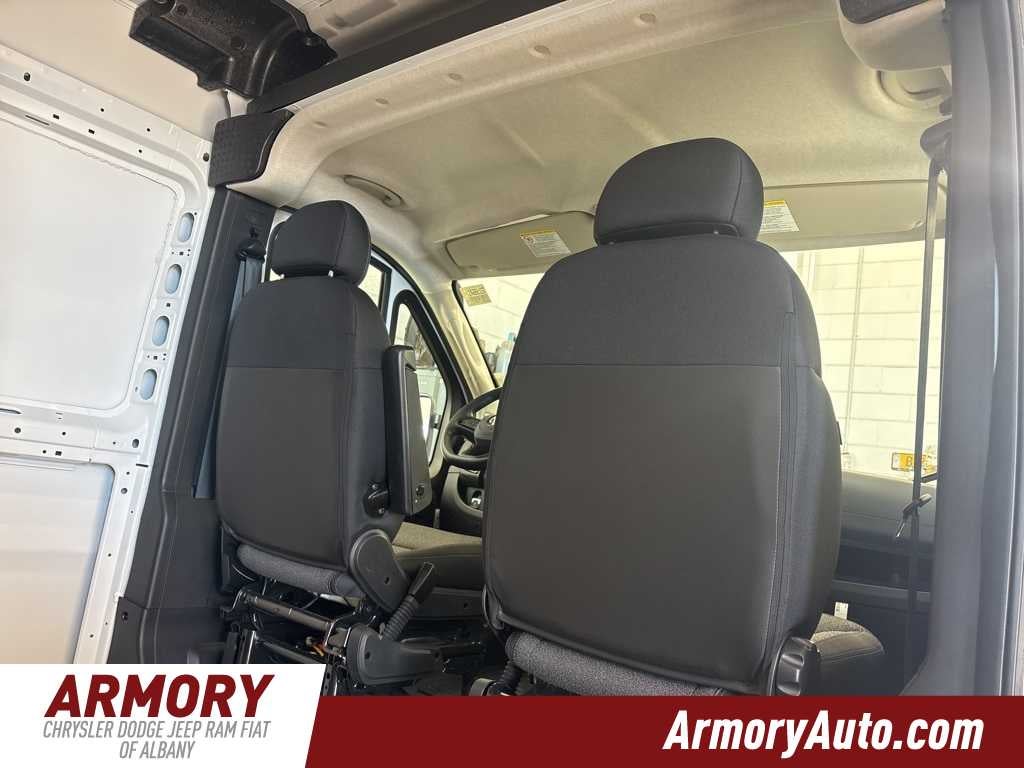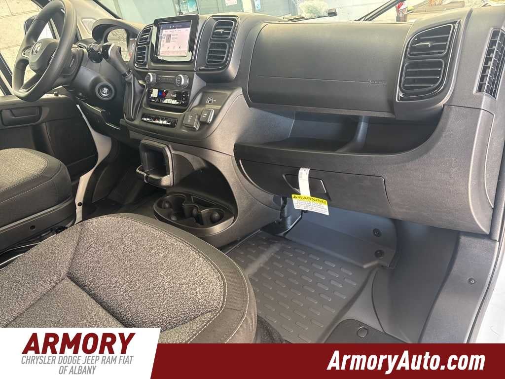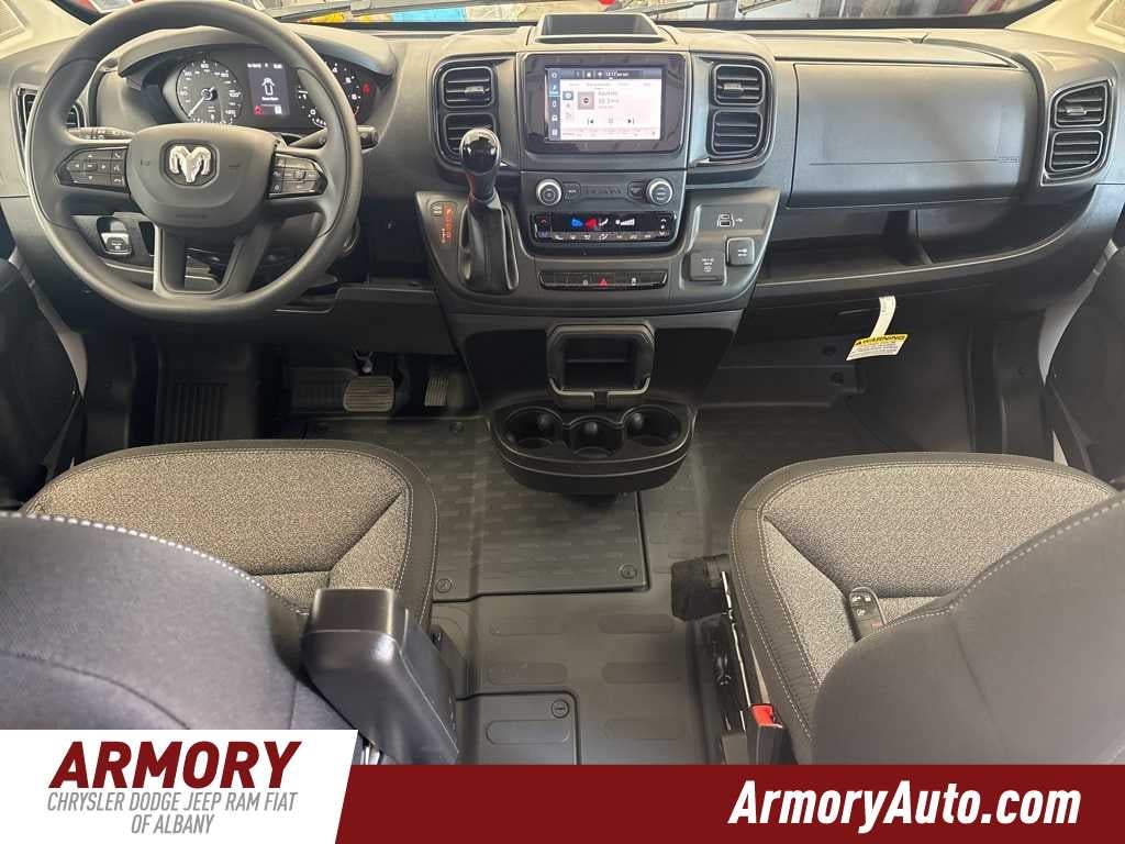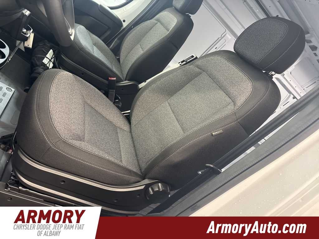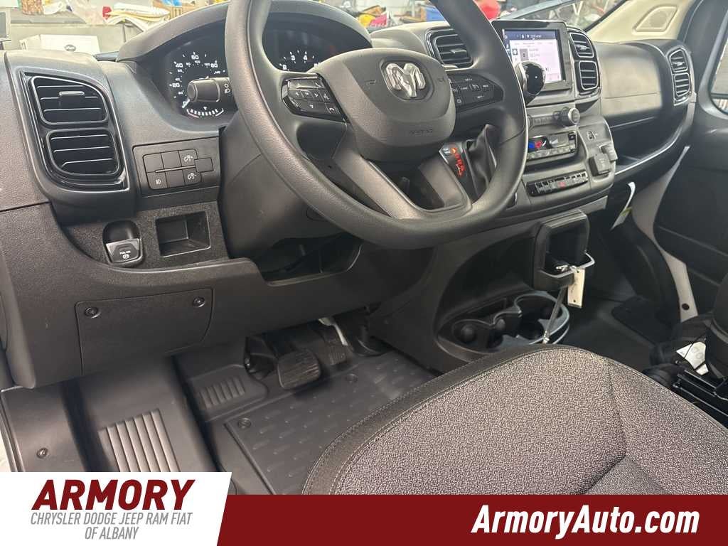 ProMaster 2500 High Roof is nicely equipped with Convenience Group (Exterior Mirrors with Heating Element, Exterior Mirrors with Supplemental Signals, Front Fog Lamps, Power Adjust Mirrors, Power Folding/Heated Mirrors, Power-Adjustable Convex Aux Mirrors, Power-Folding Mirrors, and Rear Cargo LED Lamp), Power Group (100 Amp Battery, 115V Auxiliary Power Outlet, and 12V Rear Auxiliary Power Outlet), Quick Order Package 22B Tradesman (4-Way Manual Adjust Front Passenger Seat and Passenger Bucket Seat), 220 Amp Alternator, 4 Speakers, 4-Wheel Disc Brakes, 4.08 Axle Ratio, 4G LTE Wi-Fi Hotspot, ABS brakes, Adaptive Cruise Control with Stop and Go, Air Conditioning, AM/FM radio: SiriusXM, Apple CarPlay, Apple CarPlay/Android Auto, Black/Gray Seats, Bodyside moldings, Brake assist, Cloth Bucket Seats, Connectivity - US/Canada, Driver door bin, Driver Seat Armrest, Drivers Seat Mounted Armrest, Electronic Stability Control, For Details, Visit DriveUconnect.com, For More Info, Call 800-643-2112, Front anti-roll bar, Front Bucket Seats, Front License Plate Bracket, Front reading lights, Front wheel independent suspension, Global Telematics Box Module, Google Android Auto, GPS Antenna Input, Heavy Duty Suspension, Illuminated entry, Integrated Center Stack Radio, Low tire pressure warning, Manufacturers Statement of Origin, MOPAR Spray-on Floor Liner, MyFlexCare Service Plan, Outside temperature display, Overhead airbag, Overhead console, ParkView Rear Back-Up Camera, Passenger door bin, Power steering, Power windows, Radio: Uconnect 5 with 7 Display, Remote keyless entry, SiriusXM Radio Service, Steering wheel mounted audio controls, Tachometer, Telescoping steering wheel, Traction control, Trip computer, Turn signal indicator mirrors, Variably intermittent wipers, Wheel Center Cap, and Wheels: 16 x 6.0 SteeL.