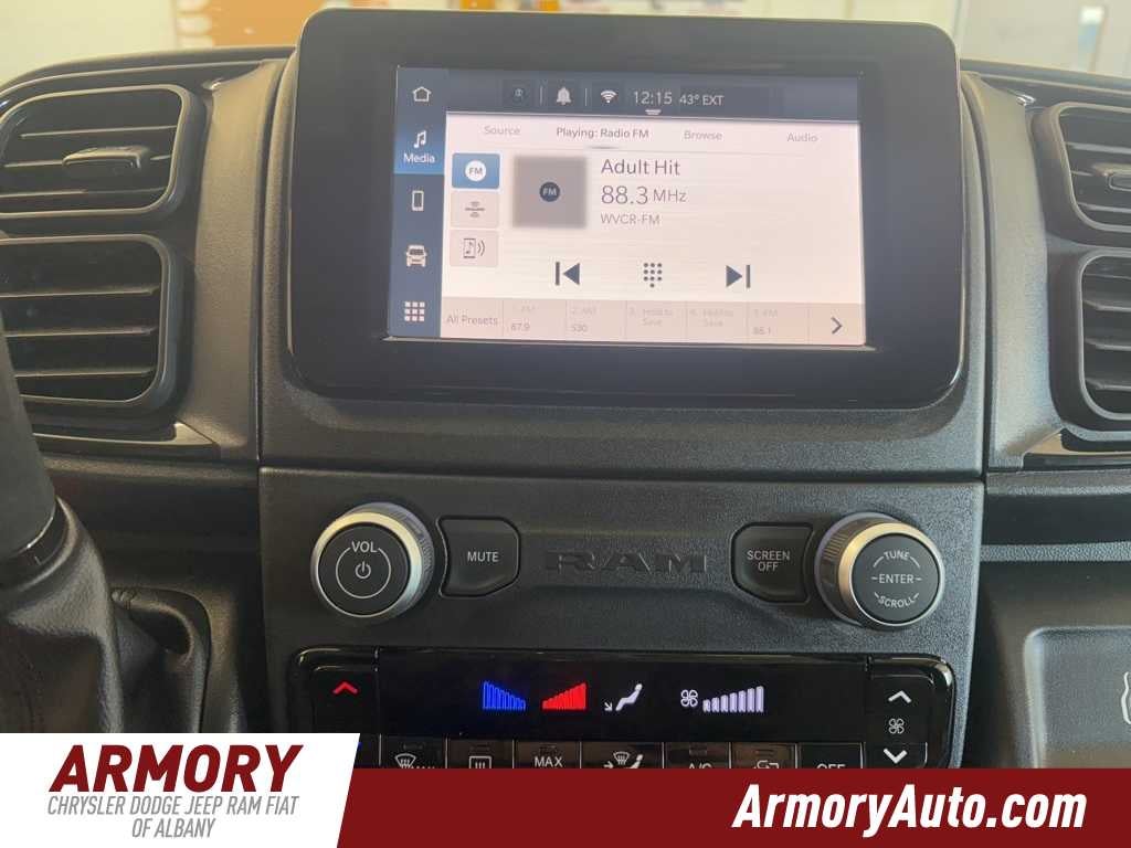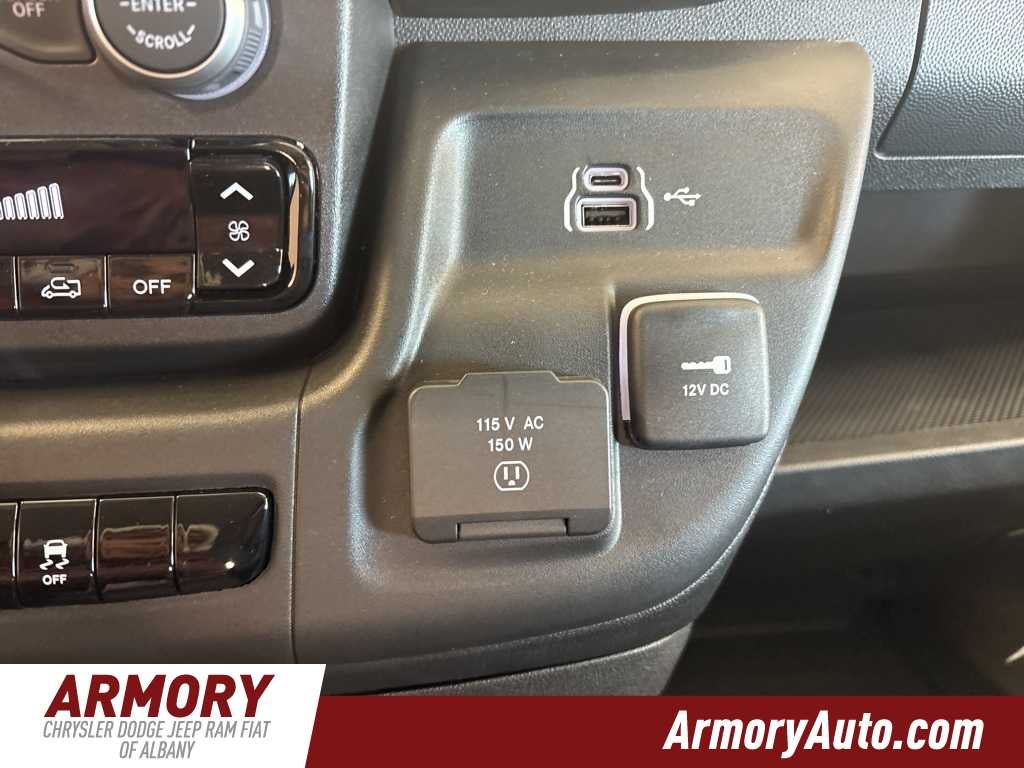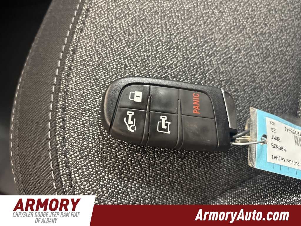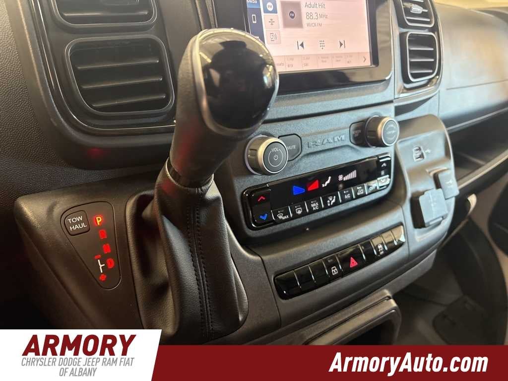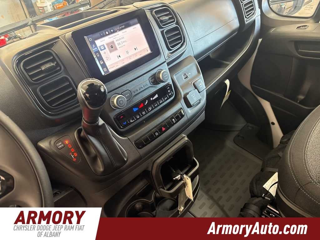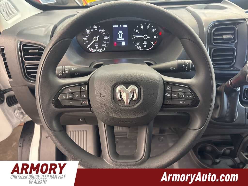 ProMaster 2500 High Roof is nicely equipped with Convenience Group (Exterior Mirrors with Heating Element, Exterior Mirrors with Supplemental Signals, Front Fog Lamps, Power Adjust Mirrors, Power Folding/Heated Mirrors, Power-Adjustable Convex Aux Mirrors, Power-Folding Mirrors, and Rear Cargo LED Lamp), Power Group (100 Amp Battery, 115V Auxiliary Power Outlet, and 12V Rear Auxiliary Power Outlet), Quick Order Package 22B Tradesman (4-Way Manual Adjust Front Passenger Seat and Passenger Bucket Seat), 220 Amp Alternator, 4 Speakers, 4-Wheel Disc Brakes, 4.08 Axle Ratio, 4G LTE Wi-Fi Hotspot, ABS brakes, Adaptive Cruise Control with Stop and Go, Air Conditioning, AM/FM radio: SiriusXM, Apple CarPlay, Apple CarPlay/Android Auto, Black/Gray Seats, Bodyside moldings, Brake assist, Cloth Bucket Seats, Connectivity - US/Canada, Driver door bin, Driver Seat Armrest, Drivers Seat Mounted Armrest, Electronic Stability Control, For Details, Visit DriveUconnect.com, For More Info, Call 800-643-2112, Front anti-roll bar, Front Bucket Seats, Front License Plate Bracket, Front reading lights, Front wheel independent suspension, Global Telematics Box Module, Google Android Auto, GPS Antenna Input, Heavy Duty Suspension, Illuminated entry, Integrated Center Stack Radio, Low tire pressure warning, Manufacturers Statement of Origin, MOPAR Spray-on Floor Liner, MyFlexCare Service Plan, Outside temperature display, Overhead airbag, Overhead console, ParkView Rear Back-Up Camera, Passenger door bin, Power steering, Power windows, Radio: Uconnect 5 with 7 Display, Remote keyless entry, SiriusXM Radio Service, Steering wheel mounted audio controls, Tachometer, Telescoping steering wheel, Traction control, Trip computer, Turn signal indicator mirrors, Variably intermittent wipers, Wheel Center Cap, and Wheels: 16 x 6.0 SteeL.