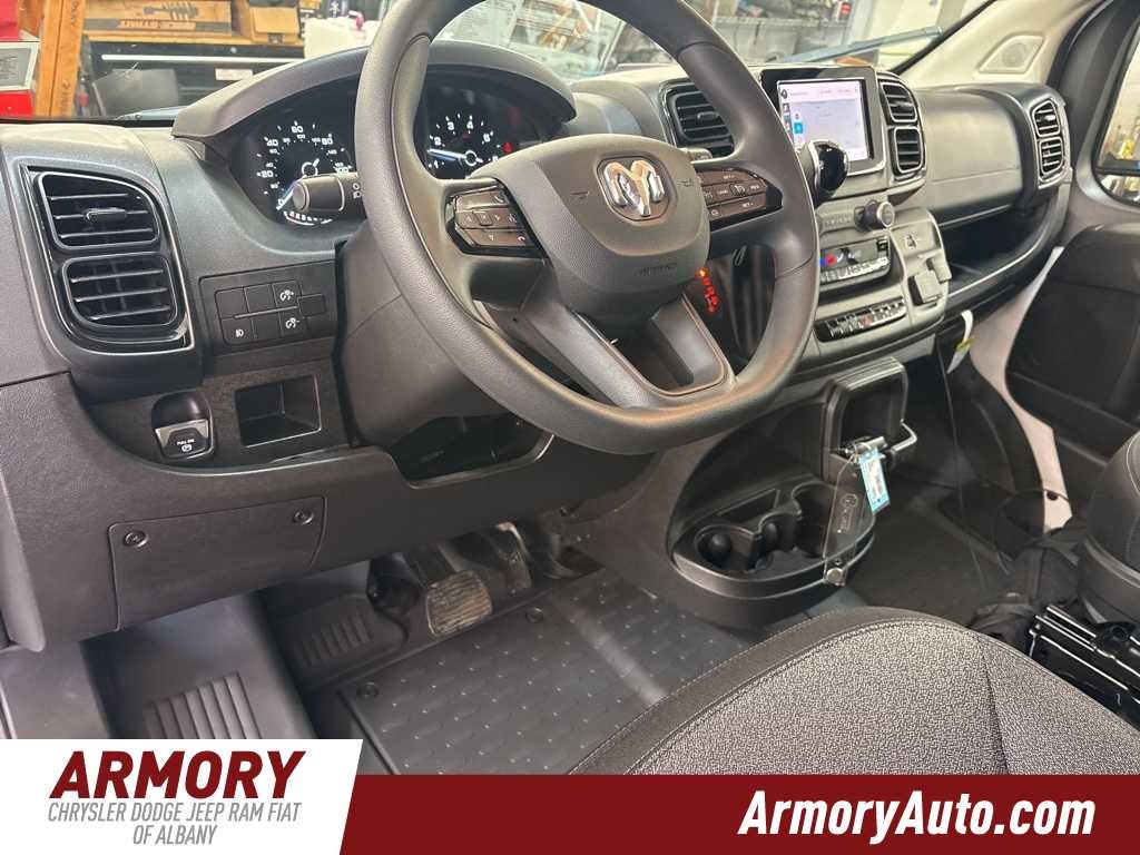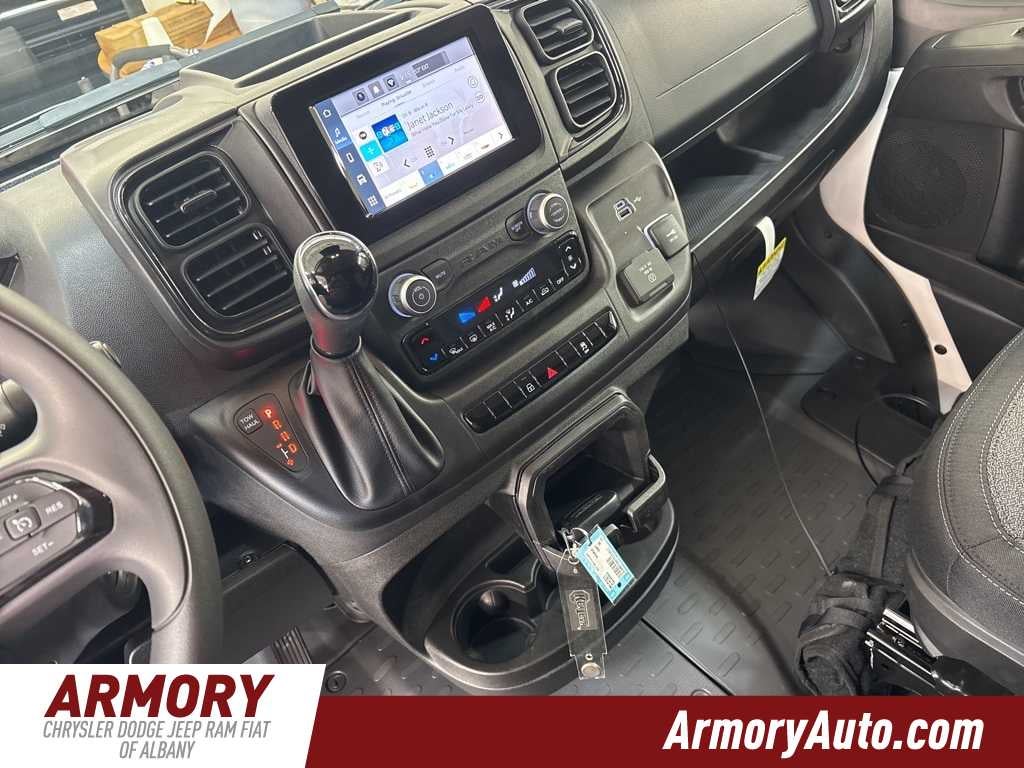 ProMaster 3500 High Roof is nicely equipped with Convenience Group (Exterior Mirrors with Heating Element, Exterior Mirrors with Supplemental Signals, Front Fog Lamps, Power Adjust Mirrors, Power Folding/Heated Mirrors, Power-Adjustable Convex Aux Mirrors, Power-Folding Mirrors, and Rear Cargo LED Lamp), Power Group (100 Amp Battery, 115V Auxiliary Power Outlet, and 12V Rear Auxiliary Power Outlet), Quick Order Package 22B Tradesman (4-Way Manual Adjust Front Passenger Seat and Passenger Bucket Seat), 220 Amp Alternator, 4 Speakers, 4-Wheel Disc Brakes, 4.08 Axle Ratio, 4G LTE Wi-Fi Hotspot, ABS brakes, Adaptive Cruise Control with Stop and Go, Air Conditioning, AM/FM radio: SiriusXM, Apple CarPlay, Apple CarPlay/Android Auto, Black/Gray Seats, Bodyside moldings, Brake assist, Class IV Receiver Hitch, Cloth Bucket Seats, Connectivity - US/Canada, Driver door bin, Driver Seat Armrest, Drivers Seat Mounted Armrest, Electronic Stability Control, For Details, Visit DriveUconnect.com, For More Info, Call 800-643-2112, Front anti-roll bar, Front Bucket Seats, Front License Plate Bracket, Front reading lights, Front wheel independent suspension, Global Telematics Box Module, Google Android Auto, GPS Antenna Input, Heavy Duty Suspension, Illuminated entry, Integrated Center Stack Radio, Low tire pressure warning, Manufacturers Statement of Origin, MOPAR Spray-on Floor Liner, Outside temperature display, Overhead airbag, Overhead console, ParkSense Rear Park Assist System, ParkView Rear Back-Up Camera, Passenger door bin, Power steering, Power windows, Radio: Uconnect 5 with 7 Display, Rear anti-roll bar, Remote keyless entry, SiriusXM Radio Service, Steering wheel mounted audio controls, Tachometer, Telescoping steering wheel, Traction control, Trip computer, Turn signal indicator mirrors, Variably intermittent wipers, Wheel Center Cap, and Wheels: 16 x 6.0 SteeL.
