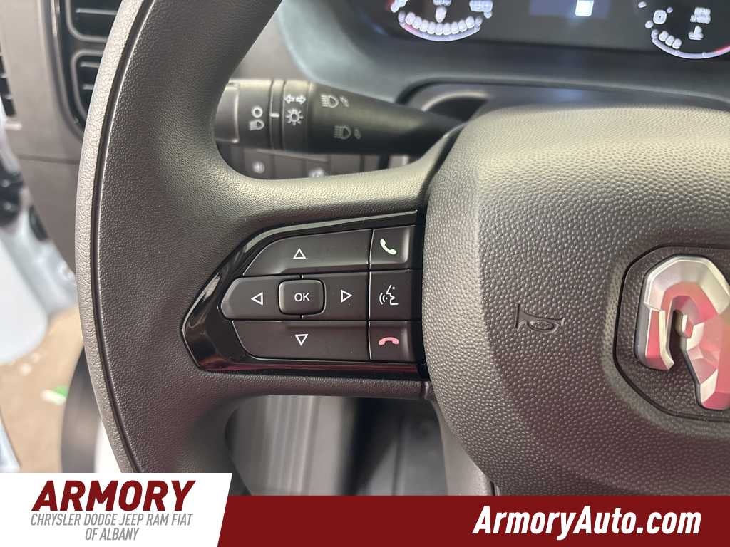 ProMaster 1500 Low Roof is nicely equipped with Convenience Group (Exterior Mirrors with Heating Element, Exterior Mirrors with Supplemental Signals, Front Fog Lamps, Power Adjust Mirrors, Power Folding/Heated Mirrors, Power-Adjustable Convex Aux Mirrors, Power-Folding Mirrors, and Rear Cargo LED Lamp), Quick Order Package 22B Tradesman (4-Way Manual Adjust Front Passenger Seat and Passenger Bucket Seat), Storage Group (Cargo Net, Shelf Above Roof Trim, and Underseat Storage Tray), 4 Speakers, 4-Wheel Disc Brakes, 4.08 Axle Ratio, 4G LTE Wi-Fi Hotspot, ABS brakes, Adaptive Cruise Control with Stop and Go, Air Conditioning, AM/FM radio: SiriusXM, Apple CarPlay, Apple CarPlay/Android Auto, Black/Gray Seats, Bodyside moldings, Brake assist, Cloth Bucket Seats, Connectivity - US/Canada, Driver door bin, Driver Seat Armrest, Drivers Seat Mounted Armrest, Electronic Stability Control, For Details, Visit DriveUconnect.com, For More Info, Call 800-643-2112, Front anti-roll bar, Front Bucket Seats, Front License Plate Bracket, Front reading lights, Front wheel independent suspension, Global Telematics Box Module, Google Android Auto, GPS Antenna Input, Illuminated entry, Integrated Center Stack Radio, Low tire pressure warning, Manufacturers Statement of Origin, Medium Duty Suspension, MyFlexCare Service Plan, Outside temperature display, Overhead airbag, Overhead console, ParkView Rear Back-Up Camera, Passenger door bin, Power steering, Power windows, Radio: Uconnect 5 with 7 Display, Remote keyless entry, SiriusXM Radio Service, Steering wheel mounted audio controls, Tachometer, Telescoping steering wheel, Traction control, Trip computer, Turn signal indicator mirrors, Variably intermittent wipers, Wheel Center Cap, and Wheels: 16 x 6.0 SteeL.