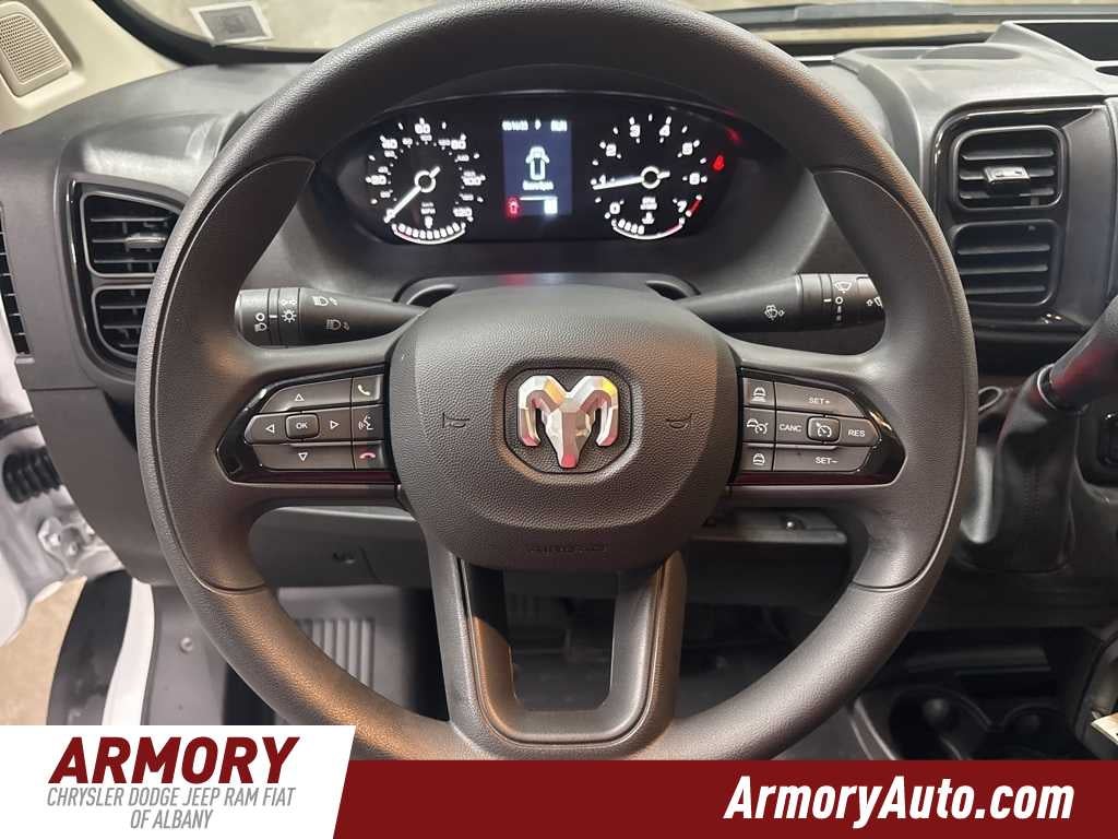 ProMaster 3500 High Roof is nicely equipped with Convenience Group (Exterior Mirrors with Heating Element, Exterior Mirrors with Supplemental Signals, Front Fog Lamps, Power Adjust Mirrors, Power Folding/Heated Mirrors, Power-Adjustable Convex Aux Mirrors, Power-Folding Mirrors, and Rear Cargo LED Lamp), Quick Order Package 22B Tradesman (4-Way Manual Adjust Front Passenger Seat and Passenger Bucket Seat), 4 Speakers, 4-Wheel Disc Brakes, 4.08 Axle Ratio, 4G LTE Wi-Fi Hotspot, ABS brakes, Adaptive Cruise Control with Stop and Go, Air Conditioning, AM/FM radio: SiriusXM, Apple CarPlay, Apple CarPlay/Android Auto, Black/Gray Seats, Bodyside moldings, Brake assist, Cloth Bucket Seats, Connectivity - US/Canada, Driver door bin, Driver Seat Armrest, Drivers Seat Mounted Armrest, Electronic Stability Control, For Details, Visit DriveUconnect.com, For More Info, Call 800-643-2112, Front anti-roll bar, Front Bucket Seats, Front License Plate Bracket, Front reading lights, Front wheel independent suspension, Global Telematics Box Module, Google Android Auto, GPS Antenna Input, Heavy Duty Suspension, Illuminated entry, Integrated Center Stack Radio, Low tire pressure warning, Manufacturers Statement of Origin, MOPAR Spray-on Floor Liner, MyFlexCare Service Plan, Outside temperature display, Overhead airbag, Overhead console, ParkView Rear Back-Up Camera, Passenger door bin, Power steering, Power windows, Premium Heavy Duty Suspension, Radio: Uconnect 5 with 7 Display, Rear anti-roll bar, Rear Heavy Duty Stabilizer Bar, Remote keyless entry, SiriusXM Radio Service, Steering wheel mounted audio controls, Tachometer, Telescoping steering wheel, Traction control, Trip computer, Turn signal indicator mirrors, Variably intermittent wipers, Wheel Center Cap, and Wheels: 16 x 6.0 SteeL.
