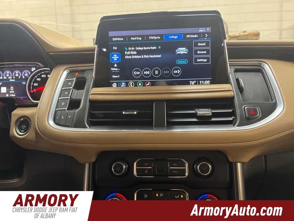 Priced below KBB Fair Purchase Price! Clean CARFAX. Black 2021 Chevrolet Tahoe Premier 4WD 10-Speed Automatic with Overdrive EcoTec3 5.3L V8 Apple CarPlay/Android Auto, Brake assist, Dual front impact airbags, Dual front side impact airbags, Dual-Pane Power Panoramic Sunroof, Electronic Stability Control, Front anti-roll bar, Front dual zone A/C, Heated front seats, Heated rear seats, Heated steering wheel, Lane Change Alert w/Side Blind Zone Alert, Lane Keep Assist w/Lane Departure Warning, Navigation System, Occupant sensing airbag, Overhead airbag, Perforated Leather Seat Trim, Power driver seat, Power Liftgate, Rear anti-roll bar, Remote Start.