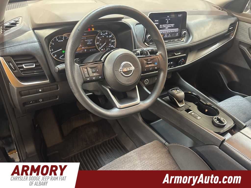 CARFAX One-Owner. Super Black 2023 Nissan Rogue SV AWD CVT with Xtronic 1.5L I3 Turbocharged DOHC 12V LEV3-ULEV50 201hp ABS brakes, Brake assist, Dual front impact airbags, Dual front side impact airbags, Electronic Stability Control, Front anti-roll bar, Front dual zone A/C, Knee airbag, Occupant sensing airbag, Overhead airbag, Power driver seat, Rear anti-roll bar, Rear side impact airbag, Traction control.